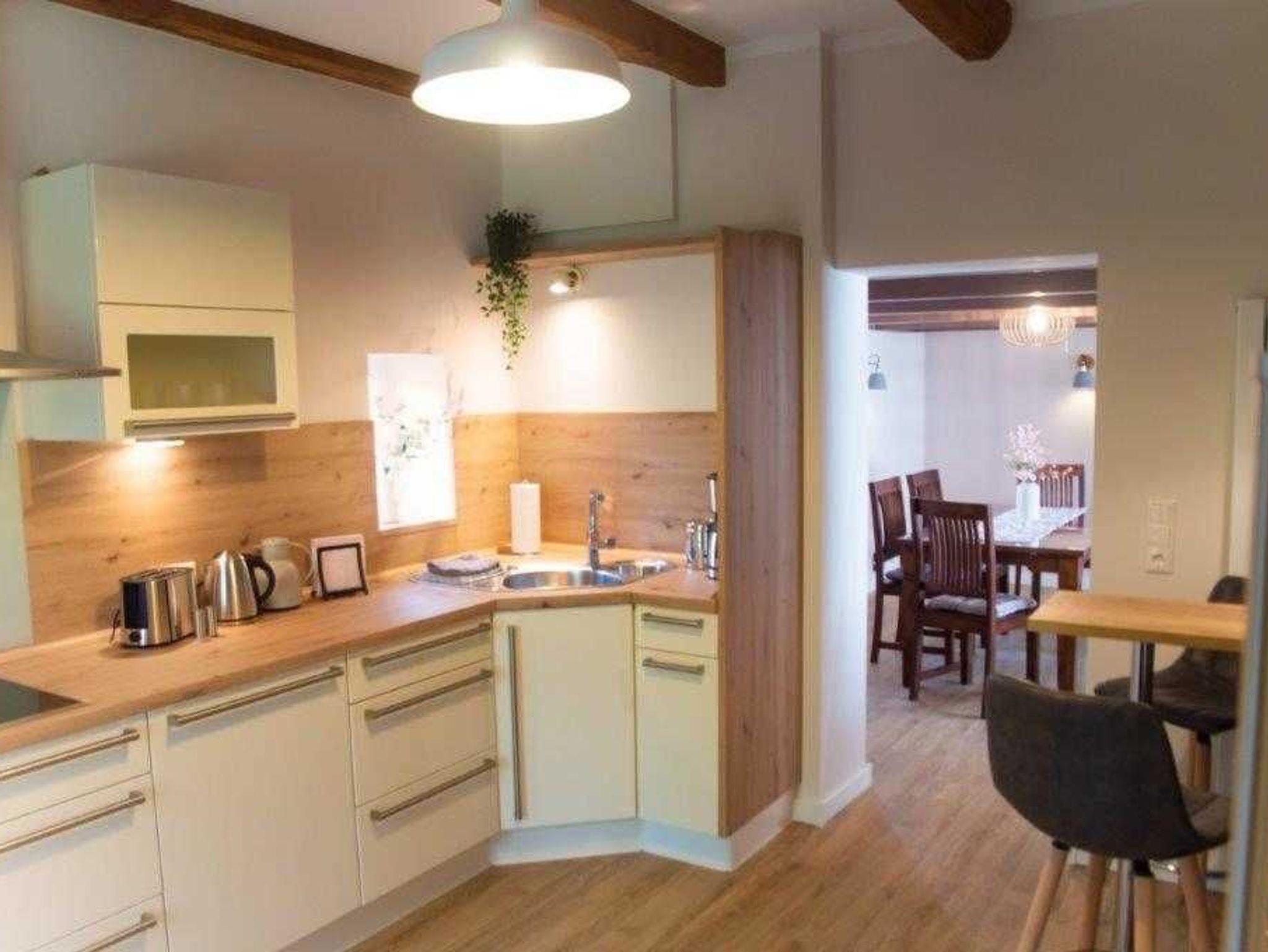 Die Wohnung wurde in einem alten landwirtschaftlichen Gebäude errichtet. Hierbei wurden die ursprünglichen Wohnräume für Landarbeiter und die Scheunendurchfahrt für die Heuernte vergangener Tage vereint und so eine Wohnung in mehreren Ebenen und einem zentralem Wohnzimmer mit einer Deckenhöhe von 4 Metern geschaffen.