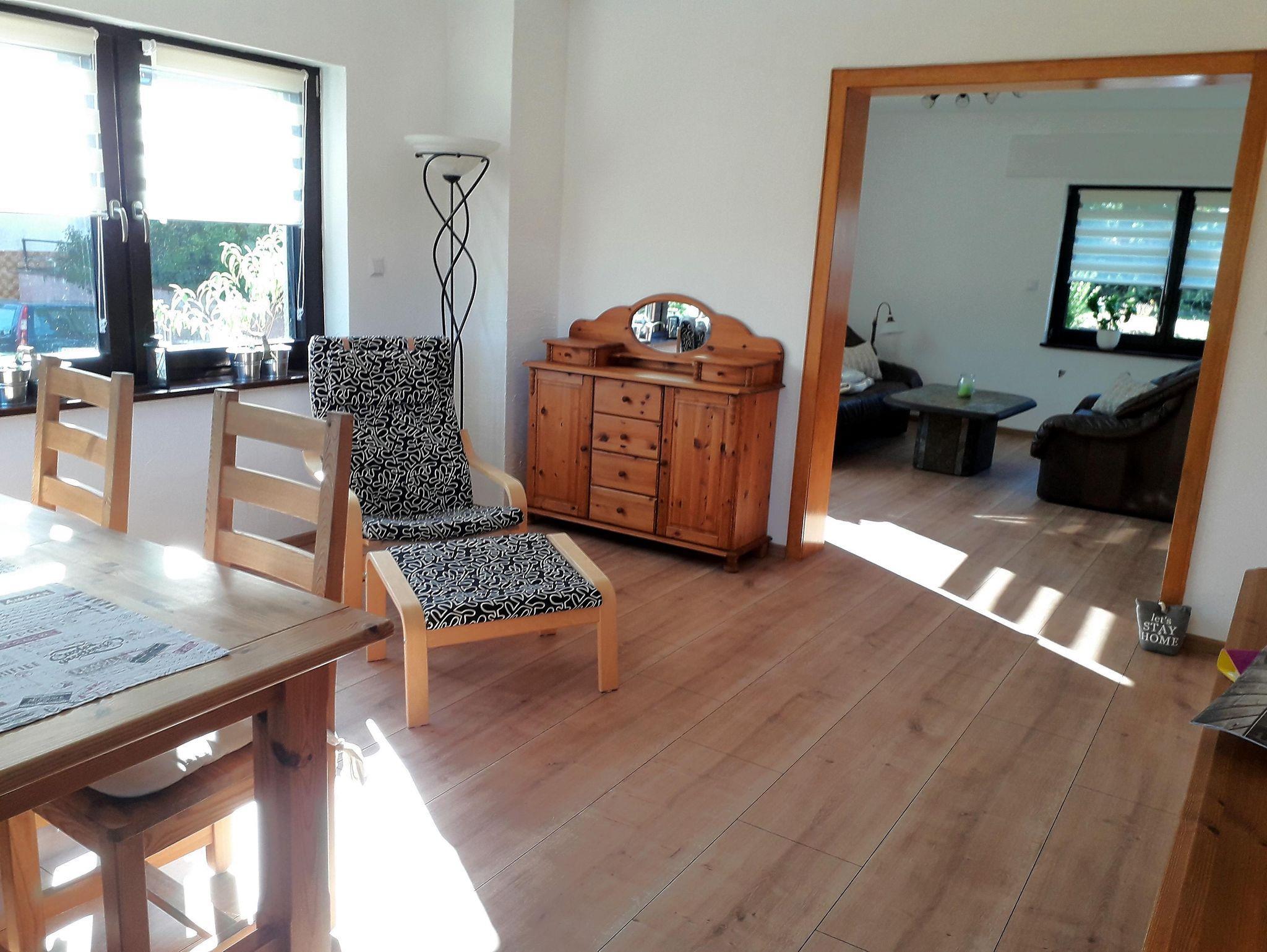 Die 2023 neu renovierte Ferienwohnung liegt im Erdgeschoss unseres Landhauses Grimburg.