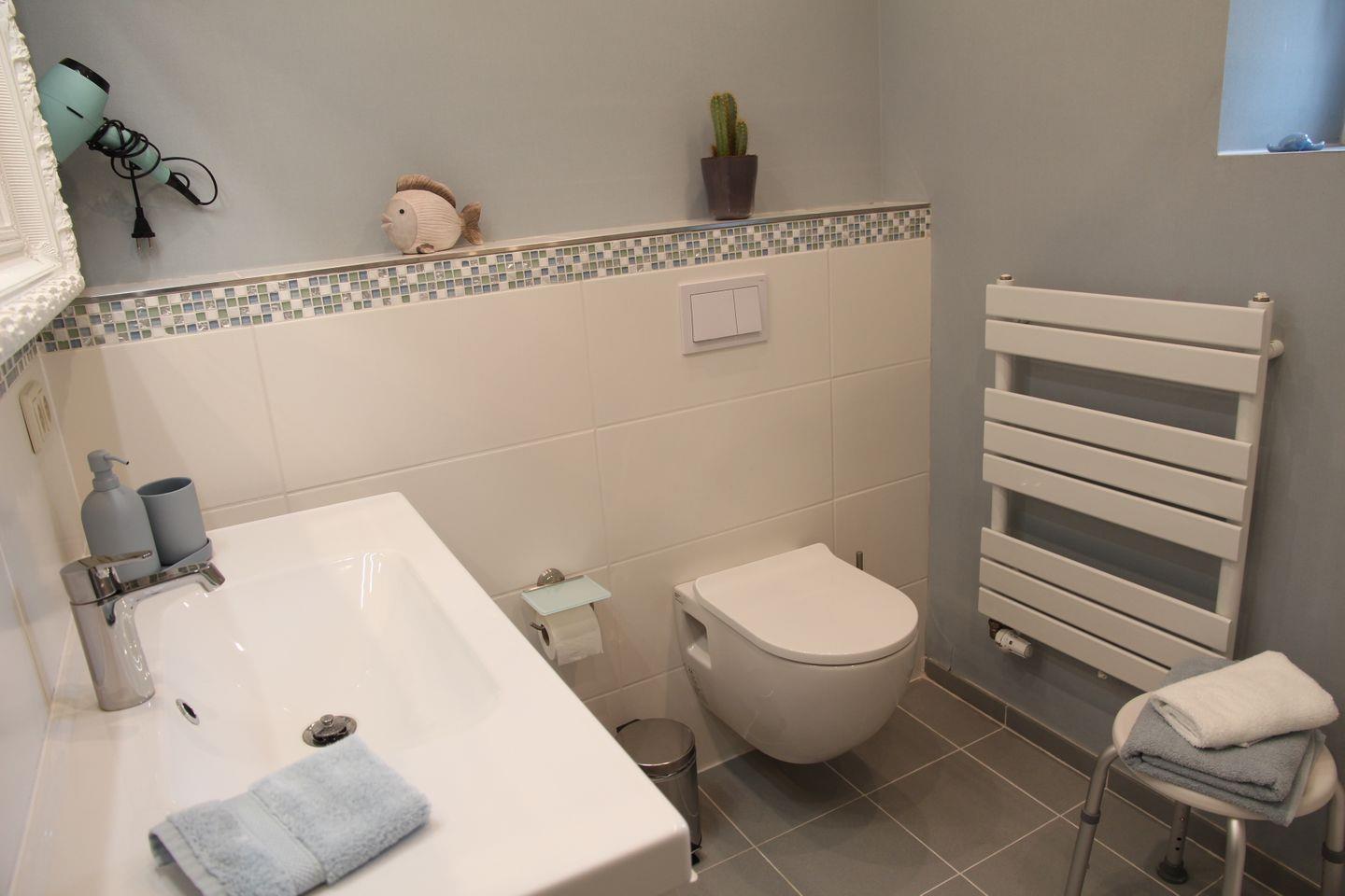 Die Wohnung 1 befindet sich mit ca. 30qm im Erdgeschoss und bietet durch das 1,60m breite Bett Platz für 1-2 Personen. In dem 1-Zimmer-Apartment finden Sie neben dem Bett einen Fernseher mit Sessel, Essplatz mit 2 Stühlen, sowie die gut ausgestattete Küche (keine Spülmaschine!). Angrenzend befindet sich ein neuwertiges Badezimmer mit flacher Dusche, Waschbecken und Toilette.
