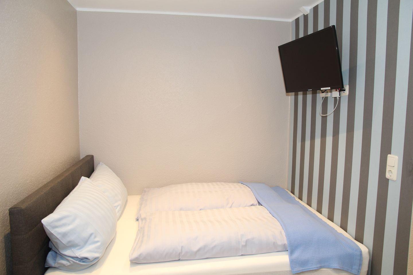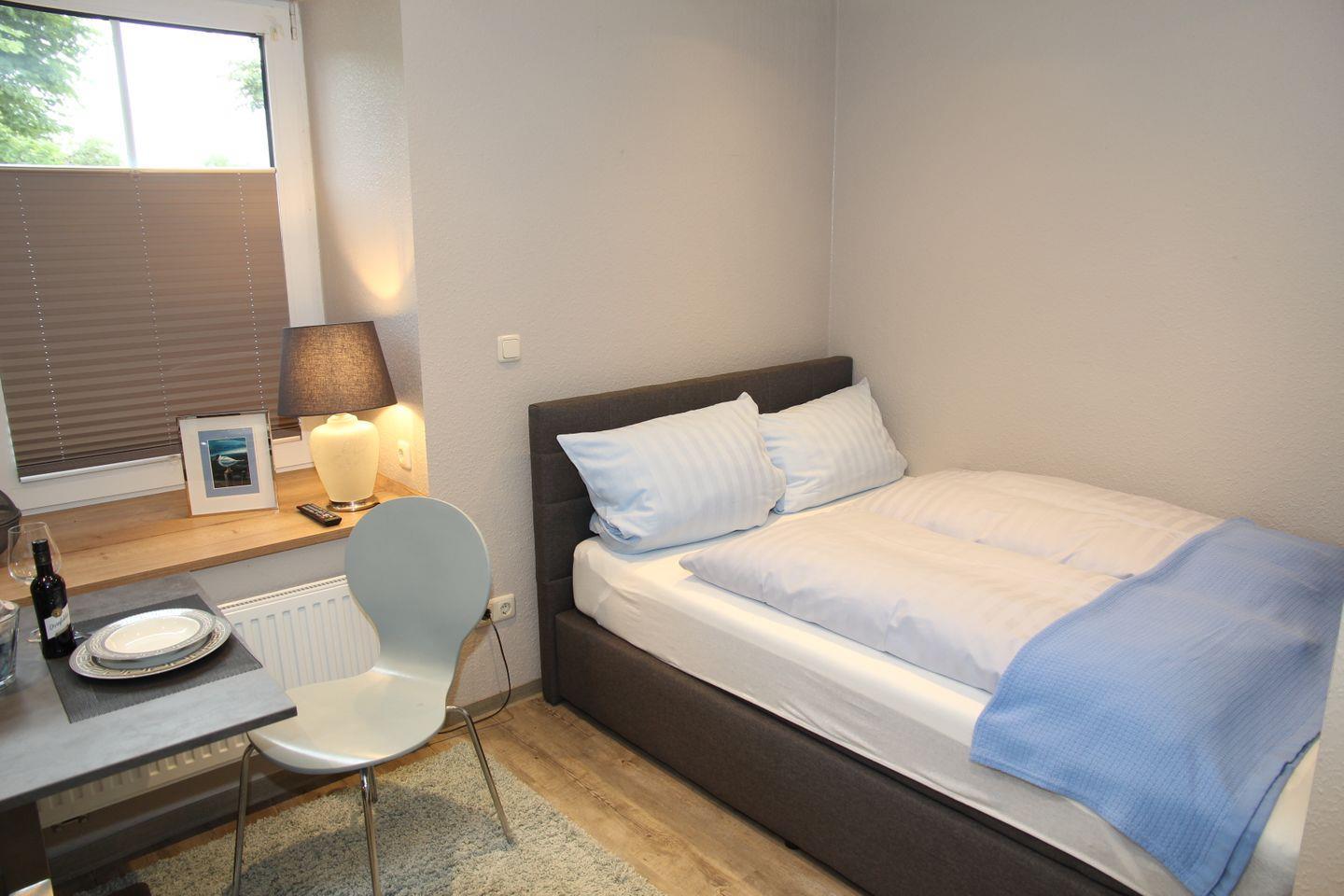 Die Wohnung 1 befindet sich mit ca. 30qm im Erdgeschoss und bietet durch das 1,20m breite Bett Platz für 1-2 Personen.