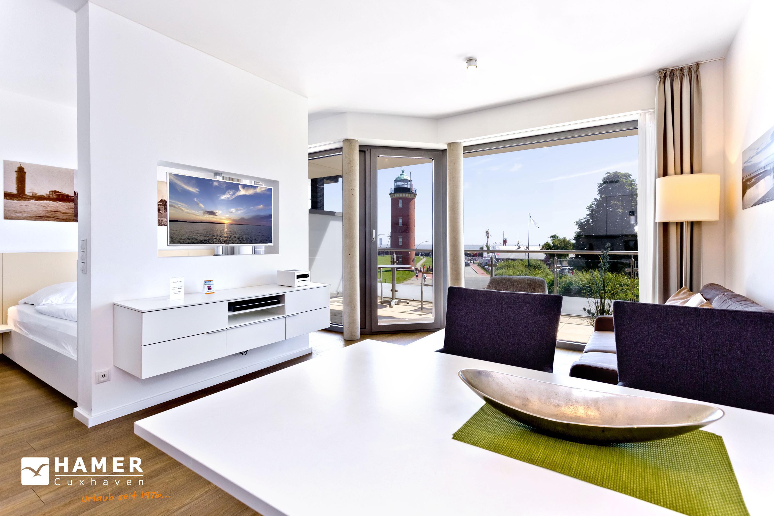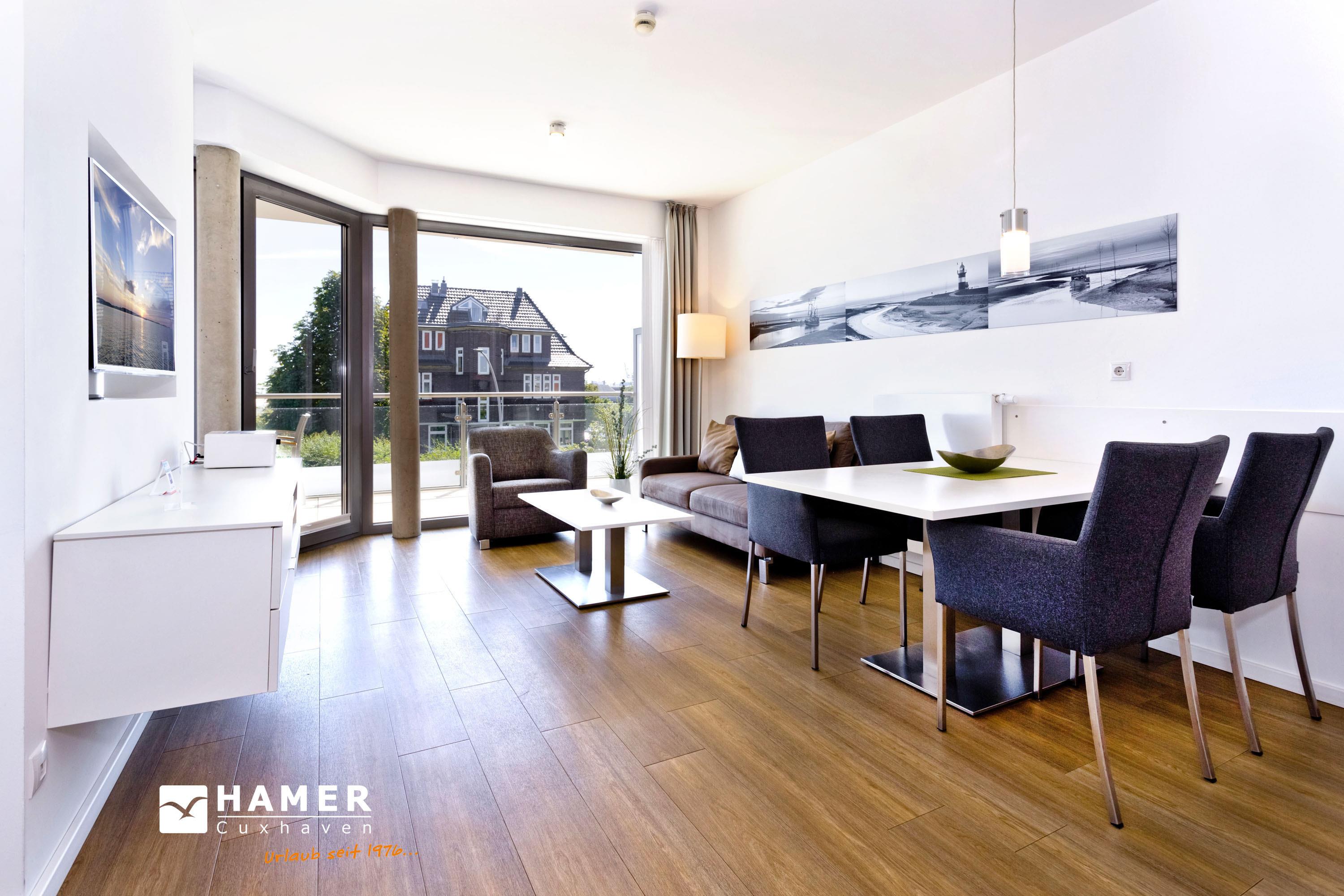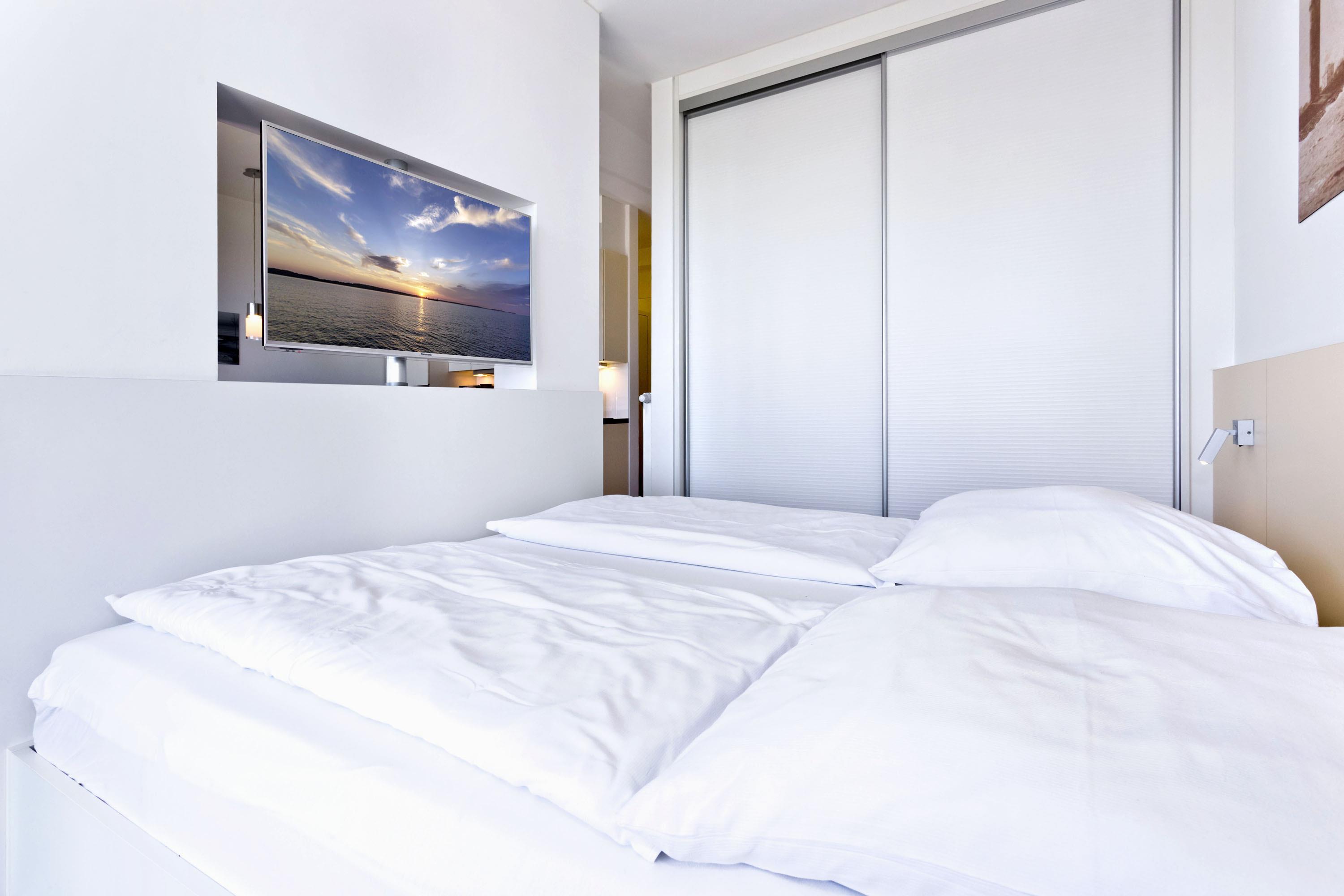 Wohlfühlappartement mit Seesicht! Hochwertig ausgestattet für 2 Pers. Großer Balkon mit Seesicht (ost), vollständige Küchenzeile mit Mikrow., Geschirrspüler etc., das gesamte App. ist über Außenjalousien abzudunkeln, SAT-TV (drehbar zum Bett), Blue-Ray-DVD, CD-Kompaktanlage, USB-Steckdosen, kostenloses W-Lan-Internet, allergikerfreundlich, ebenerdige Dusche/WC, Föhn, freie Saunanutzung, reservierter Außenstellplatz am Haus, keine Haustiere und natürlich Nichtraucher.