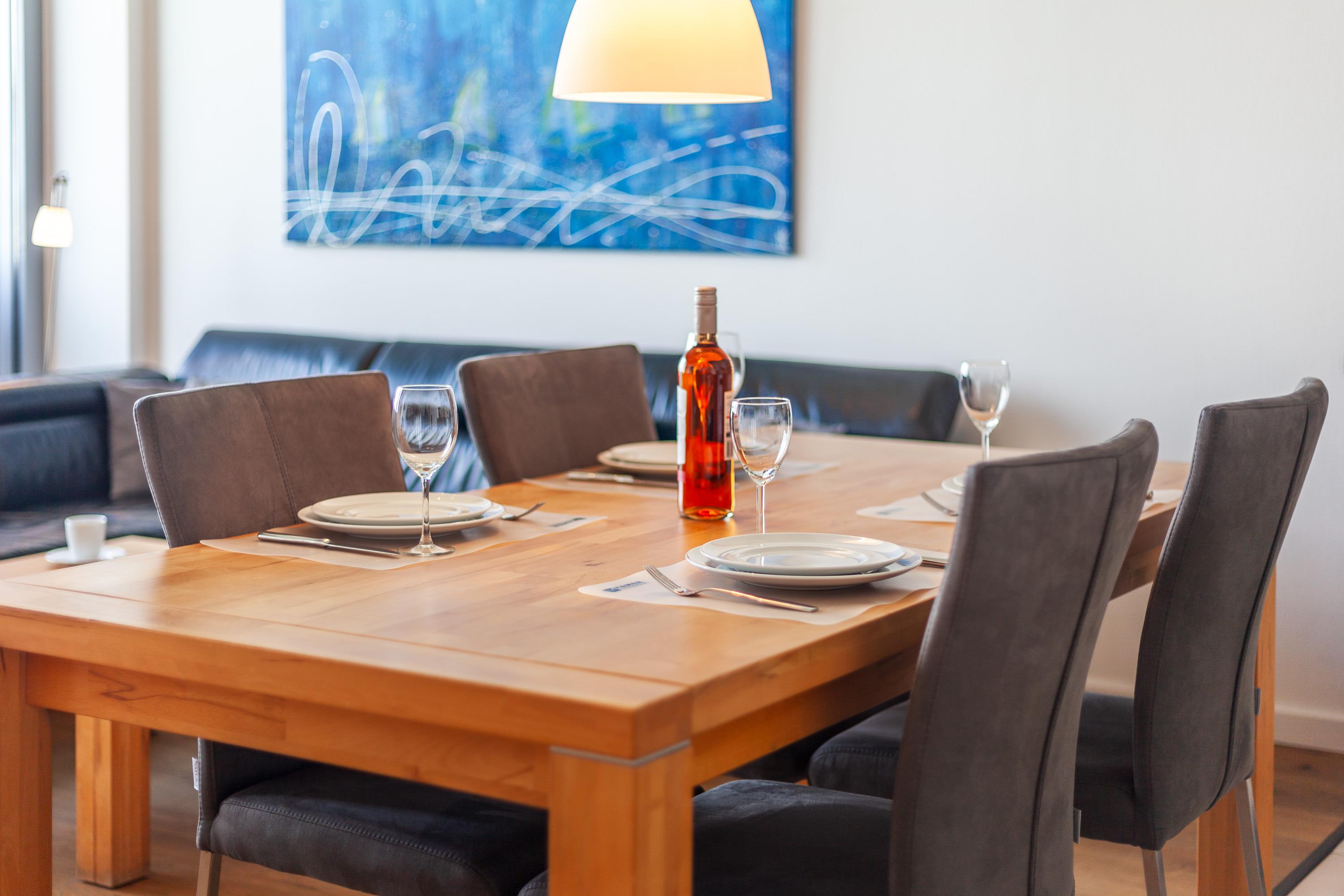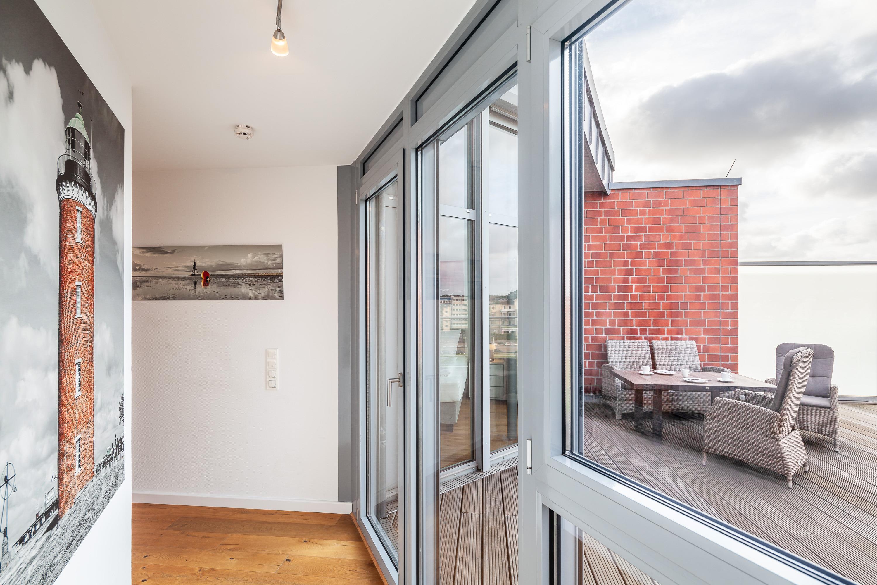 Die Penthousewohnung! 5.Etage mit dem absoluten Blick auf den Elbstrom. (Die Webcam befindet sich an dieser Whg) Wohnzimmer mit Esstisch und geschmackvoller Sitzecke, 2xKabel/TV/Bluray, Stereoanlage, Balkon zur Seeseite, riesige Terrasse zur Südseite mit Blick auf den Hafen, vollständig ausgestattete Küchenzeile, Schlafzimmer mit Doppelbett (Boxspringbett) und elektr. Rollläden, Bad/Du/Wc mit Fön, die gesamte Wohnung ist hochwertig mit Parkett bzw. Fliesen ausgestattet, Fußbodenheizung, je ein reservierter Pkw-Stellplatz außen u. i. der Tiefgarage, keine Haustiere und natürlich Nichtraucher und keine Haustiere.