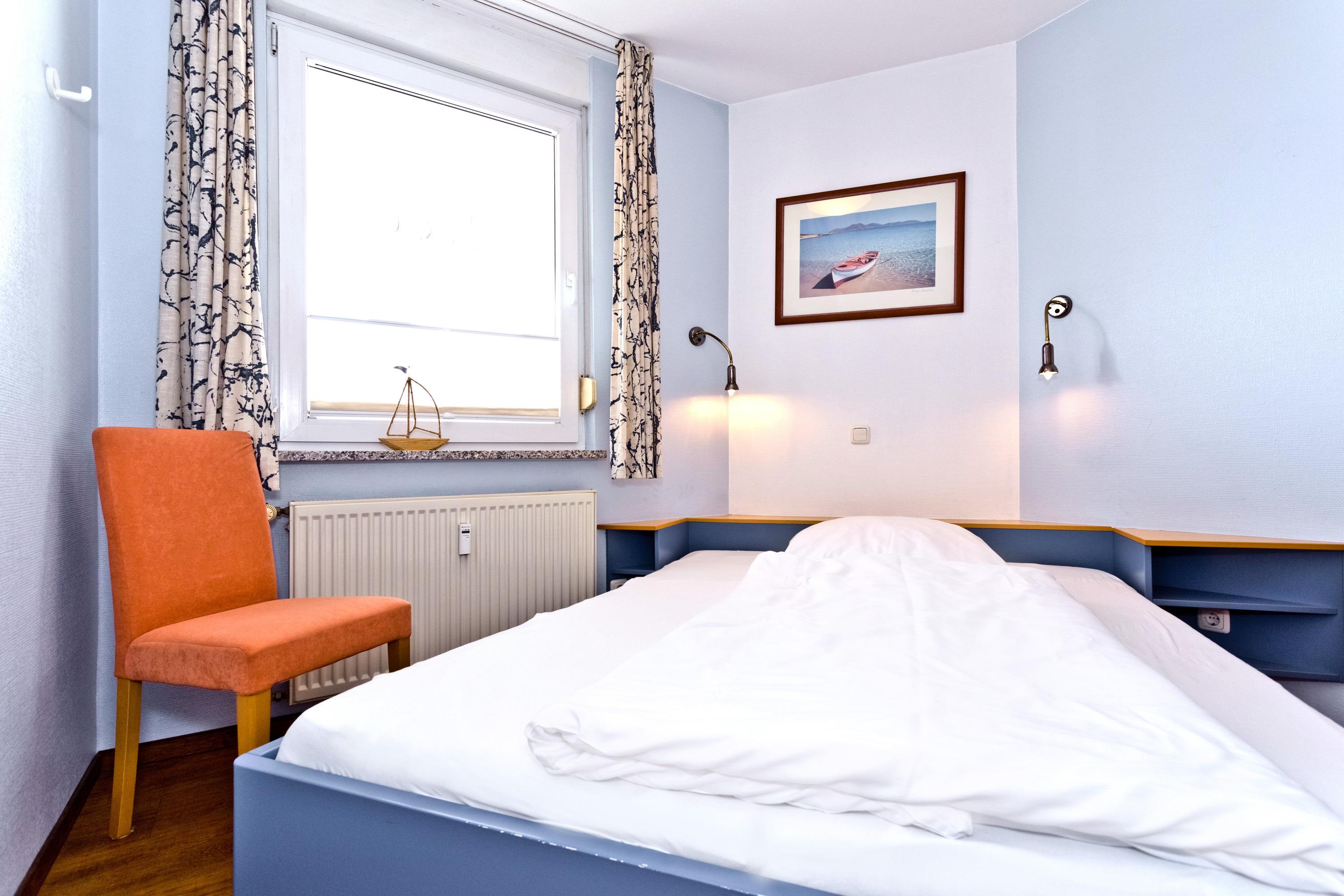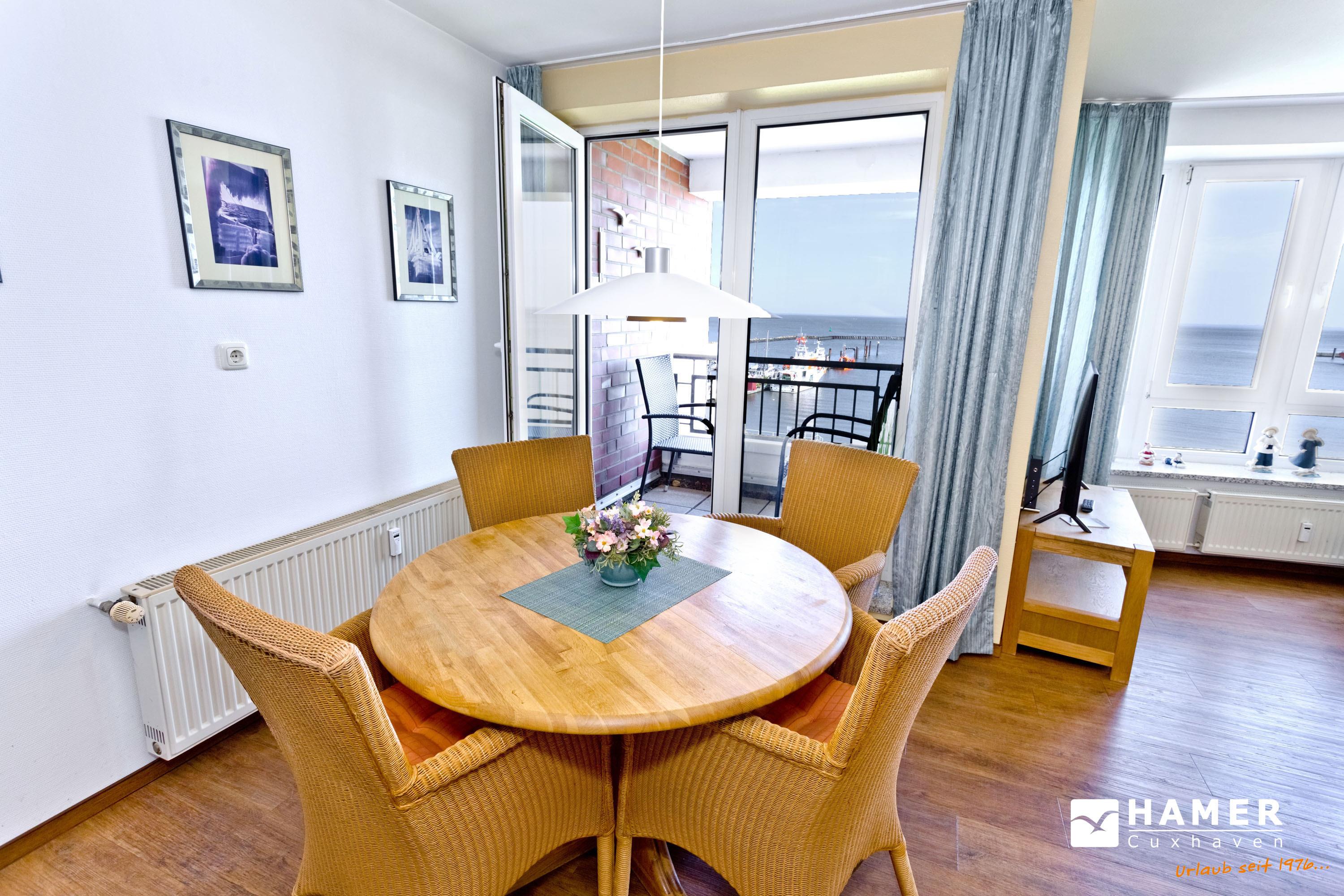 Schöne 2-Raum-Ferienwohnung für 2 Personen über ca. 50m² mit Sicht auf die Elbmündung. 3.Etage mit Aufzug, Schlafzimmer mit Doppelbett (2x75x190) und Rollladen, komplette Küchenzeile (Geschirrspüler, Mikrowelle etc.) Wohnzimmer mit Sofa, Kabel-TV, kostenfreies W-LAN, Esstisch, kleiner Balkon zur Seeseite (nord), nummerierter Pkw-Stellplatz #36 am Haus, keine Haustiere gestattet, Nichtraucher.