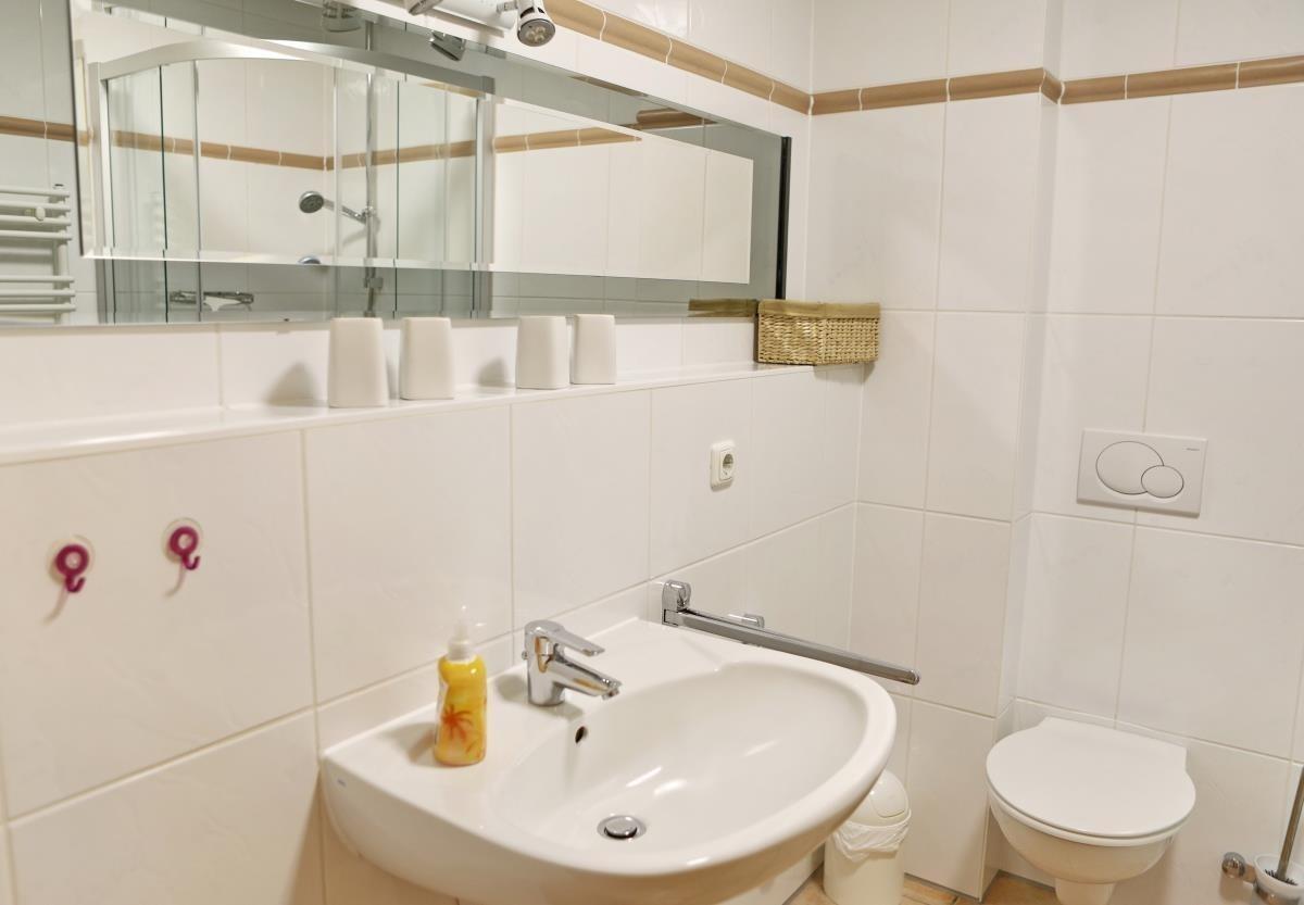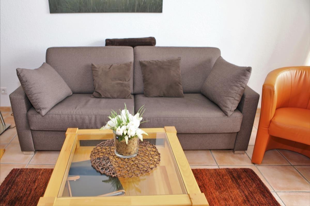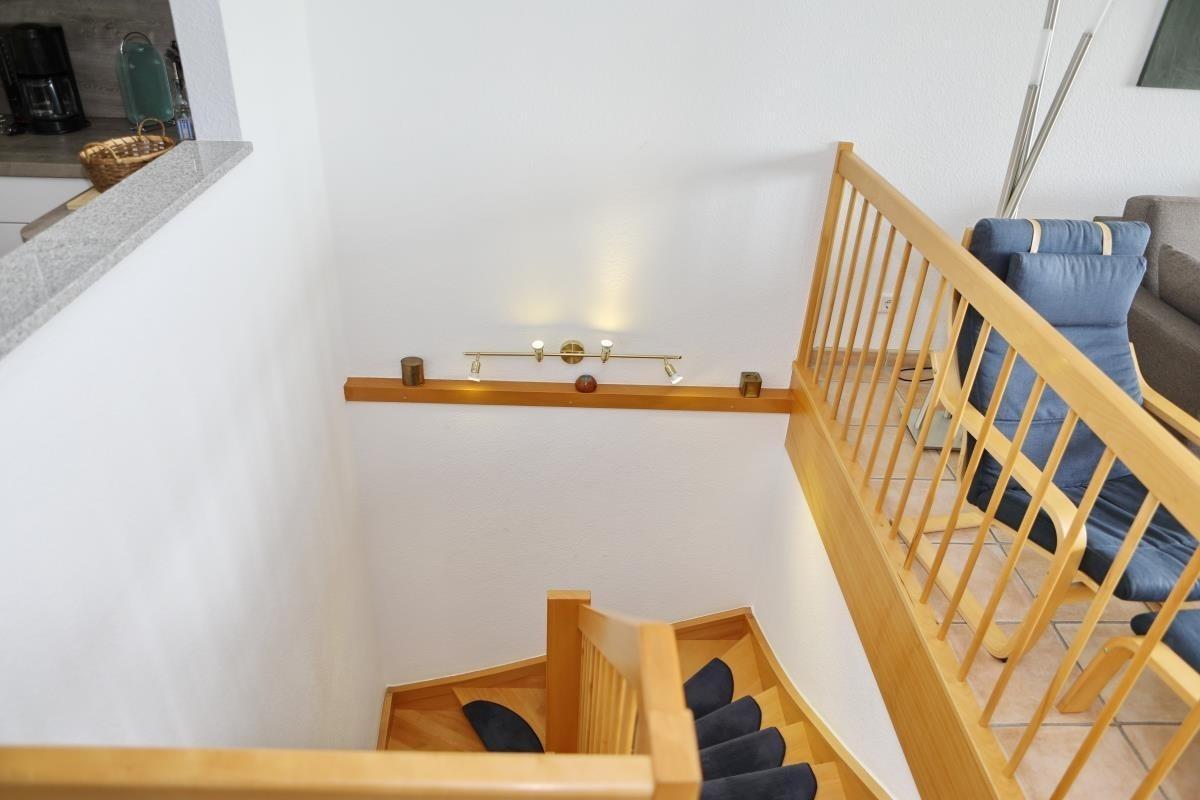 Die hochwertig ausgestattete Maisonette-Wohnung erstreckt sich über das Erdgeschoss und die 1. Etage und bietet auf 60 m² Platz für bis zu vier Personen. Im Eingangsbereich erwartet Sie eine Diele mit Garderobe. Das separate Schlafzimmer verfügt über ein komfortables Doppelbett (2 x 90 x 200 cm), einen Relax-Sessel und einen großen Flachbild-TV. Im Wohnbereich steht ein Schlafsofa (180 x 200 cm) als zusätzliche Schlafmöglichkeit zur Verfügung.
