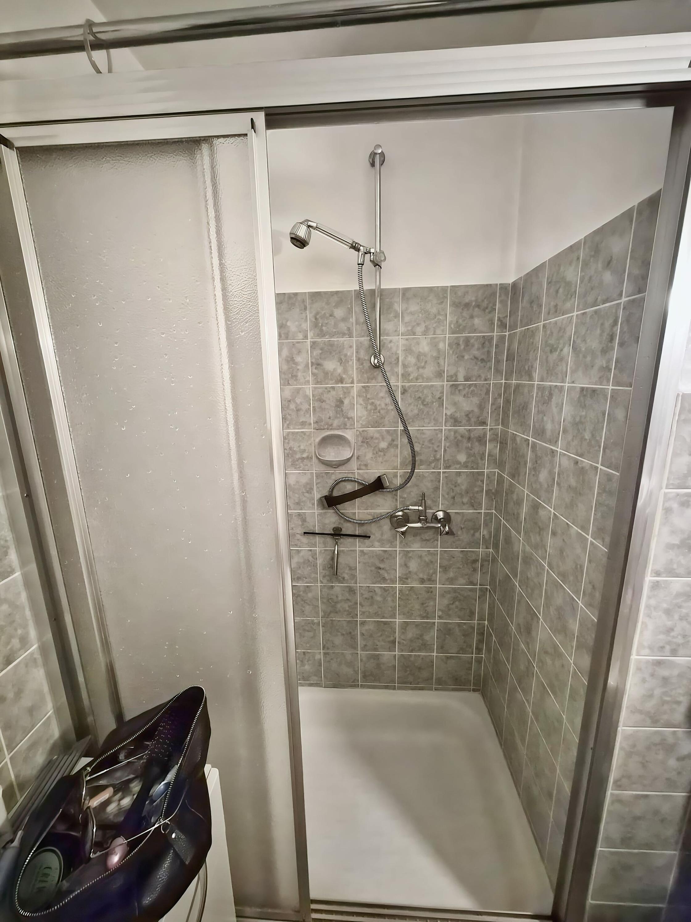 Das Badezimmer verfügt über eine Dusche mit einem 30 cm hohen Einstieg, ein großzügiges Waschbecken und ausreichend Stauraum. Ein Kosmetikspiegel[nbsp] über dem Waschbecken sind ebenfalls vorhanden.