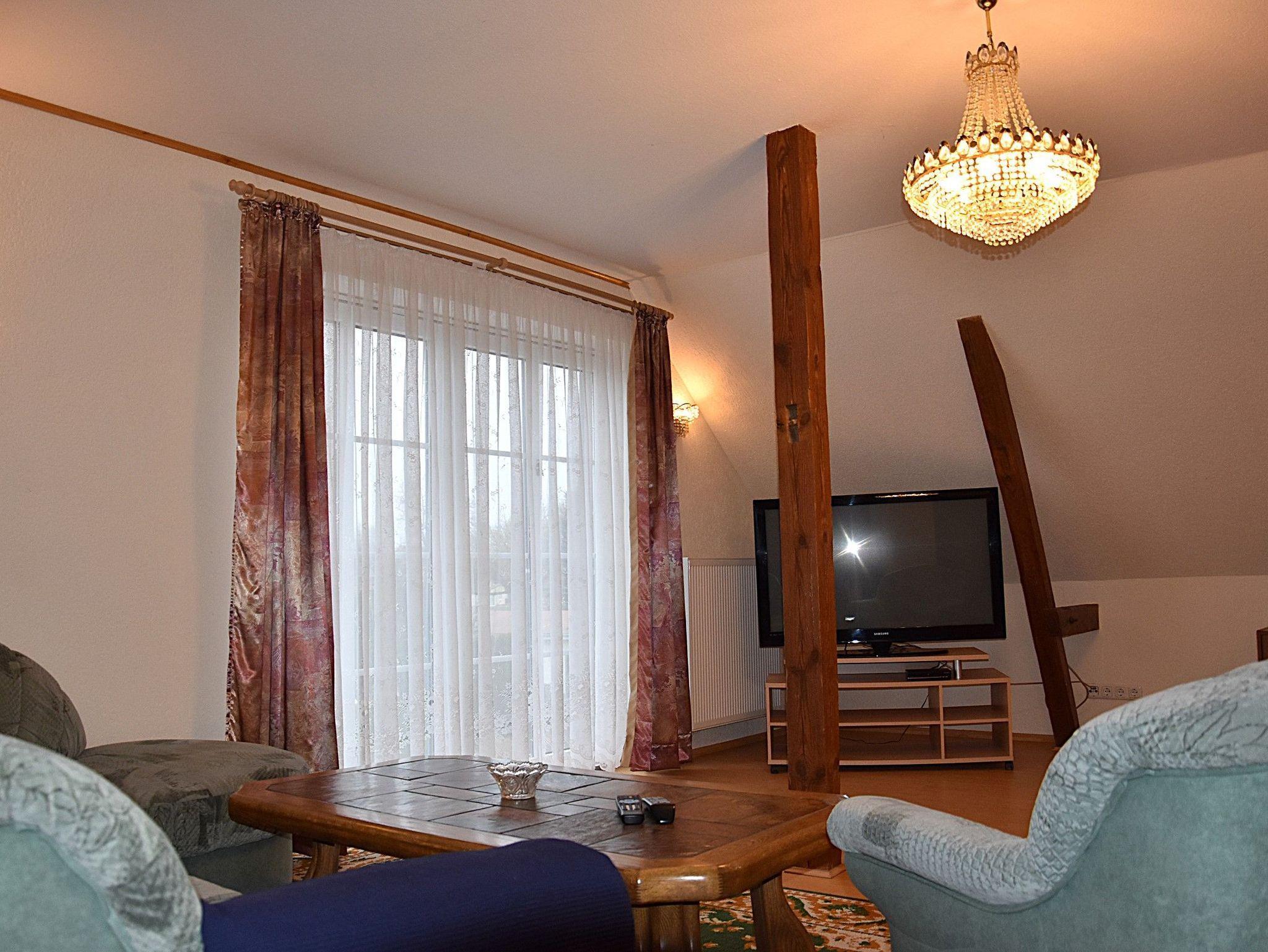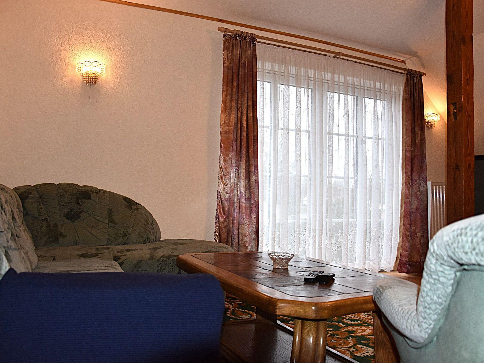 Im Obergeschoss finden Sie den großzügigen Wohnbereich mit 2 gemütlichen Sofaecken, die mit Schlaffunktion ausgestattet sind, sowie einem großen Flachbild TV (Sat- Anlage) und Radio.