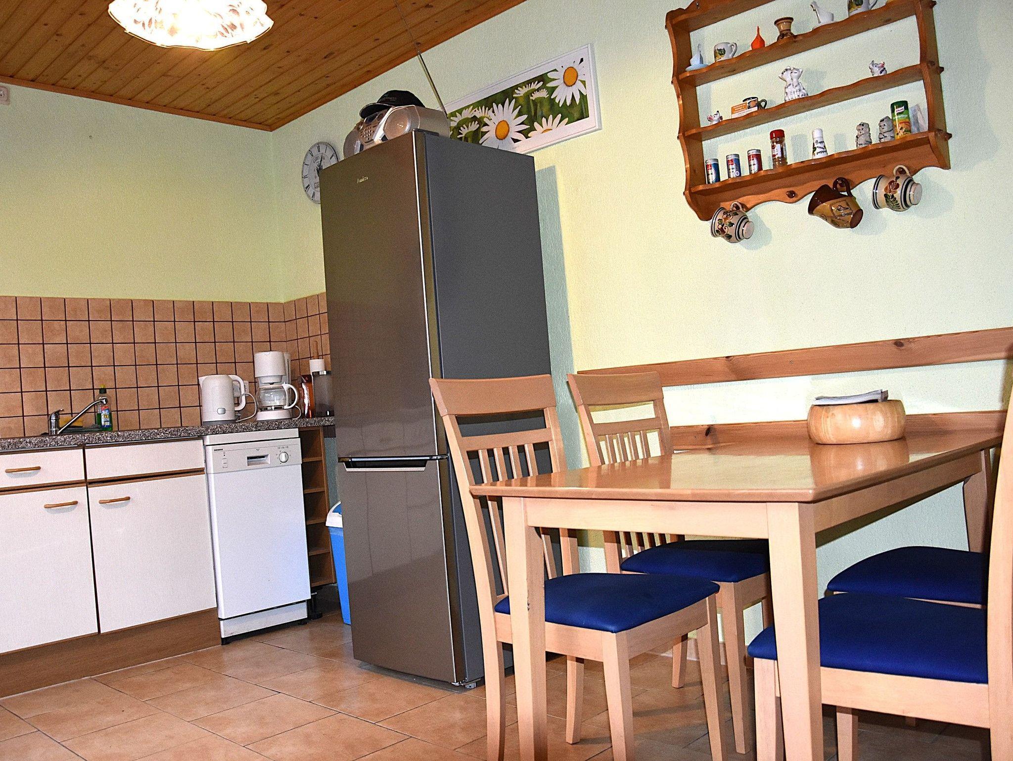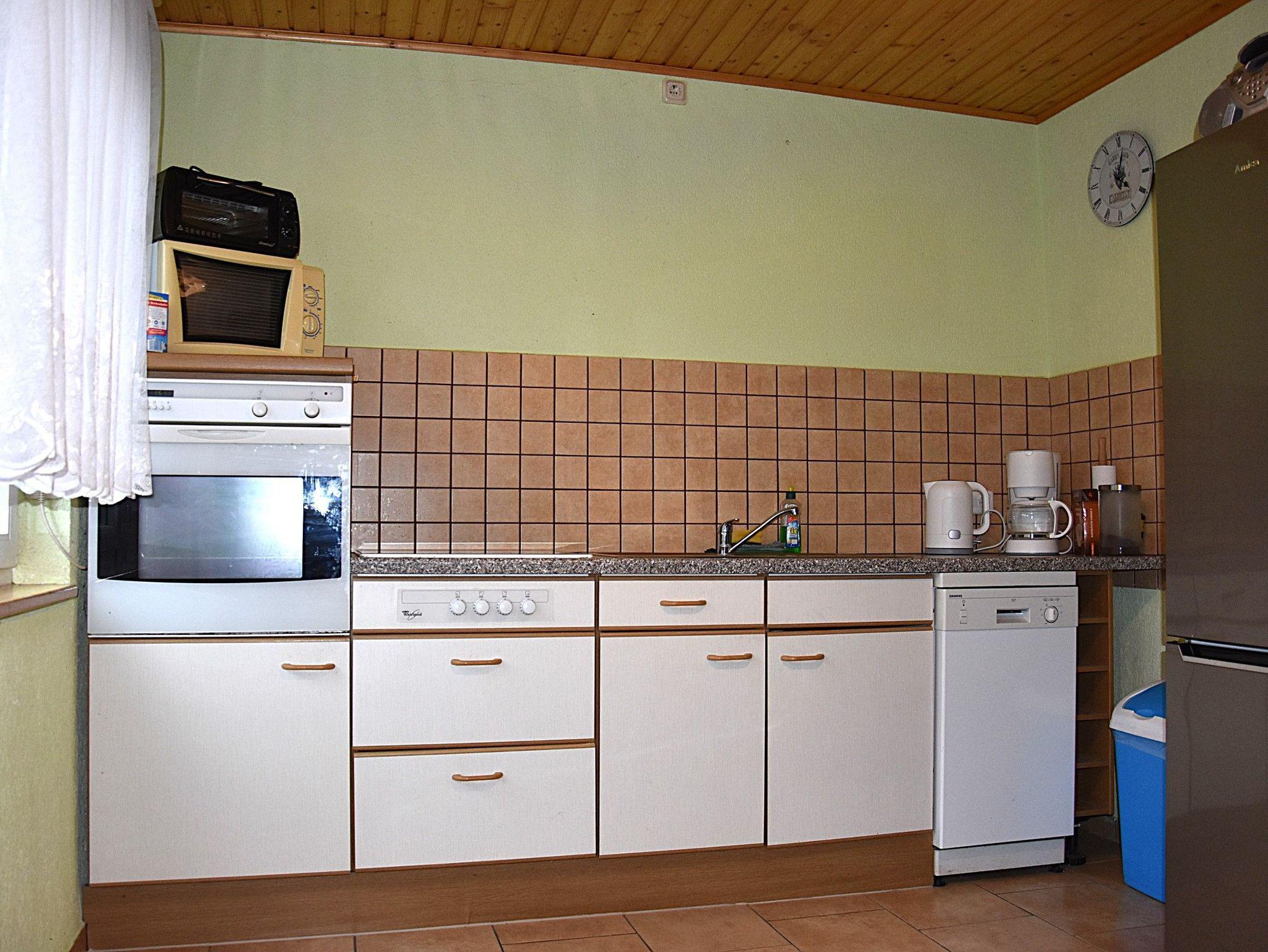 Im Erdgeschoss finden Sie eine vollständig ausgestattete Küche mit E- Herd, Backofen, Kühl- Gefrierkombination, Mikrowelle, Spülmaschine und Essecke.