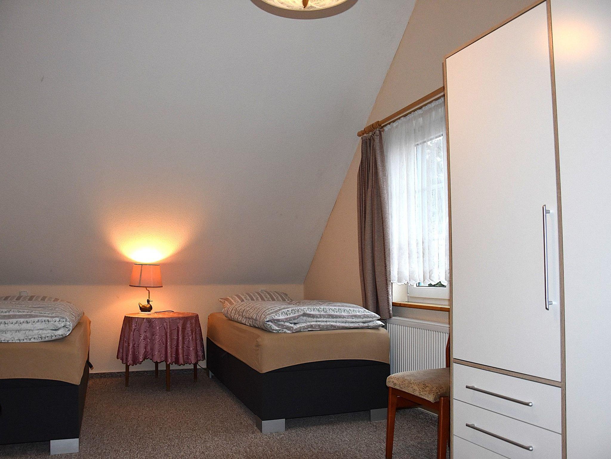 Des Weiteren befinden sich hier zwei Schlafräume. Der 1. Schlafraum mit einem Einzelbett und TV, der 2. Schlafraum mit zwei Einzelbetten und TV.