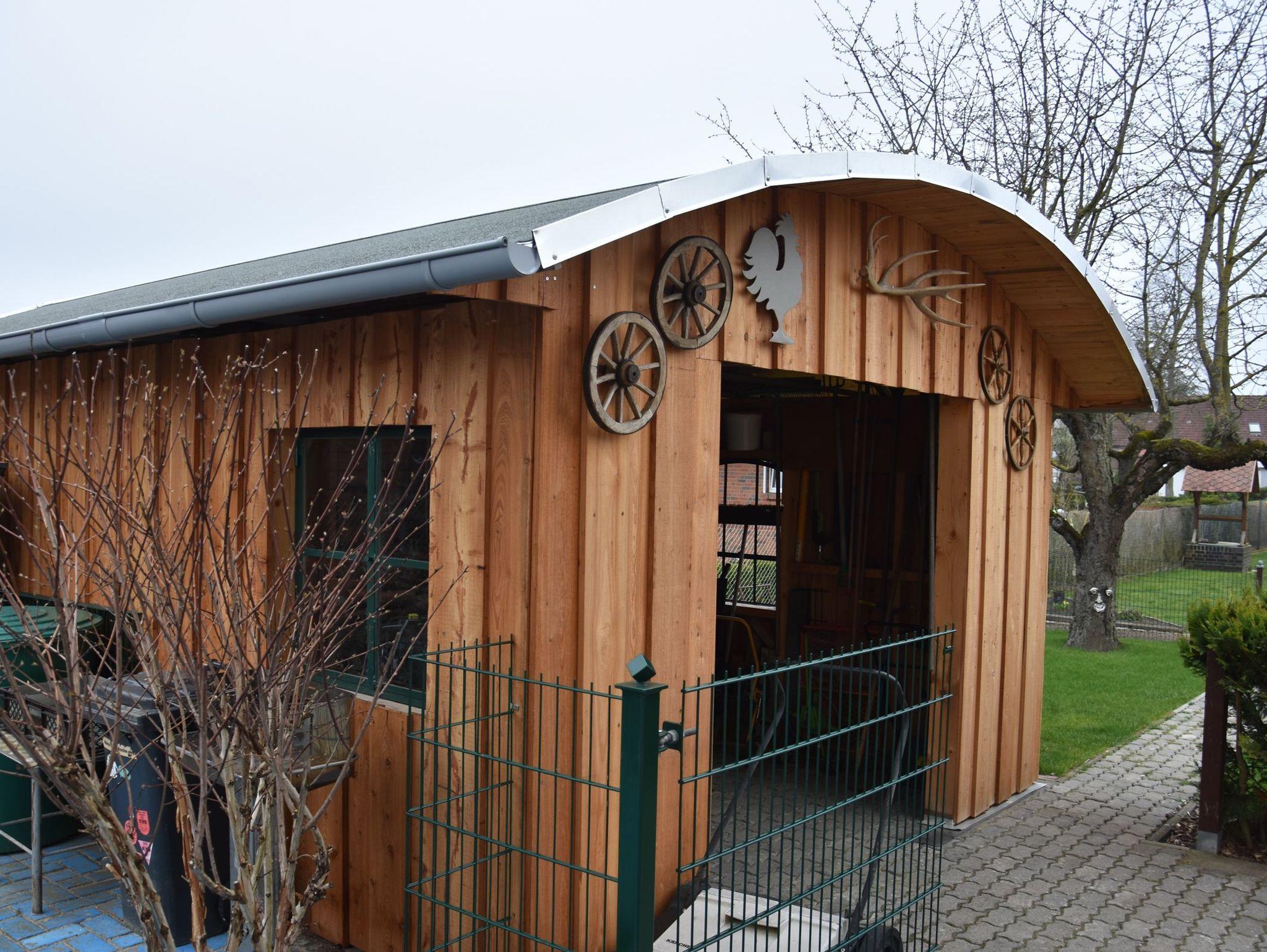 Das Ferienhaus befindet sich in einem freistehenden Nebengebäude auf dem Grundstück der Vermieter. Für die Gäste wurde ein völlig separater umzäunter Bereich von ca. 150 qm geschaffen.