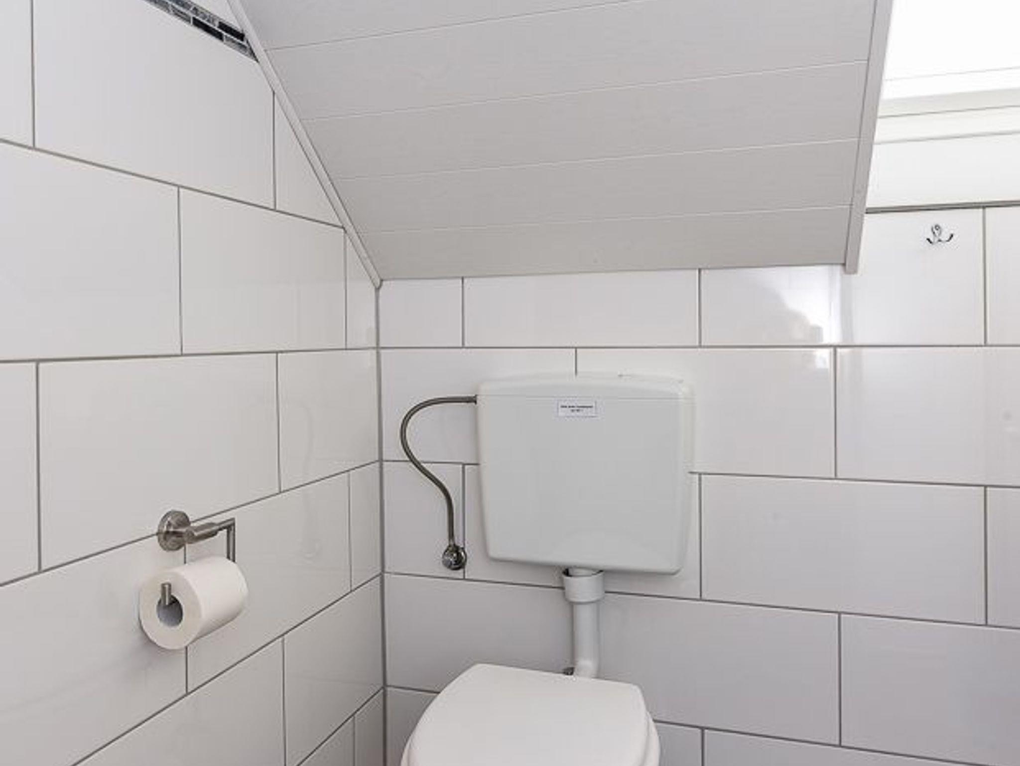 Badezimmer mit Dusche, Waschtisch und WC, Obergeschoss, Terrasse (Sitzgruppe im Garten), optimal für 2 bis 4 Personen.