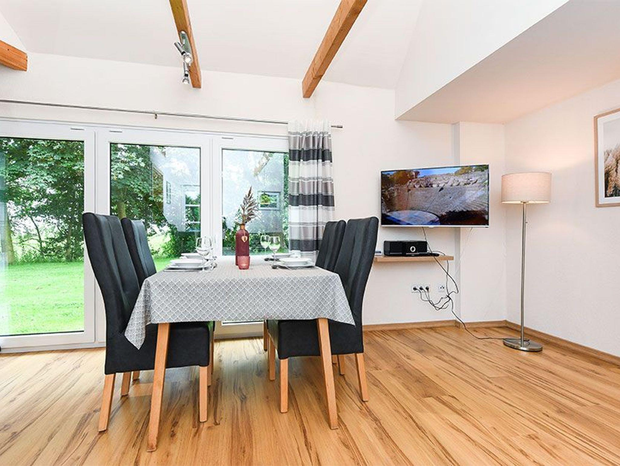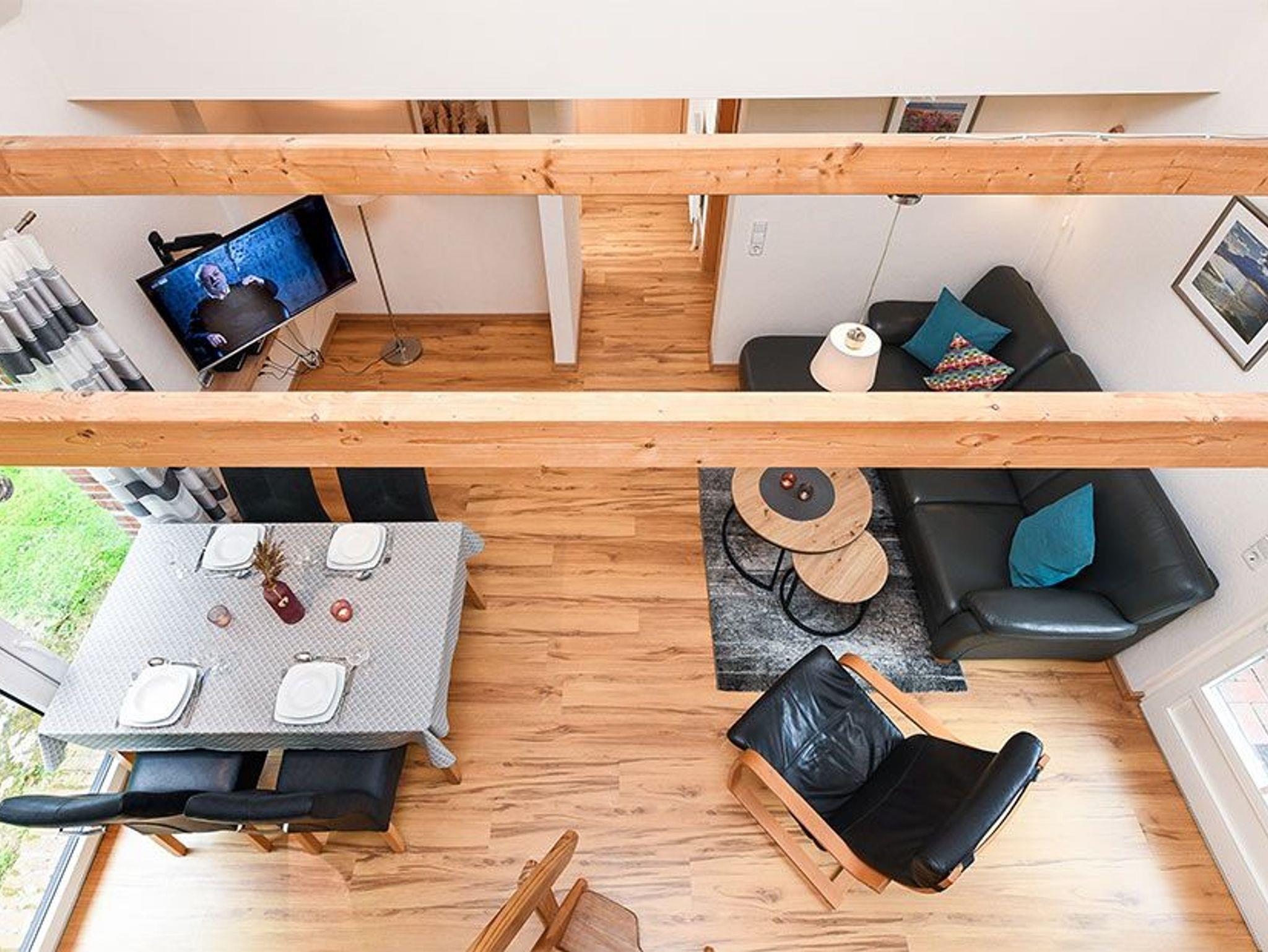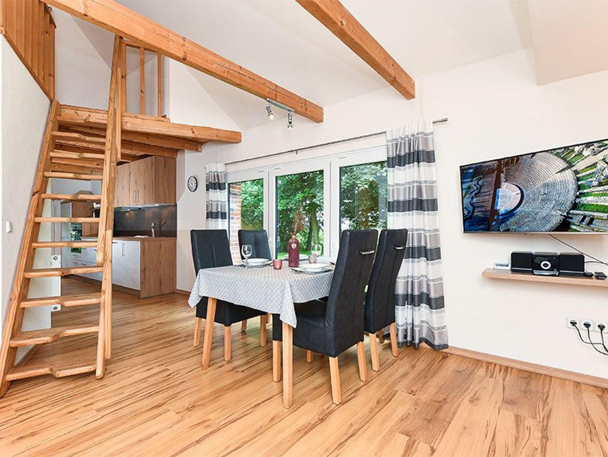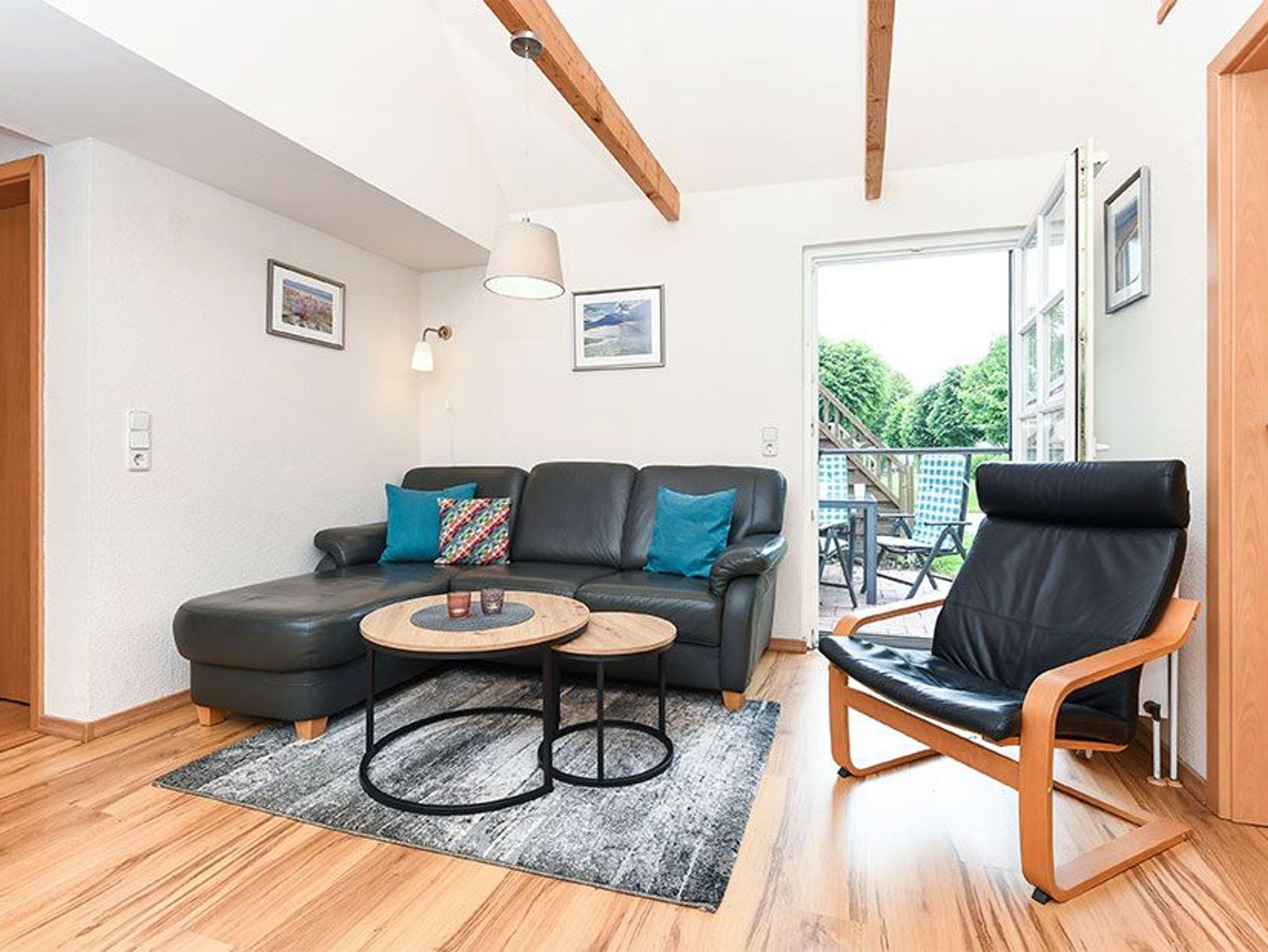 Größe ca. 75 Quadratmeter, Wohnraum mit integrierter Küche, Schlafzimmer, zweites separates Schlafzimmer/Kinderzimmer, Badezimmer mit Dusche, Waschtisch und WC, Erdgeschoss, Obergeschoss, Terrasse (Sitzgruppe im Garten), Koffer-/Abstellraum, optimal für 2 bis 6 Personen.