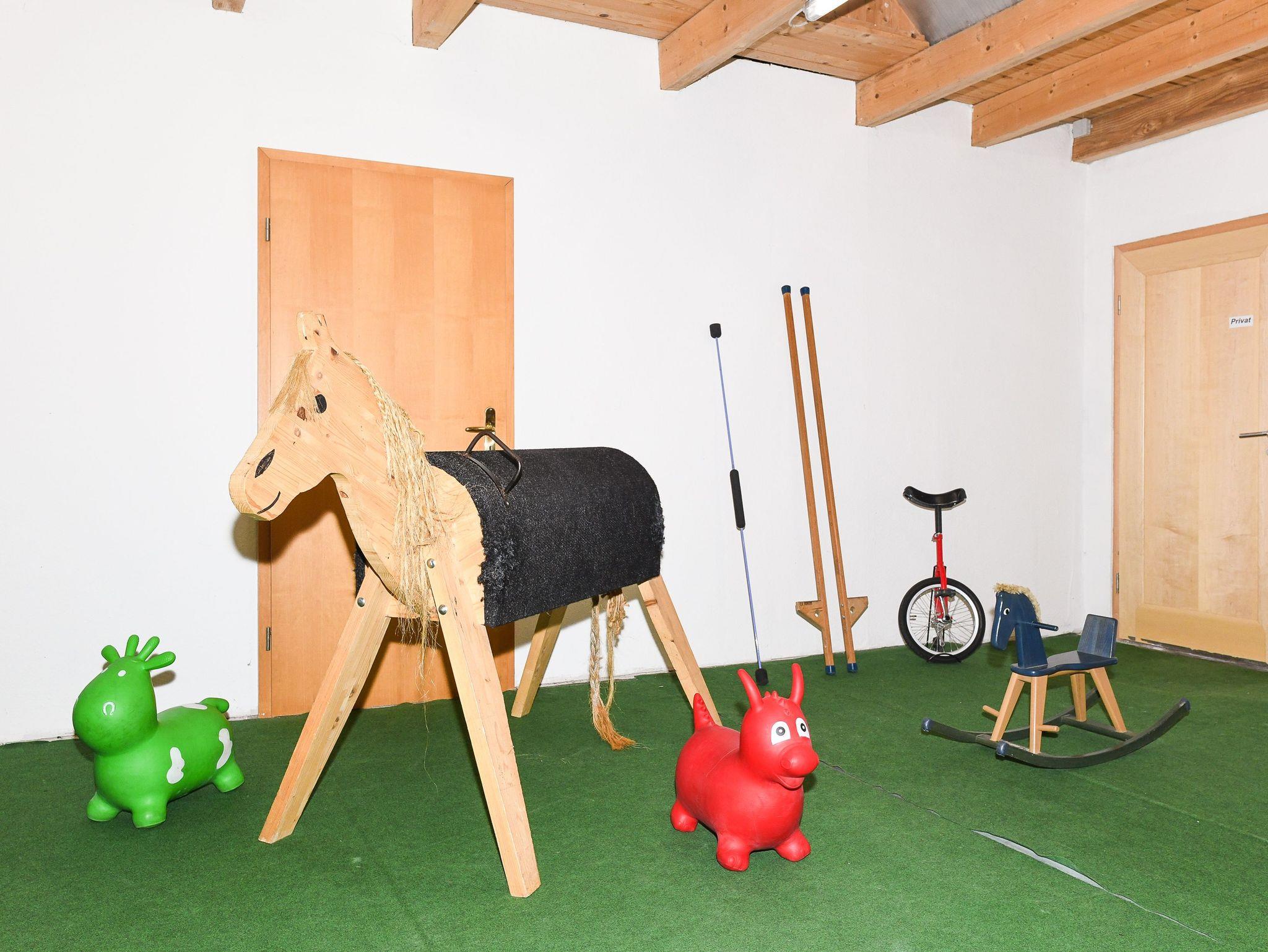 Währenddessen haben Ihre Kinder jede Menge Gelegenheiten, zu Spielen und auf dem Hof herumzutoben. Es gibt einen Spiele-Raum mit Kicker, Tischtennisplatte und Fitnessgeräten, außerdem viele Gesellschafts-Spiele, einen kleinen Spielplatz auf dem Gelände, ein Trampolin, einen Basketballkorb sowie viele Fahrzeuge - Dino-Car, Bobbycar, Fahrräder usw. Nur Langeweile gibt es hier nicht!