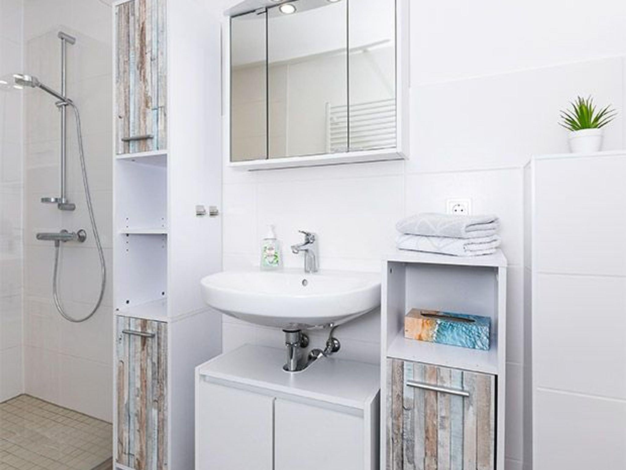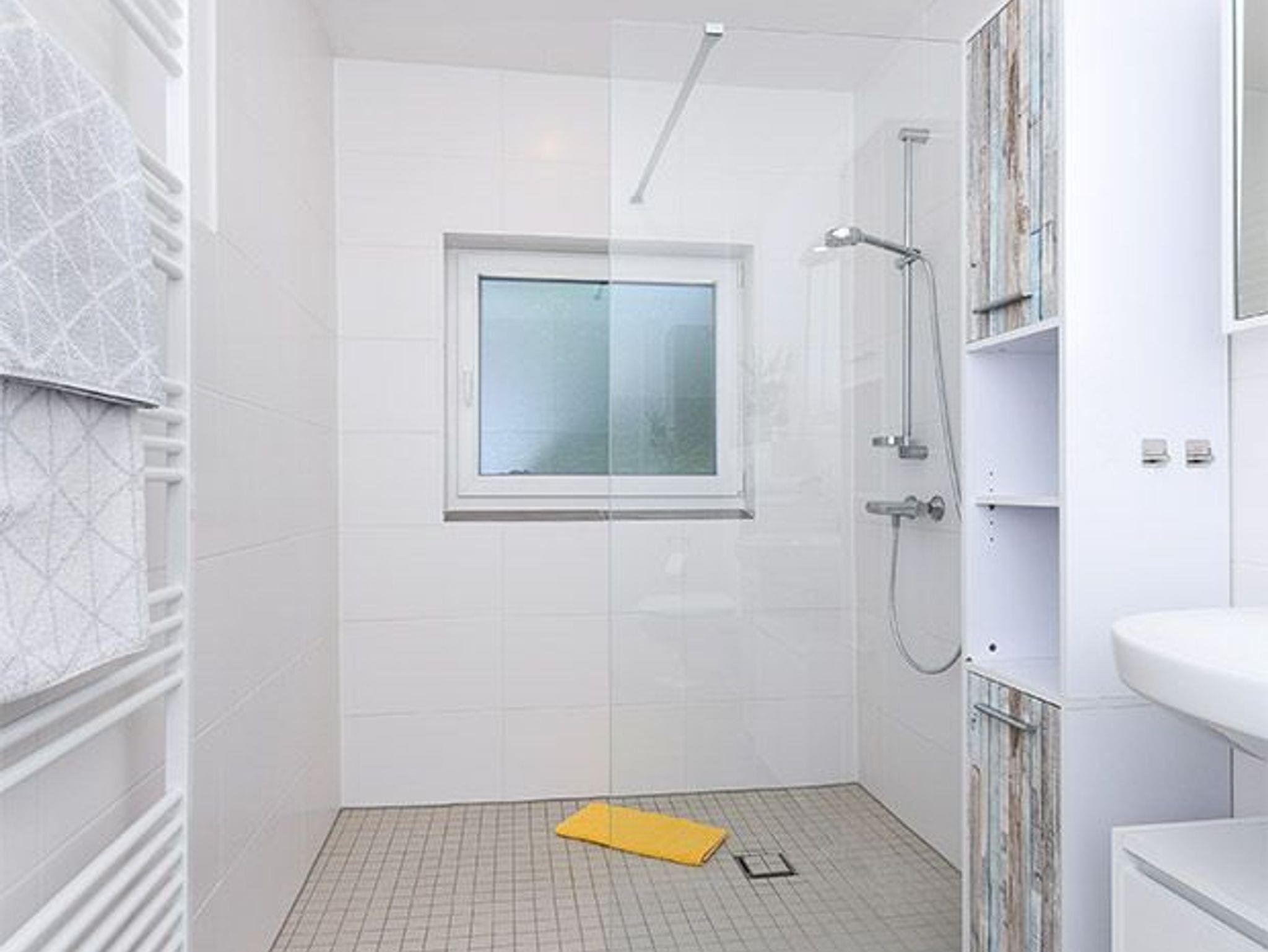 Weiter Highlights der Wohnung sind die Küche mit Backofen, die ruhige Lage mit Terrasse, der kostenlose WLAN Internetzugang, sowie das moderne Badezimmer mit ebenerdiger Dusche.