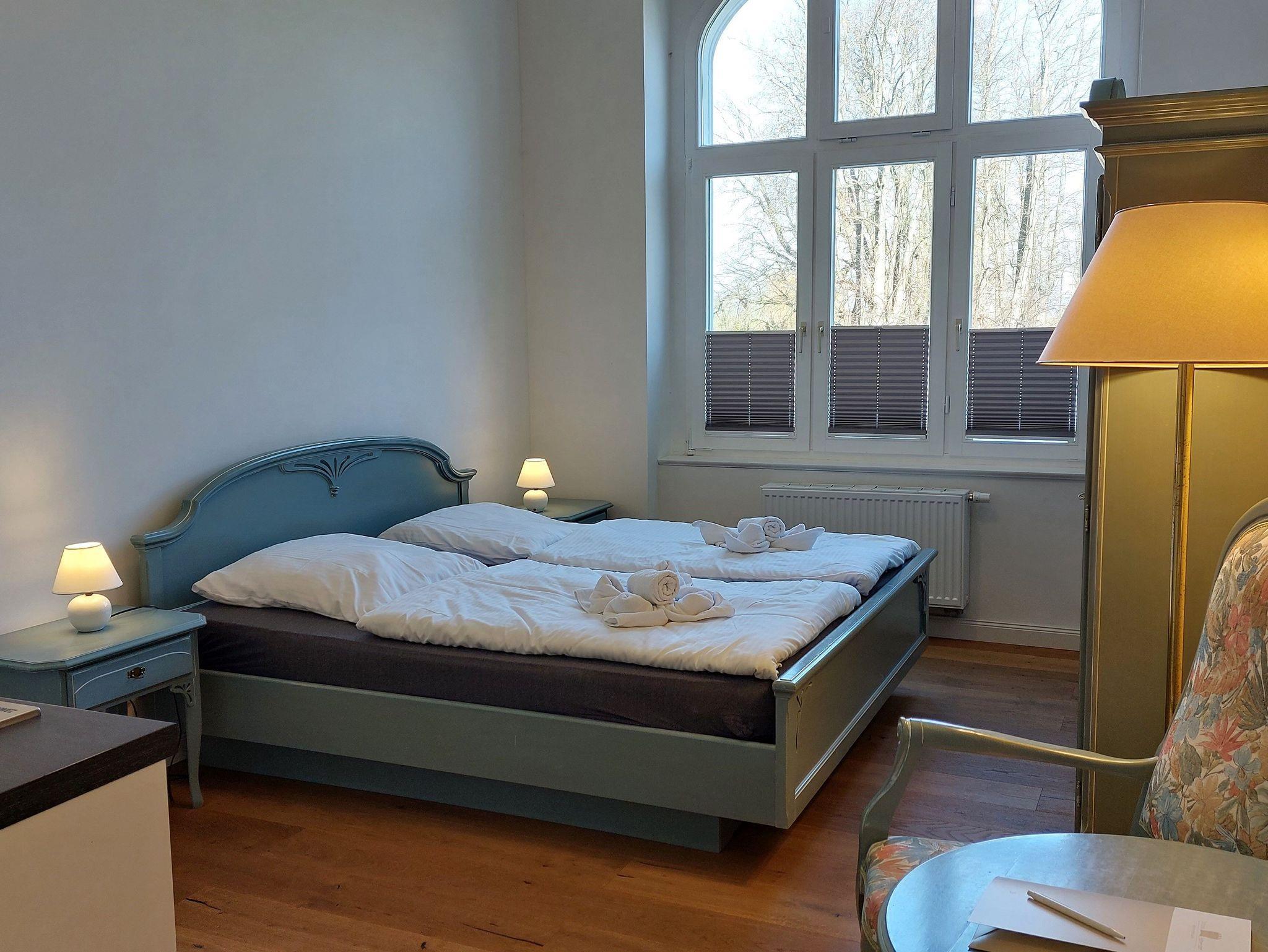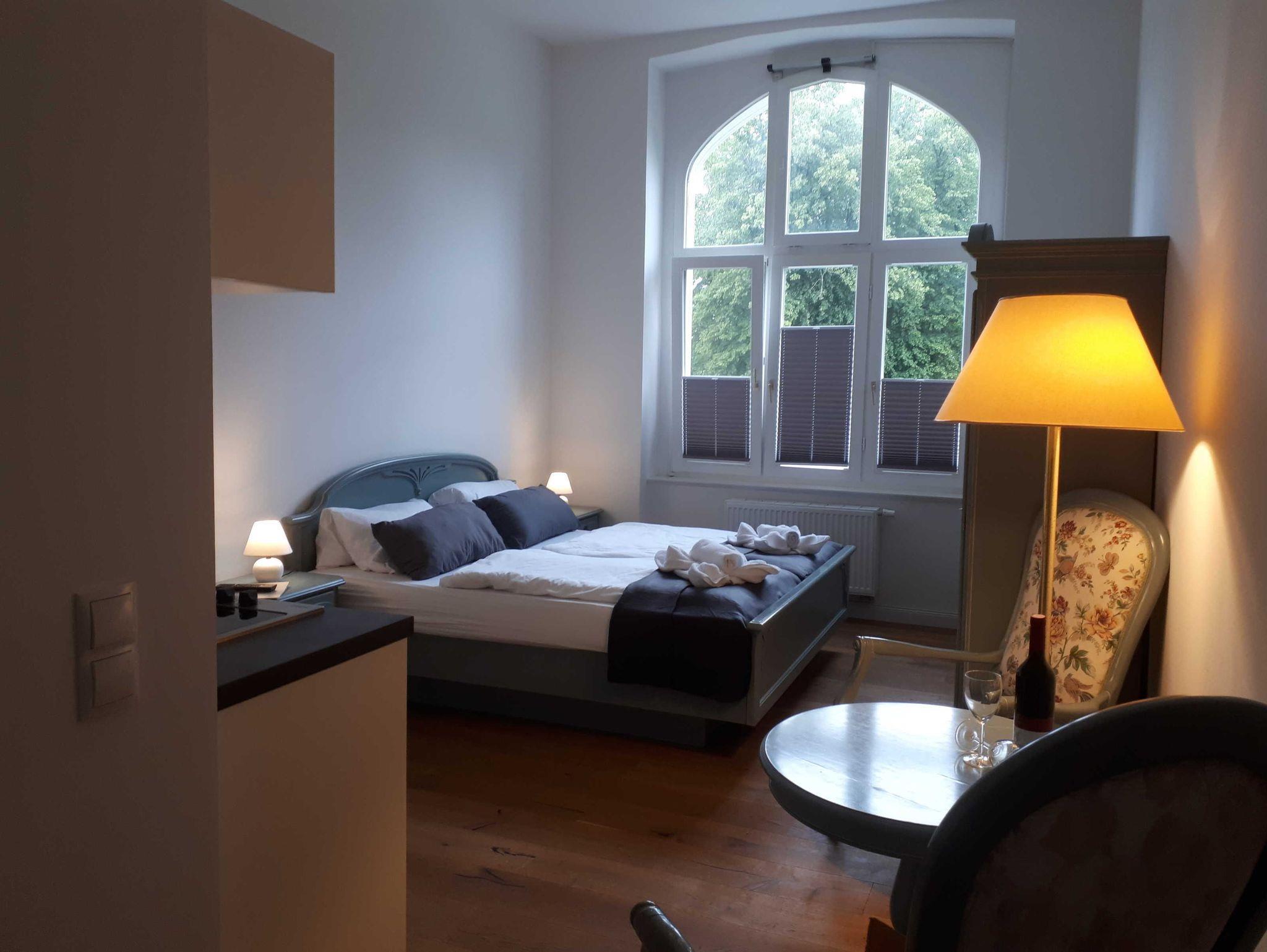Die Schloss Studios liegen im 1. Stock oder im Dachgeschoss mit Blick in den vorderen oder hinteren Park. Alle Apartments sind mit dem Aufzug zu erreichen. Sie sind modern-minimal oder klassisch ausgestattet und verfügen über eine moderne Küche mit Nespresso Kapselkaffeemaschine und weiteren Küchenutensilien ..