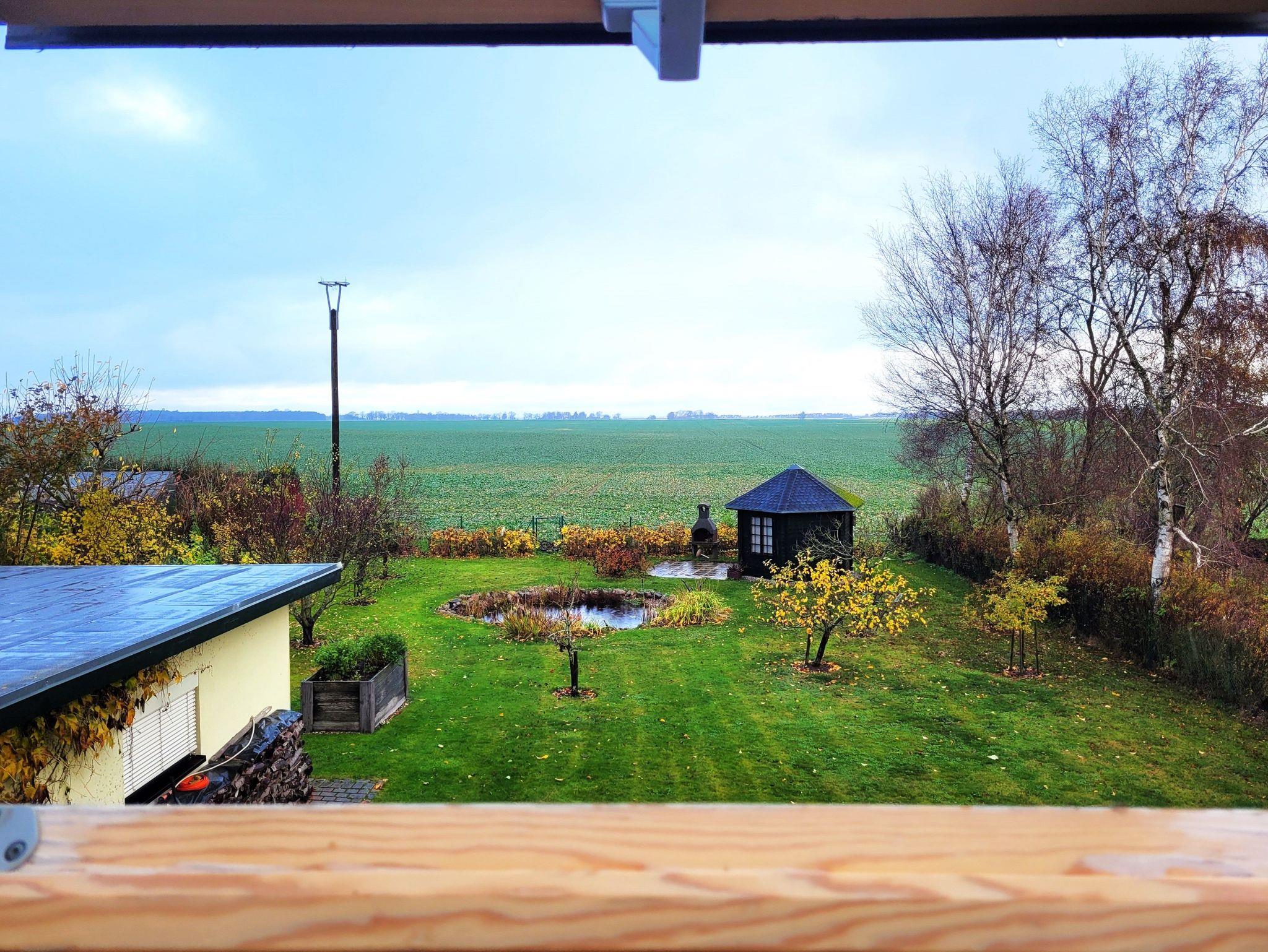 Nach Norden können Sie die Ostsee und das Naturgebiet Insel Bock sehen. Nach Süden haben sie einen Blick auf Pferde und Natur.