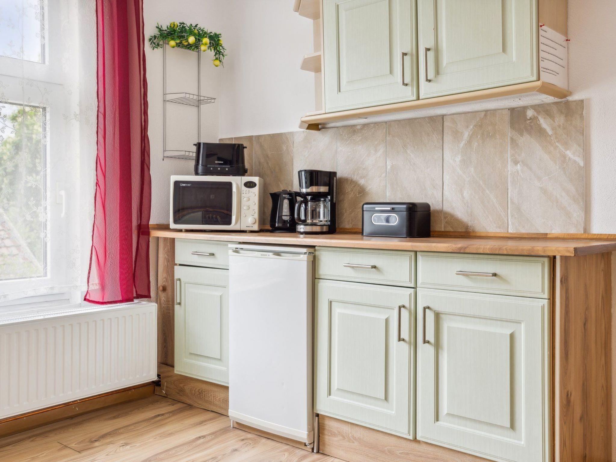 The interior leaves nothing to be desired: An inviting living room with upholstered furniture, sleeping function, flat-screen TV, radio and WiFi for relaxing evenings, a fully equipped kitchen with electric hob, ceramic hob, oven, fridge (without freezer compartment), microwave and various other kitchen appliances including a small freezer. For a good night's sleep, there is a bedroom with a double bed and tiled stove and a children's/guest room with two 90x200 cm beds. The bathroom is equipped with a shower and WC, not to mention the cosy warmth of the central heating.
