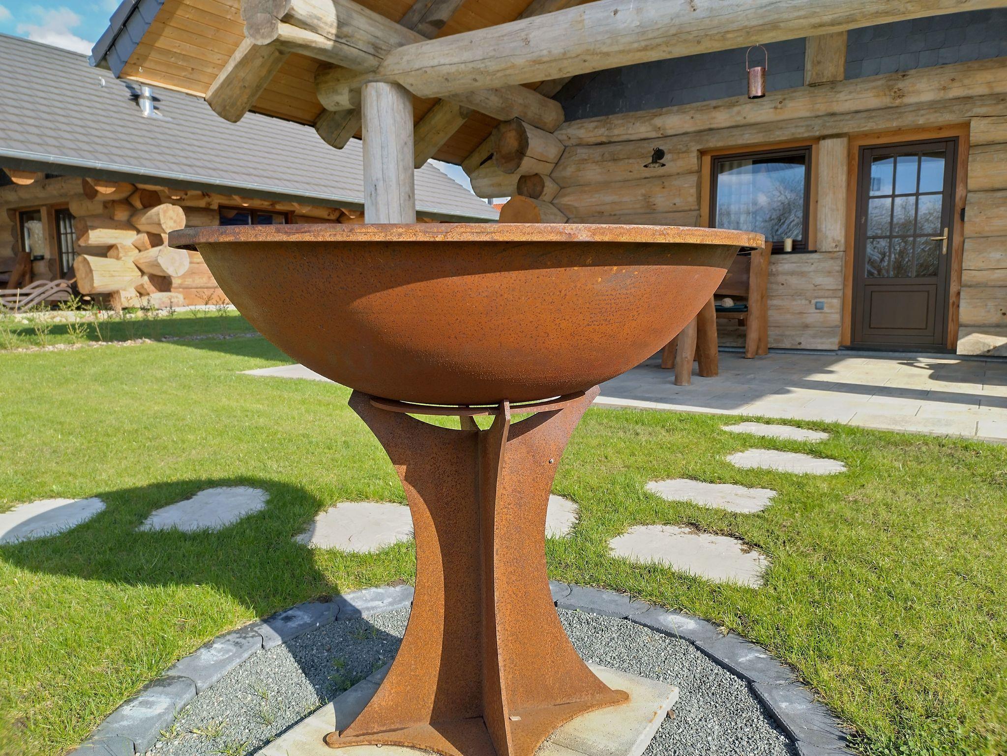 Sechs Ferienhäuser mit finnischem Saunahaus im Garten. Kaminofen, SAT Full HD TV kostenloses schnelles Internet 150 Mbit/s runden unsere Naturstamm Ferienhäuser ab.