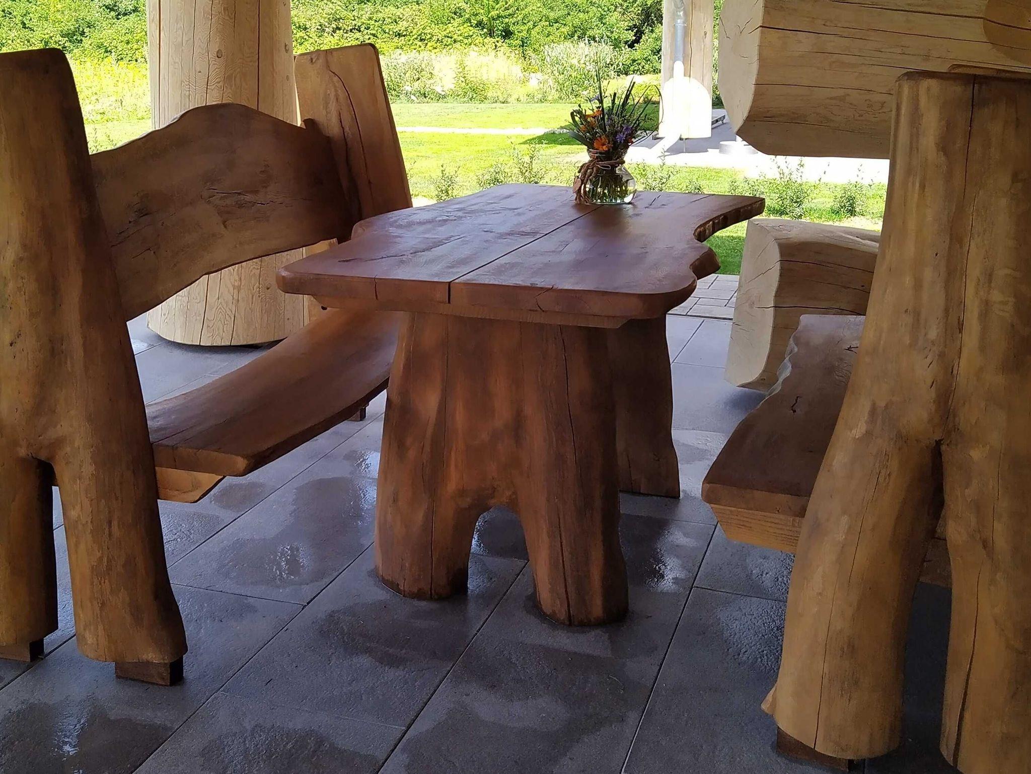 • Rustikale Eichenholz Tischgarnitur