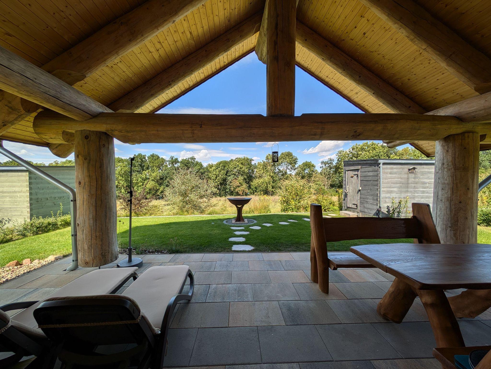 Die 30 qm² große überdachte Terrasse lädt zu jeder Jahreszeit ein. Genießen bei einem Glas Wein und leckerem Essen entspannte, romantische Momente mitten in der Natur Erholung pur!