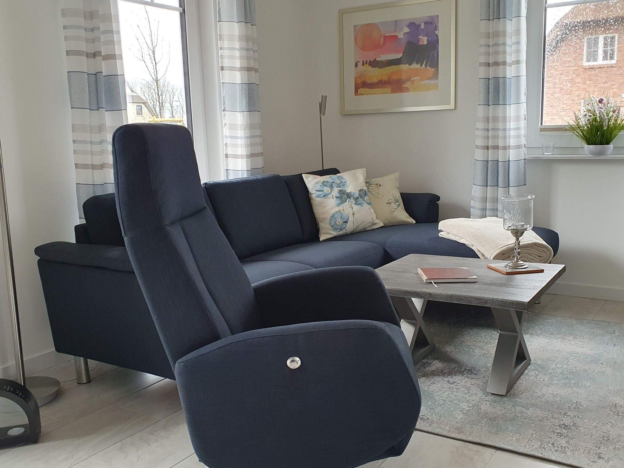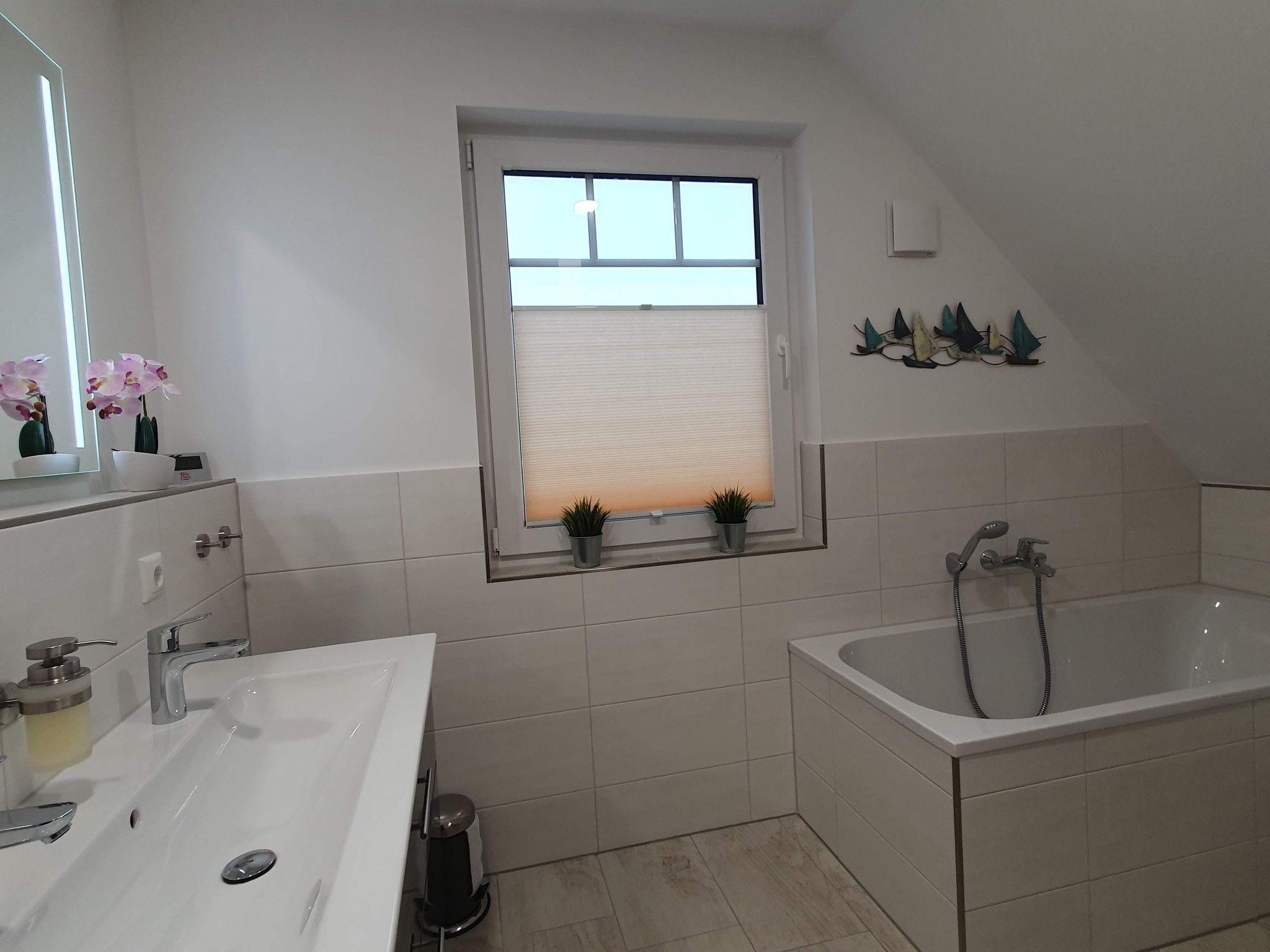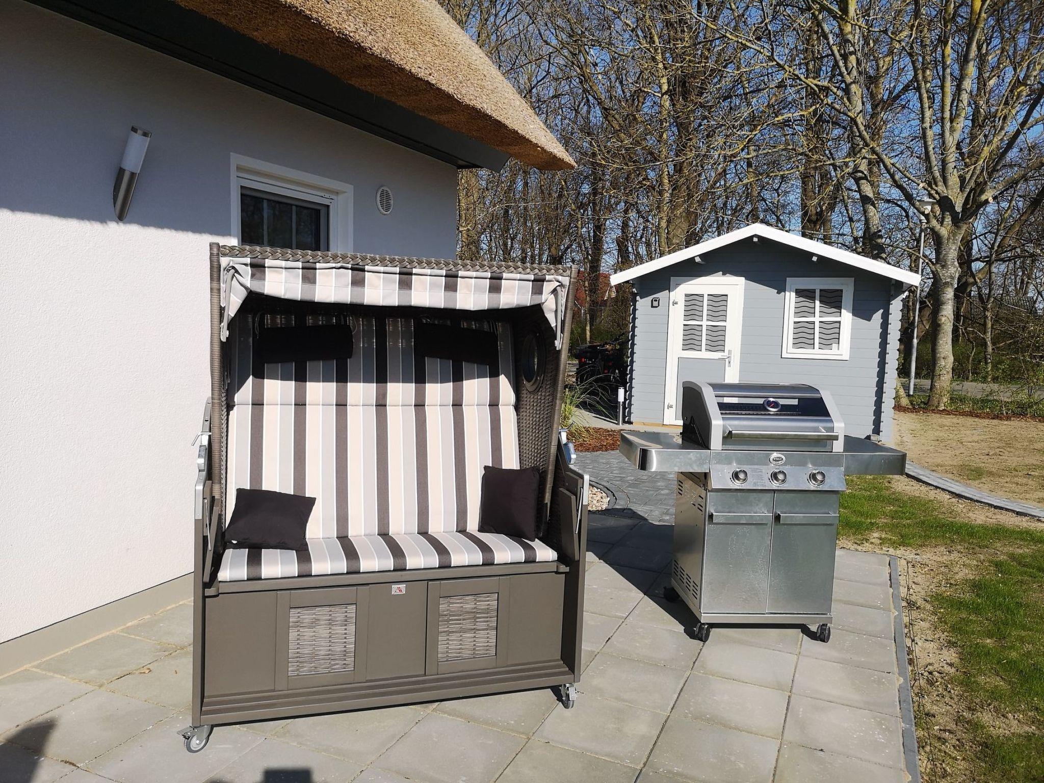 The spacious garden of approx. 600 m² (the entire property is 975 m²) is available for your exclusive use. On the spacious terrace there is a dining table with 2 benches for up to 8 people. The pivoting parasol can be placed in 2 strategic places. You also have a comfortable beach chair at your disposal. When you return to the house from exploring Rügen in the evening, you also have the option of using the gas grill for a culinary barbecue.