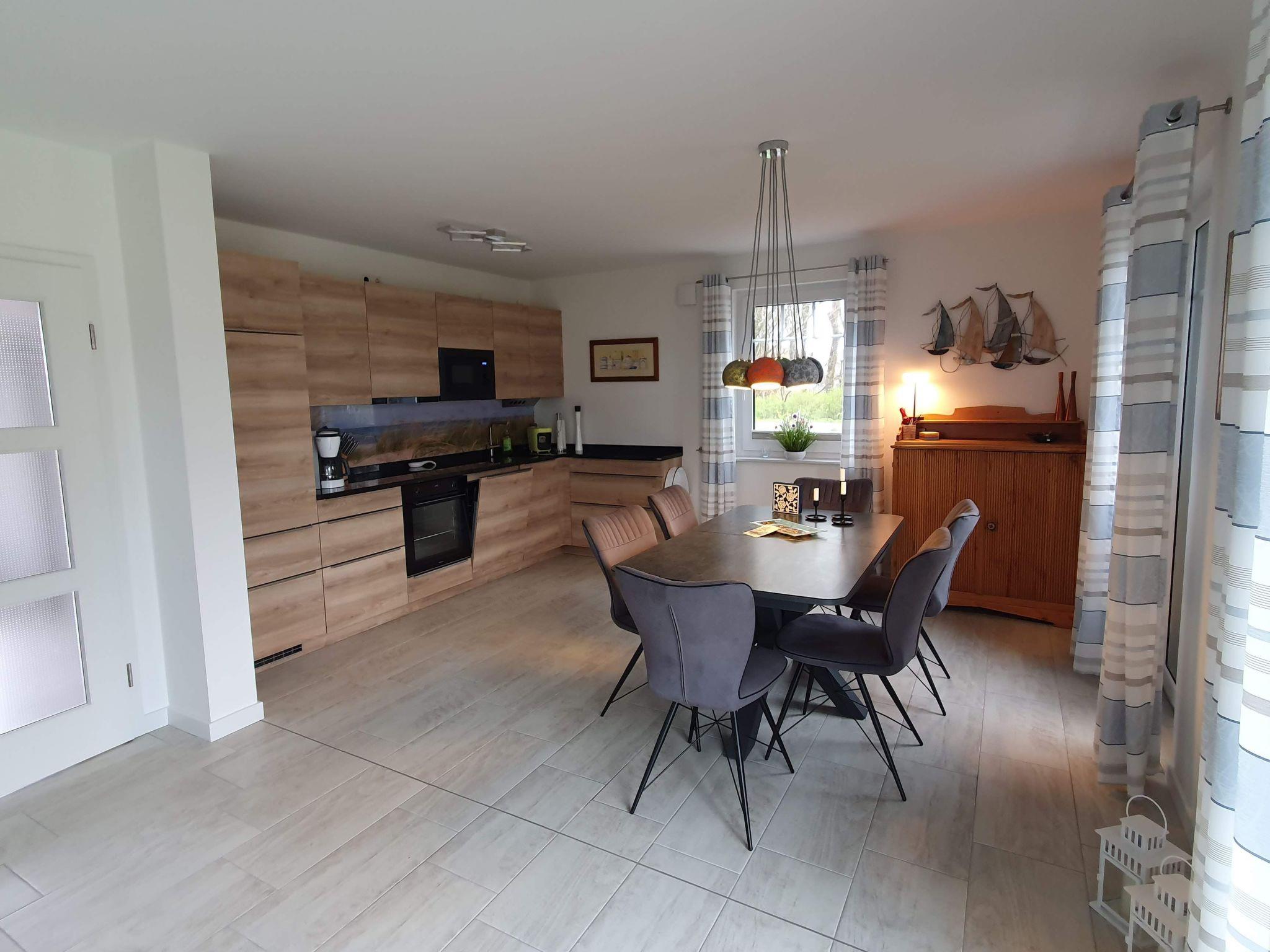Our house will be completed on April 15, 2023. The pictures shown are still sample photos and will be exchanged upon completion.Our house Hannes is located in a small and quiet vacation area in Mellnitz-Hof near Poseritz. We have put a lot of effort into the equipment to make your stay as pleasant as possible as a holidaymaker. In addition to a fully equipped fitted kitchen with ceramic hob, oven, microwave, raclette, wok pan, kettle and coffee machine, there will also be a dining table for at least 6-8 people. The living area is furnished with a comfortable couch, a relaxing armchair and a fireplace. When the weather is not so good, you can also enjoy the TV (55'' diagonal) from the couch. WiFi is of course available.2 of the 3 bedrooms are each equipped with a comfortable double bed, bedside tables, a chest of drawers and a wardrobe. All rooms are covered with our WiFi. All rooms are supplied with a TV set.On the ground floor there is a bathroom with shower and toilet and a sauna. On the upper floor you will find a bathroom with a shower, bath and toilet.