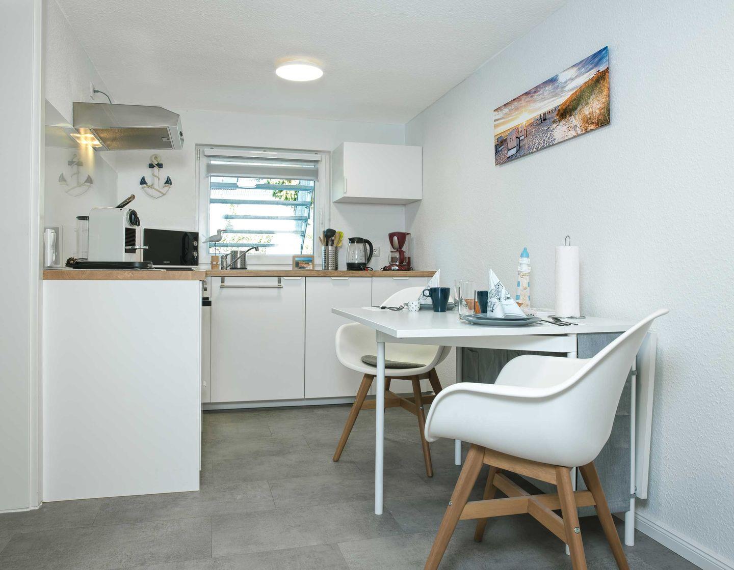 Das Wohnzimmer ist mit einem gemütliche Sofa und großen Flat TV ausgestattet. Die Küchenzeile ist umfassend ausgestattet: Ein Ceranfeld-Herd mit Backofen, Mikrowelle und Geschirrspüler, Kühlschrank mit Gefrierfach, Kaffeemaschine sowie eine Espressomaschine. Das Badezimmer ist mit einer bodengleichen Dusche ausgestattet, ein Waschbecken mit Spiegel sowie ein WC.Im Schlafzimmer finden Sie ein bequemes Bett für erholsamen Schlaf.