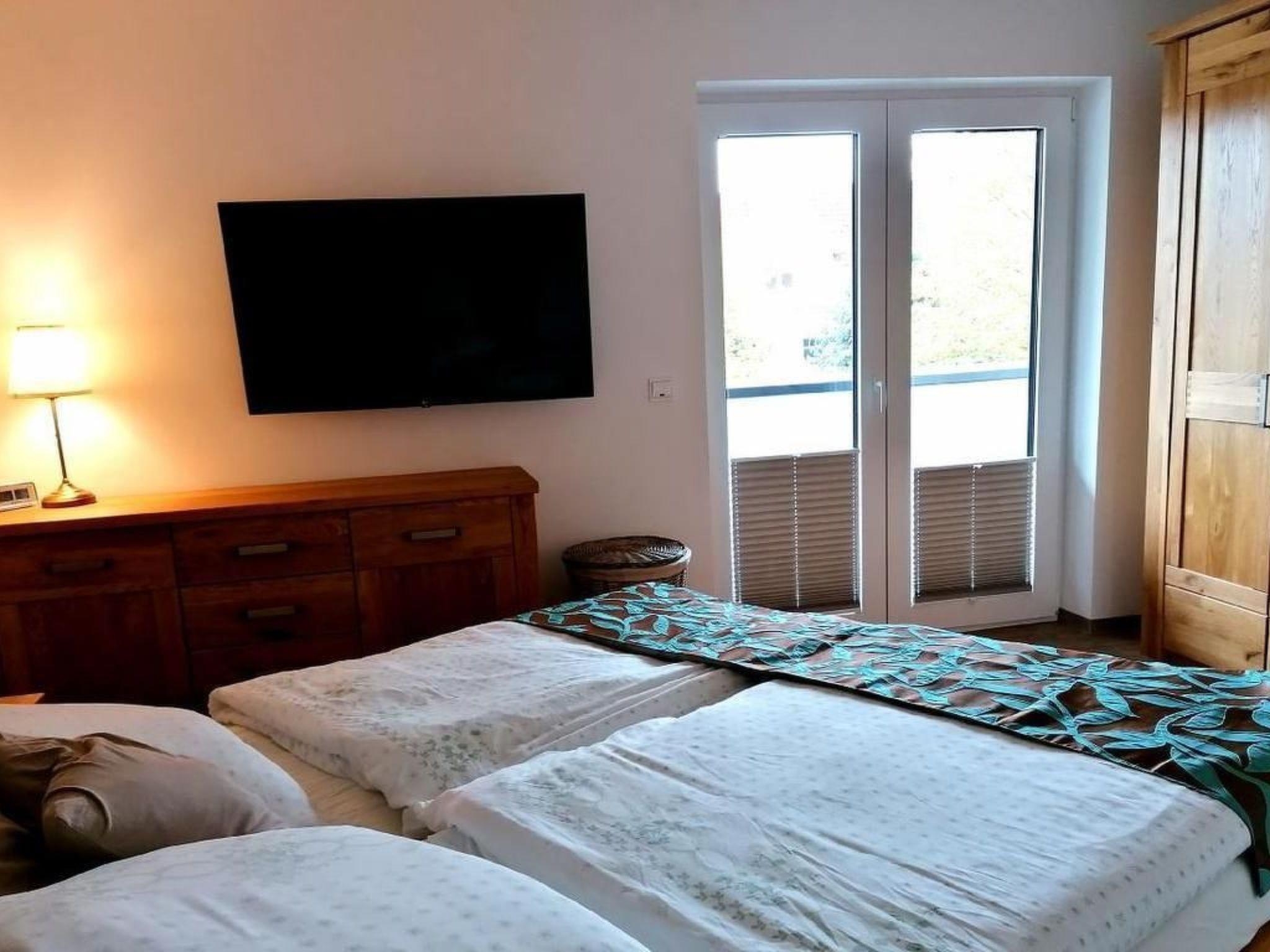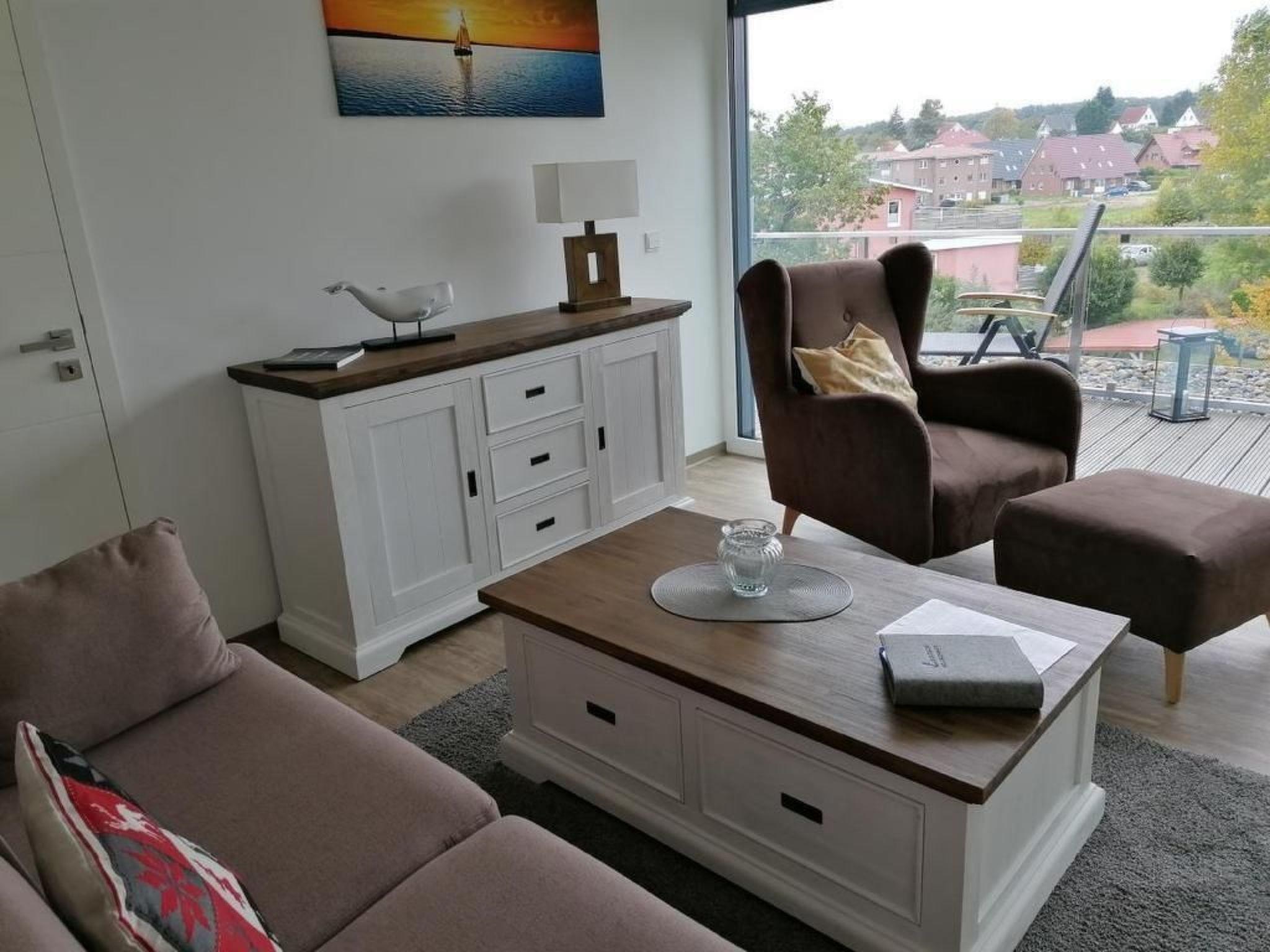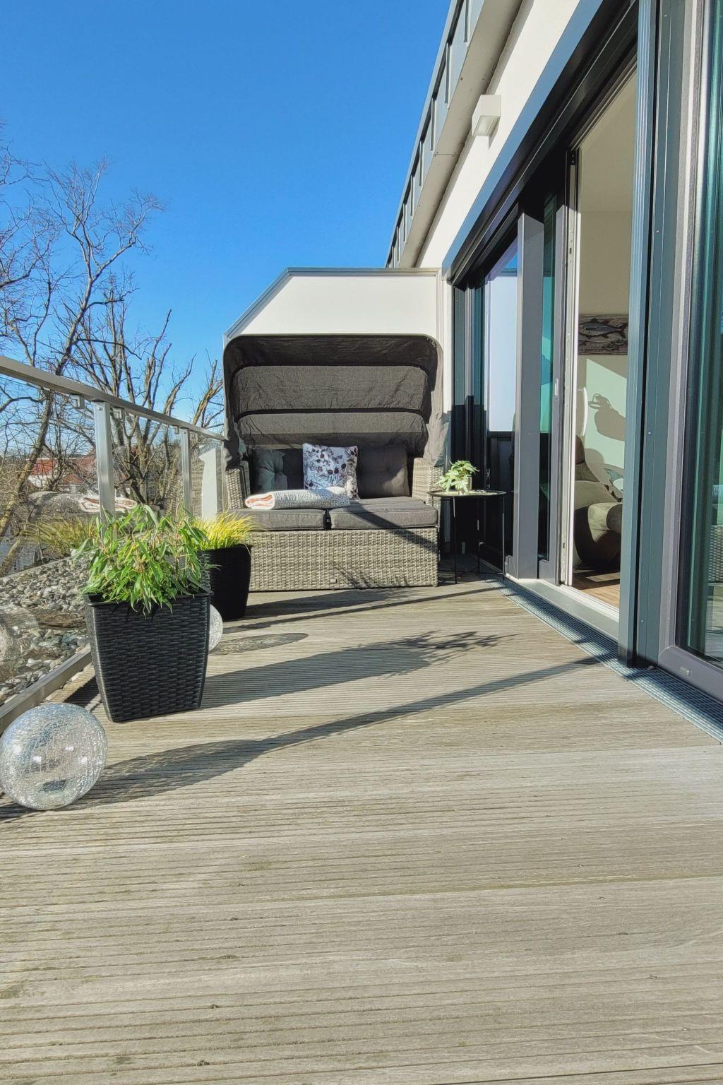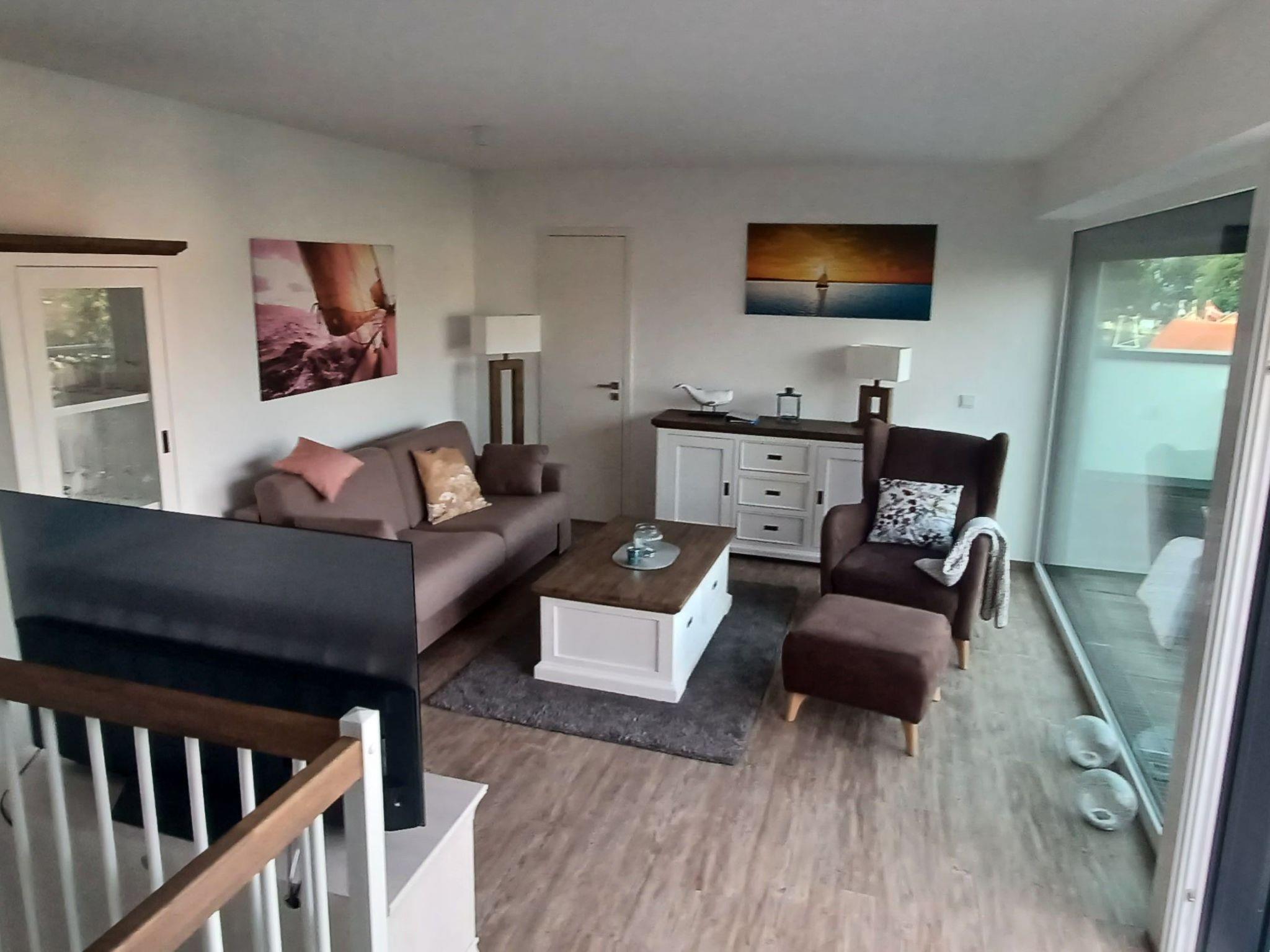 The modern residential building was built in 2018 and is located in the centre of Lauterbach, just 100 m from the harbour. high-quality and tasteful furnishings create a cosy atmosphere and offer our guests a beautiful temporary home. A special feature of the flat is the spacious eat-in kitchen with dining area and adjoining balcony. The kitchen is fully equipped and leaves nothing to be desired (Internet radio, dishwasher, oven, ceramic hob, extractor bonnet, fridge-freezer, etc.) A solid wooden staircase leads to the modern studio on the upper floor (no sloping ceilings) and to the large roof terrace. The studio invites you to relax. In the evening, thanks to the practical bed function, the couch can be transformed into a comfortable bed for the night in no time at all.the roof terrace is equipped with an outdoor couch and a cosy seating area as well as sun loungers for relaxing.from the balcony and the roof terrace you have a wonderful view over the harbour and the Bodden. The high window fronts (sliding elements) allow plenty of light to enter, and the studio and bedroom are of course equipped with a TV (55 inch) with internet connection. all the furniture in the spacious bedroom is made of light-coloured wild oak wood and exudes a friendly and cosy atmosphere. the modern bathroom has a window and a rain shower. A hairdryer is available for you.there is a passenger lift in the house and you will receive a free car parking space directly at the house.we offer our guests W-Lan free of charge. In addition, you can use a washing machine and the drying cellar.a linen package (bed linen, 2 towels per person) is included.short descriptionOther : Non-smoking houseShort description 1Number of kitchens : 1Other rooms : Dining room or kitchen/living roomLiving room 1Other living room equipment : The modern studio invites you to relax with a comfortable couch. In the evening, it can be transformed into a comfortable bed for the night in no time at all thanks to the practical bed function. A special plus point: the sofa has a real mattress for a comfortable night's sleep. The sofa is also equipped with a sturdy base frame and slatted frame. The sofa bed with bed function is perfect for a little break during the day or as a comfortable overnight accommodation for our guests.Bedroom 1Other bedroom furnishings : In the spacious bedroom, all the furniture is made of light-coloured wild oak wood and exudes a friendly and cosy atmosphere. An additional television with internet connection is also available here.Kitchen 1Other kitchen equipment : The kitchen is fully equipped and leaves nothing to be desired (internet radio, dishwasher, oven, ceramic hob, extractor bonnet, fridge-freezer, etc ). SurroundingsLeisure facilities : Boat rentalSports facilities in the area : Fishing, cycling, sailingSurroundings 1Excursions : Lauterbach has a harbour and a connection to the railway network of both the standard gauge and the Rügen Bäderbahn, and passenger ships also leave from the harbour. An important tourist destination is the island of Vilm, not far from Lauterbach.place description : Lauterbach is a district of the town of Putbus on the largest German Baltic Sea island of Rügen. The village is located southeast of Putbus on the Greifswalder Bodden.Garden and outdoor facilitiesRecreational facilities at the property : PlaygroundServices 1Other : Lauterbach has a harbour and a connection to the railway network of both the standard gauge and the Rügen Bäderbahn.Lauterbach has various catering establishments. The harbour, which is also used as a marina, is important for the local economy. Passenger ships also leave from the harbour. The island of Vilm, not far from Lauterbach, is an important tourist destination and shopping facilities are within walking distance (300 metres).