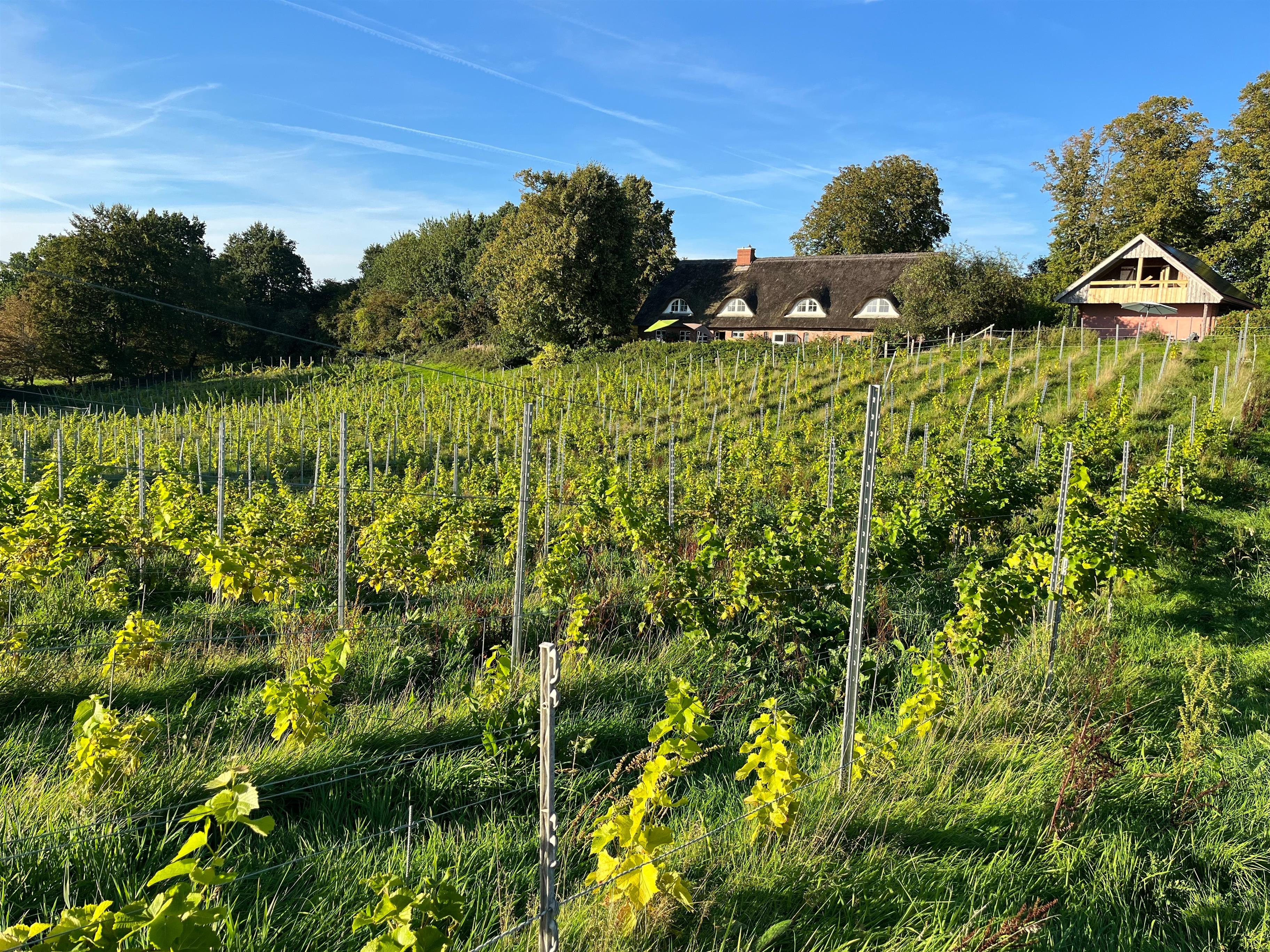 Die stilvolle und sehr behagliche 4 Sterne Ferienwohnung für 2 Erwachsene und 1-2 Kinder unter Reet in altem Gemäuer in Alleinlage zwischen Groß Wittensee und Haby im Naturpark Hüttener Berge erwartet Sie. Genießen Sie das Frühstück auf der eigenen Terrasse mit Friesenwall und herrlichem Ausblick auf die jungen Weinreben und Wiesen.