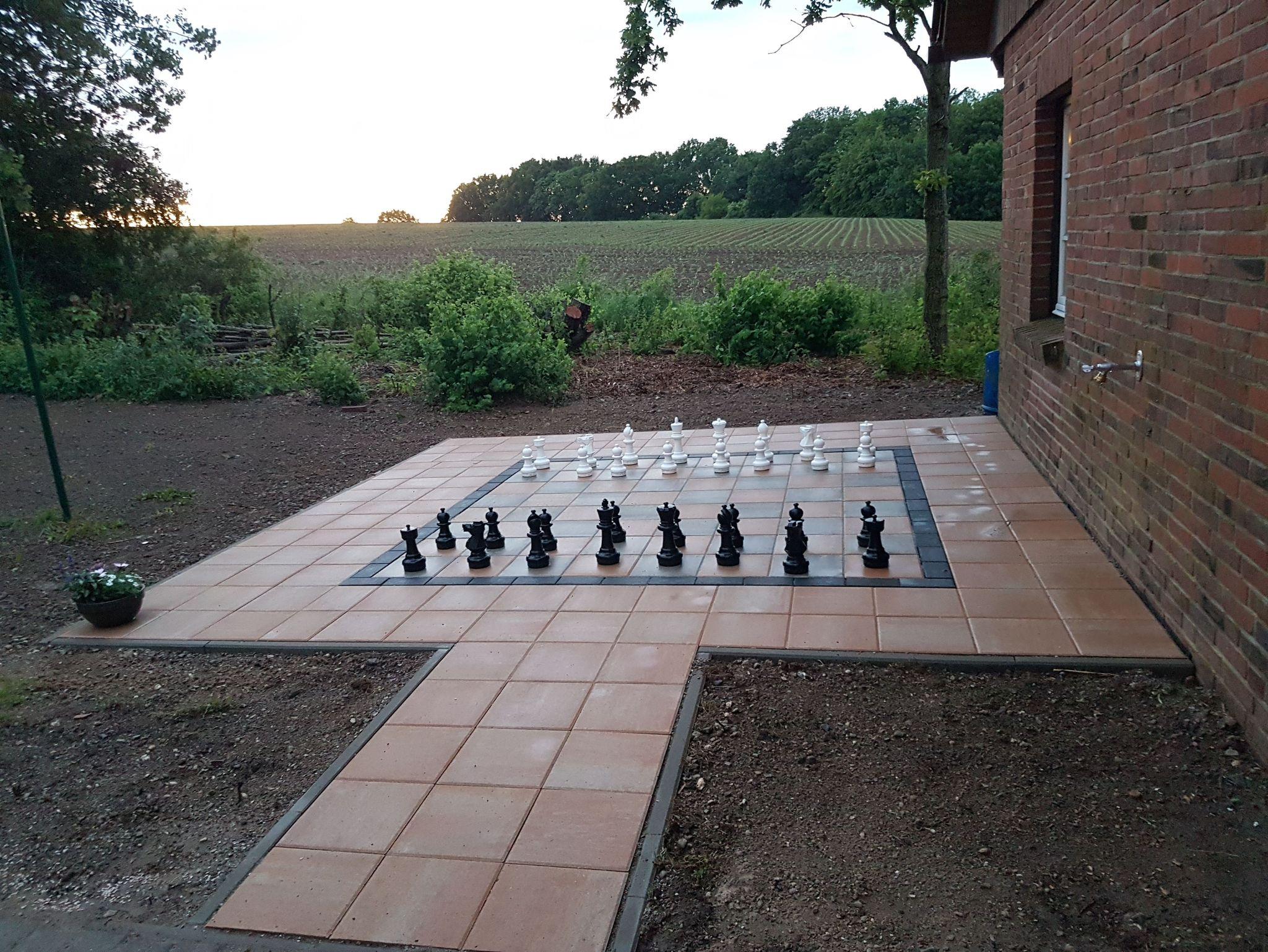 Die neue Terrasse im Außenbereich bietet die Möglichkeit, im Freien zu entspannen, das Frühstück oder einen Grillabend zu genießen oder eine Partie Schach zu spielen. Kids haben darüber hinaus die Möglichkeit, sich auf einer großen Rasenfläche auszutoben.