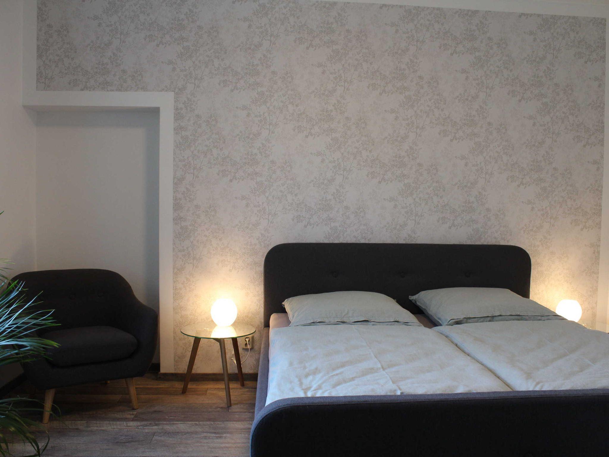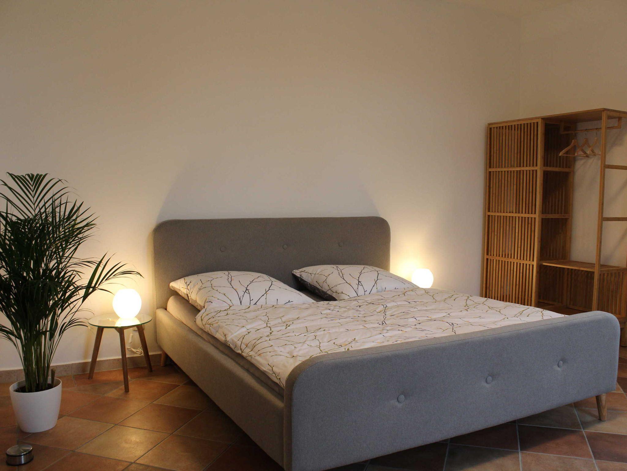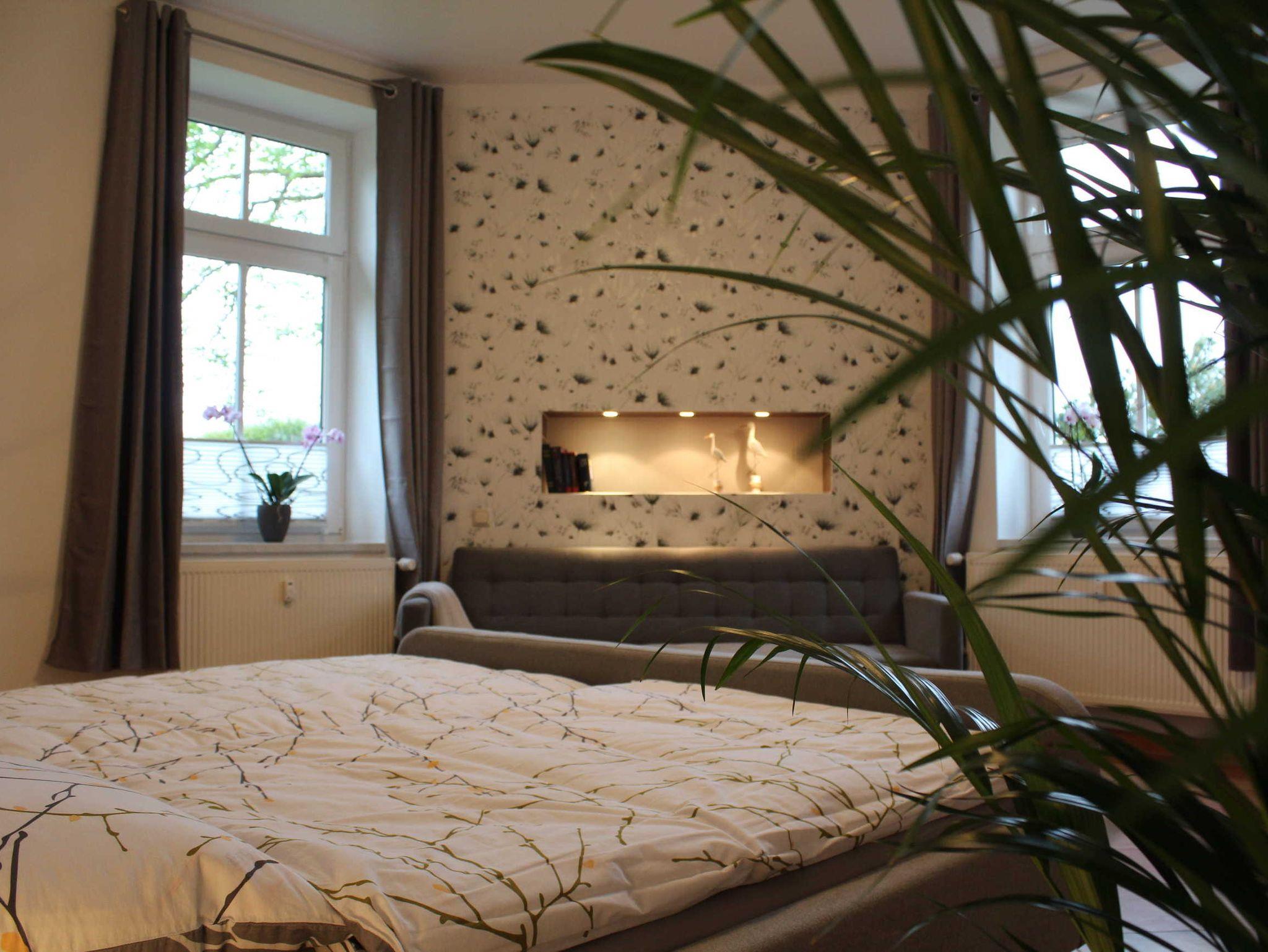 Die geräumige Erdgeschosswohnung - größtenteils mit Fußbodenheizung und hochwertigen Fliesen ausgestattet - wurde 2020 komplett modernisiert. Vom Herzstück der Ferienwohnung, der großzügigen Wohnküche mit Flat-TV gelangen Sie in die drei stilvoll eingerichteten Schlafzimmer, jeweils mit Doppelbett und einer Schlafcouch ausgestattet. In jedem der Schlafräume besteht daher die Möglichkeit zur Aufbettung für eine Person. Von den drei Schlafräumen sind zwei durch eine Durchgangstür verbunden. Bei Nutzung aller Schlafräume ist daher einer ein Durchgangszimmer.