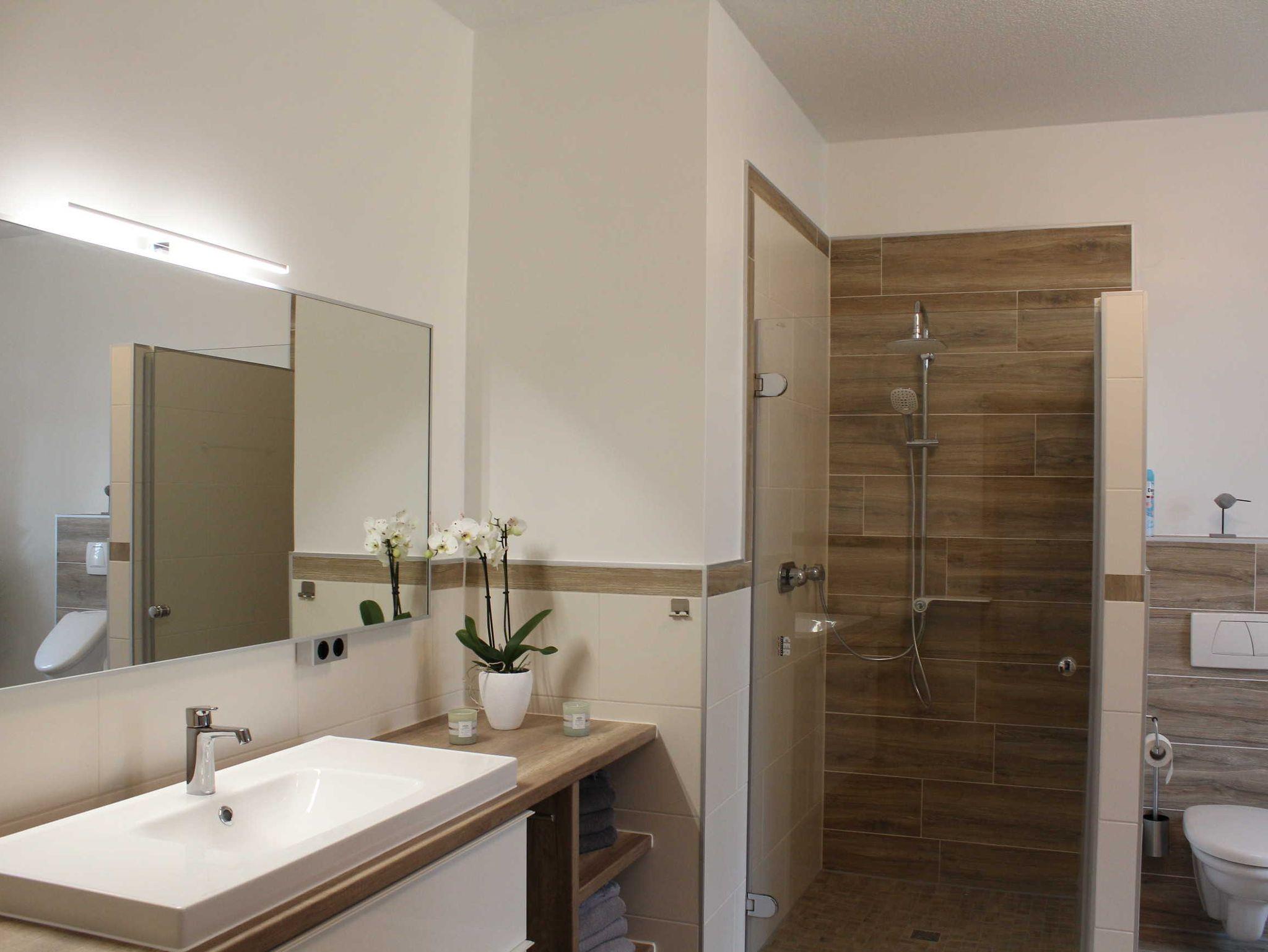 Des Weiteren verfügt die Wohnung über ein helles großzügiges Duschbad und ein zusätzliches Gäste-WC.