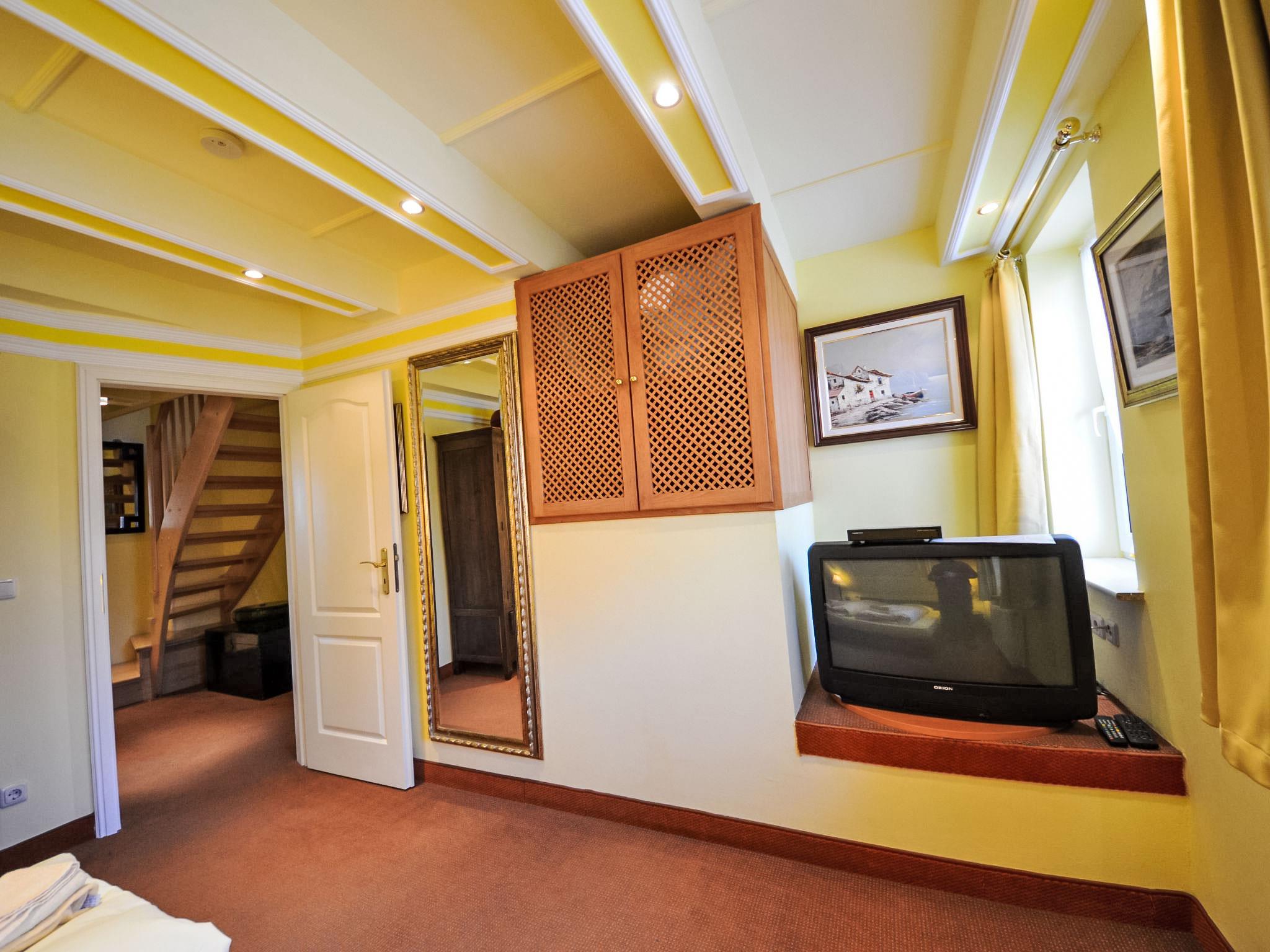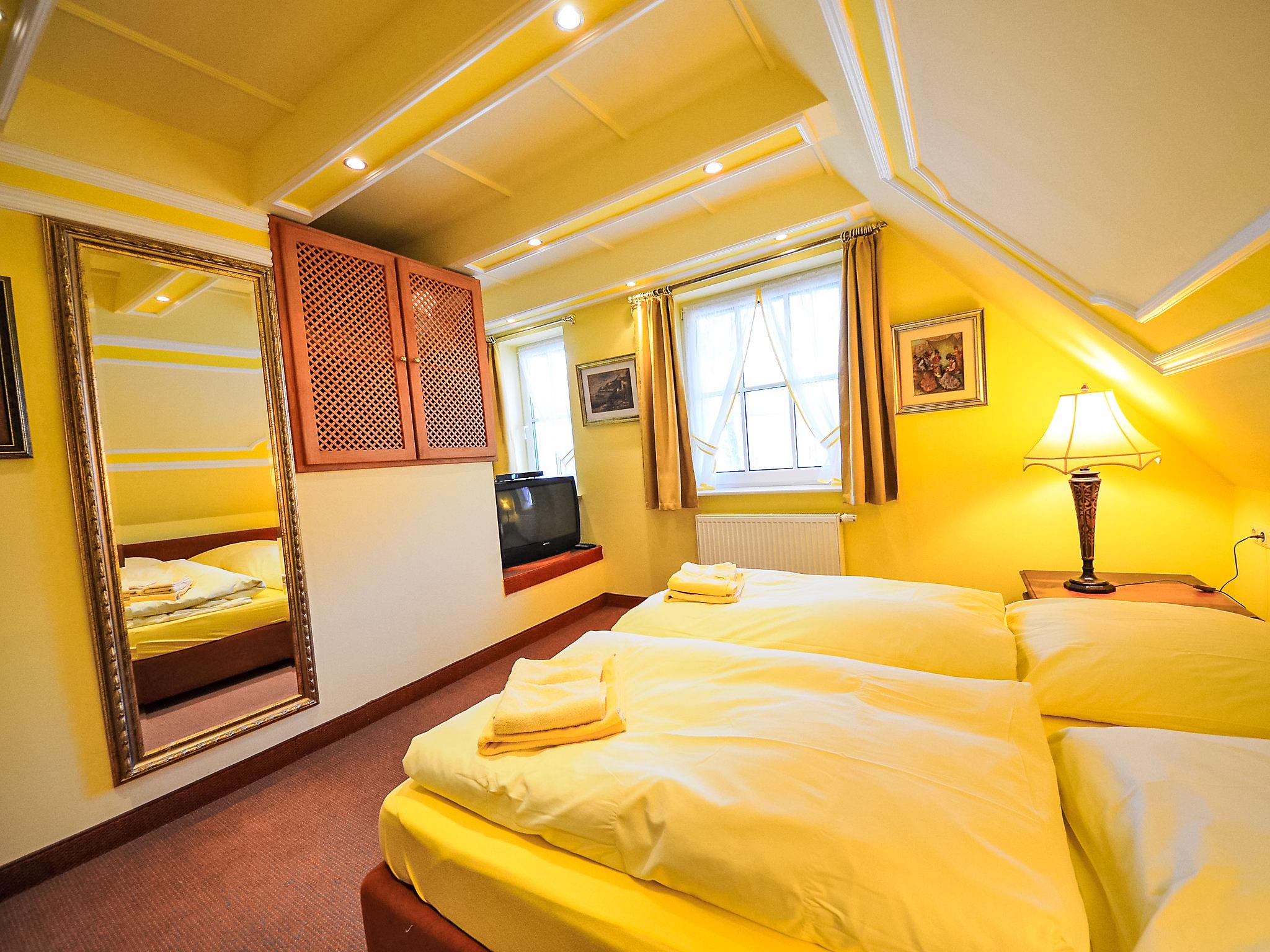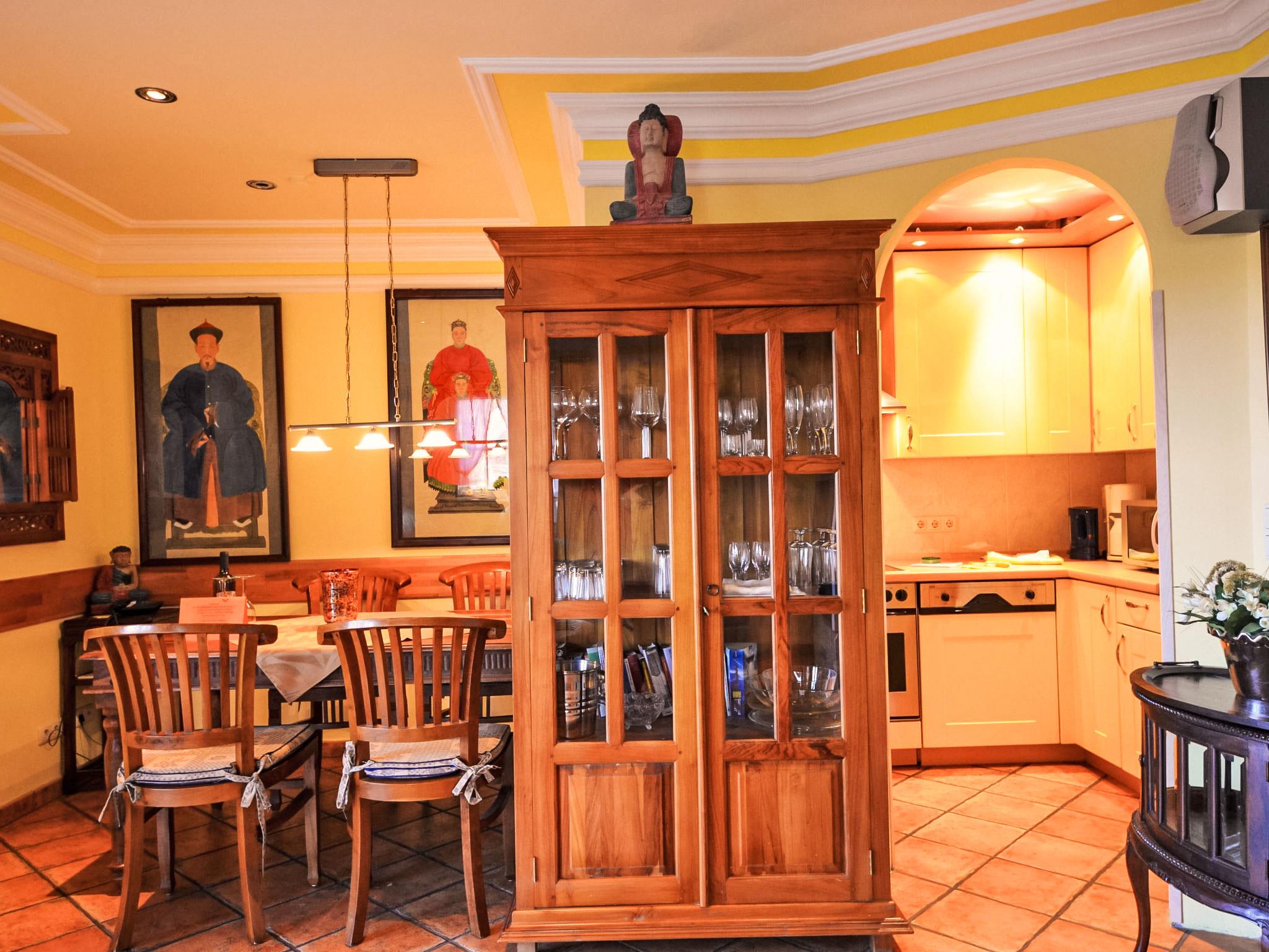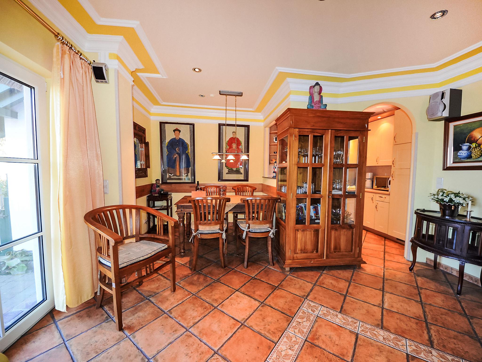 "Kirchhaus", 4-room terraced house 78 m2 on 3 levels, on the ground floor. Living/dining room with satellite TV, video, CD-player and hi-fi system. Open kitchen (oven, dishwasher, microwave, electric coffee machine). Shower/WC. Upper floor: 1 double bedroom. Shower/WC. Top floor: 1 room with sloping ceilings with 1 bed. 1 double bedroom with sloping ceilings. Terrace, garden. Terrace furniture. Facilities: washing machine, dryer, children's high chair. Internet (WiFi, free). Please note: non-smoking house. Maximum 1 pet/ dog allowed. There is 1 free parking space. On request pre ordering of another parking space at a cost of 4.00 euro per day.