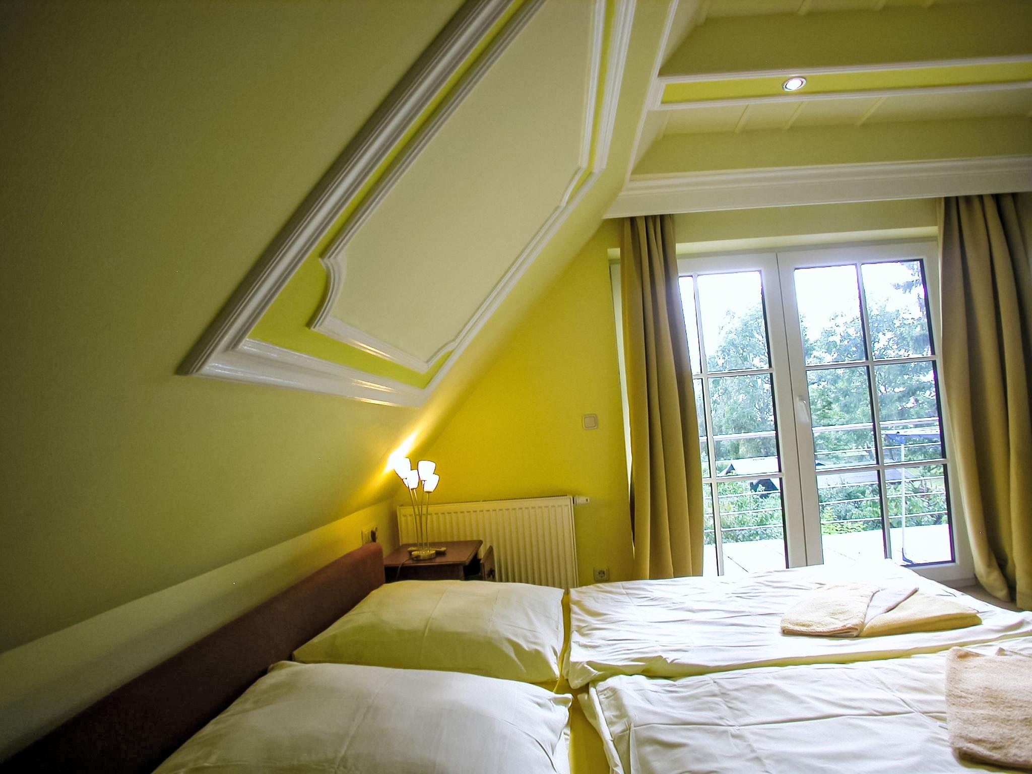 "Moosbeere", 4-room terraced house 82 m2 on 3 levels, on the ground floor. Living/dining room with satellite TV, video, CD-player and hi-fi system. Open kitchen (oven, dishwasher, microwave, electric coffee machine). Shower/WC. Upper floor: 1 double bedroom. Exit to the balcony. Shower/WC. Top floor: 1 room with sloping ceilings with 1 bed. 1 double bedroom with sloping ceilings. Terrace, garden. Terrace furniture. Facilities: washing machine, dryer, children's high chair. Internet (WiFi, free). Please note: non-smoking house. Maximum 1 pet/ dog allowed. There is 1 free parking space. On request pre ordering of another parking space at a cost of 4.00 euro per day.