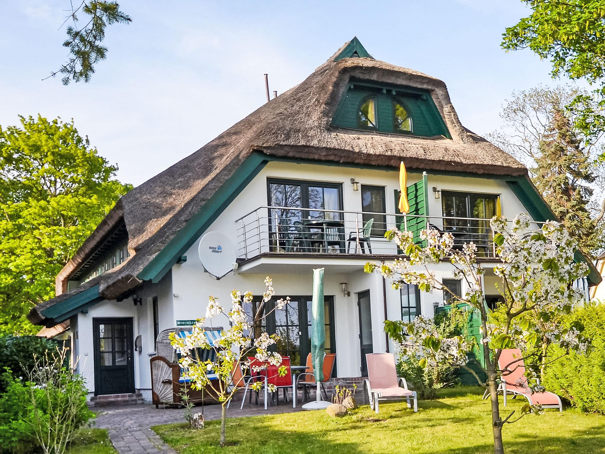 Terraced house. On the outskirts, 500 m from the sea, 2 km from the beach. For shared use: patio, fireplace. In the house: central heating system. Parking at the house. Grocery 800 m, restaurant, bus stop 500 m, railway station 20 km, sandy beach 2 km, outdoor swimming pool 13 km, indoor swimming pool 13 km, swimming bay 2 km. Golf course (18 hole) 30 km, riding stable 5 km. All seven reeded terraced houses have a high-quality and perfectly matching interior. Each house has a 109 cm (minimum) TV in the living/dining room and a second Sat-TV (72 cm) in one of the bedrooms. Cycles for hire. charcoal barbecue not allowed at the house for fire safety reasons.