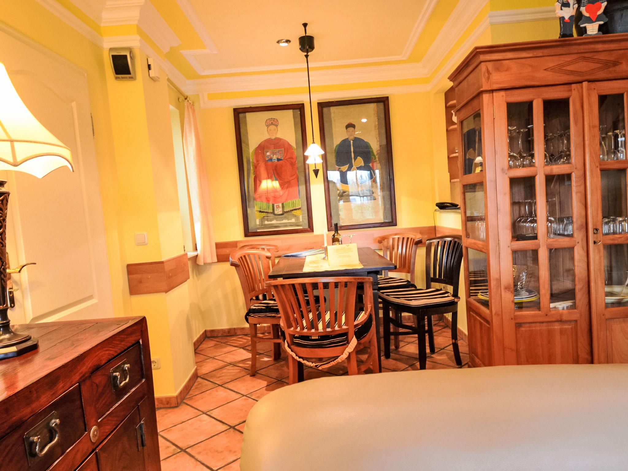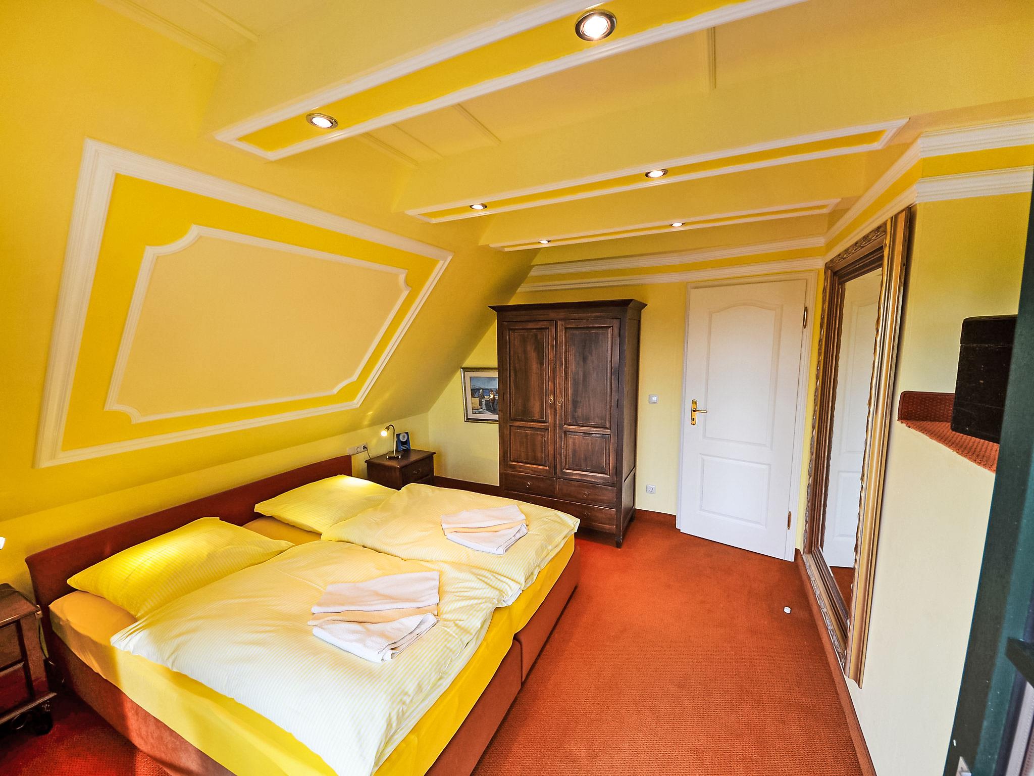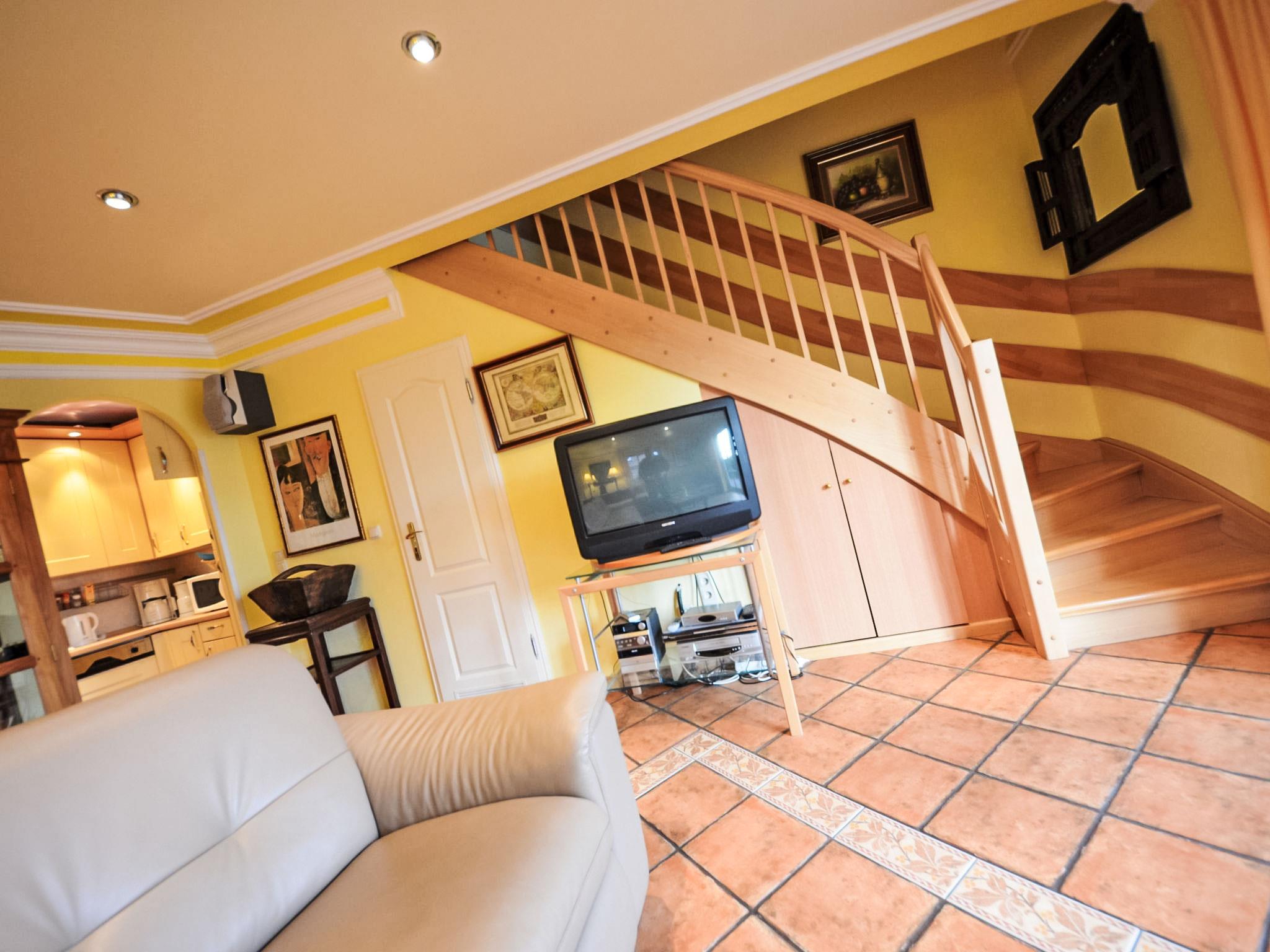 "Sturmhaube", 4-room terraced house 82 m2 on 3 levels, on the ground floor. Living/dining room with satellite TV, video, CD-player and hi-fi system. Open kitchen (oven, dishwasher, microwave, electric coffee machine). Shower/WC. Upper floor: 1 double bedroom. Exit to the balcony. Shower/WC. Top floor: 1 room with sloping ceilings with 1 bed. 1 double bedroom with sloping ceilings. Terrace, garden. Terrace furniture. Facilities: washing machine, dryer, children's high chair. Internet (WiFi, free). Please note: non-smoking house. Maximum 1 pet/ dog allowed. There is 1 free parking space. On request pre ordering of another parking space at a cost of 4.00 euro per day.