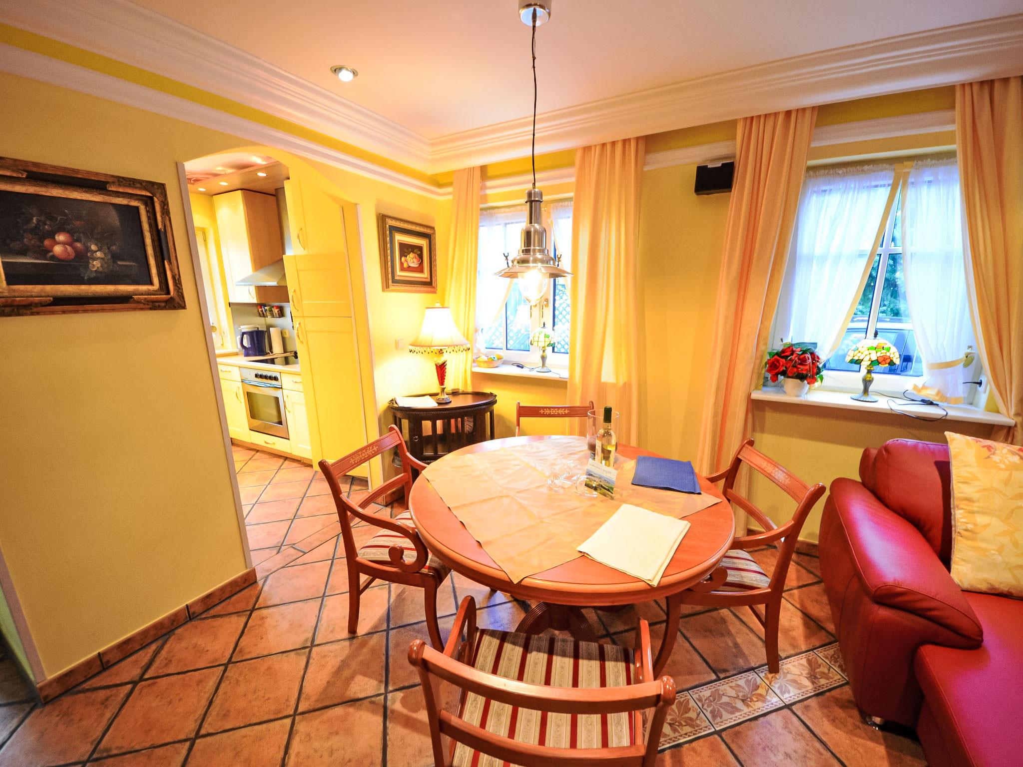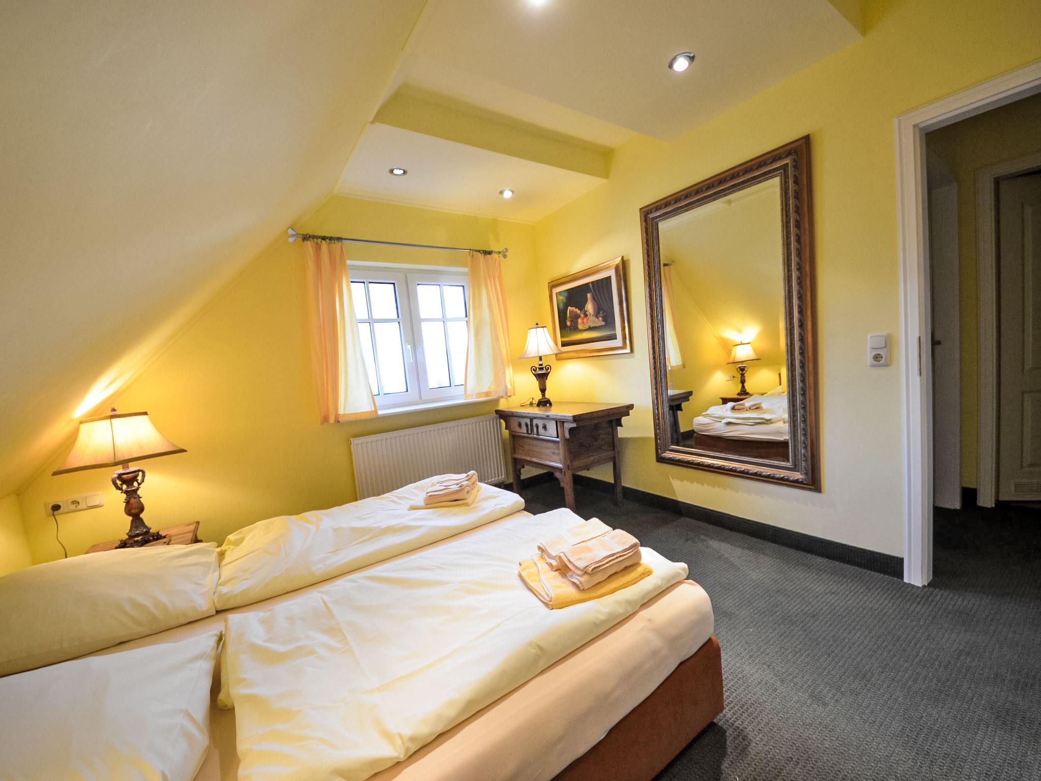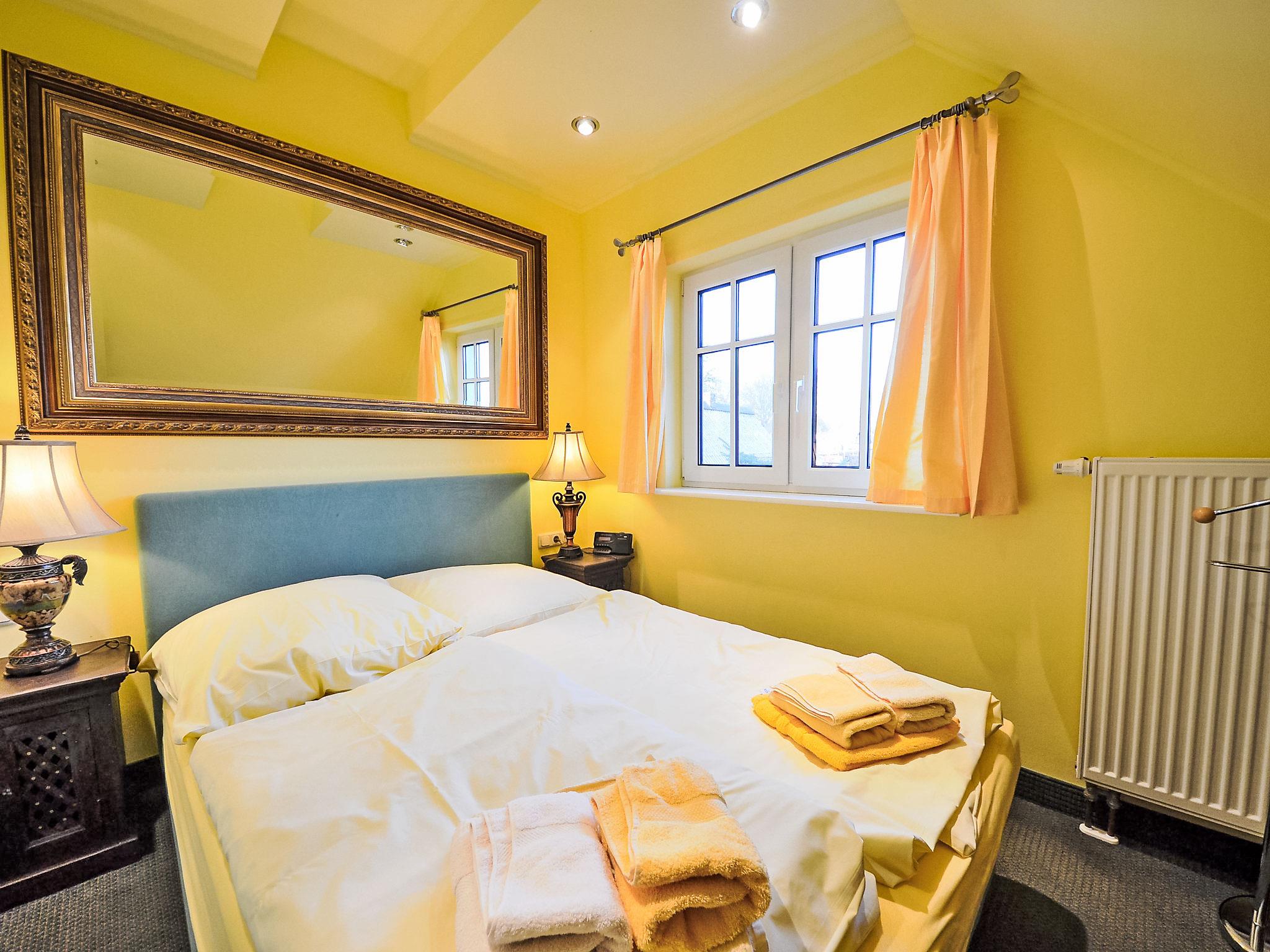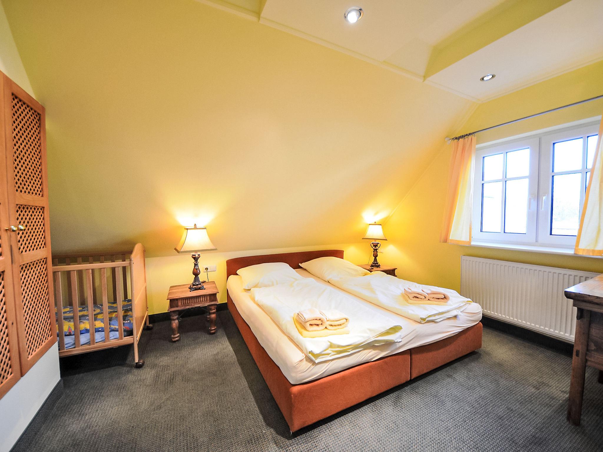 "Lotsenhaus", 3-room terraced house 67 m2 on 2 levels, on the ground floor. Living/dining room with satellite TV, video, CD-player and hi-fi system. Open kitchen (oven, dishwasher, microwave, electric coffee machine). Sep. WC. Upper floor: 2 double bedrooms with sloping ceilings. Bath/shower/WC. Terrace. Terrace furniture. Facilities: washing machine, dryer, children's high chair. Internet (WiFi, free). Parking (1 car) at the house. Please note: non-smoking house. Maximum 1 pet/ dog allowed. One free parking space available. Additional parking spaces can be provided at a price of EUR 4.00 / day at a distance of 300 m, on request and after pre-order.