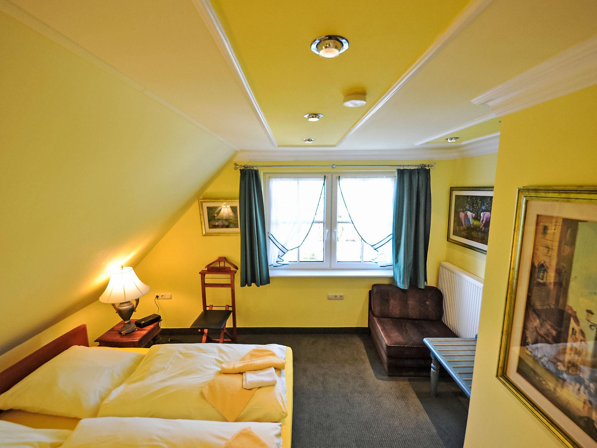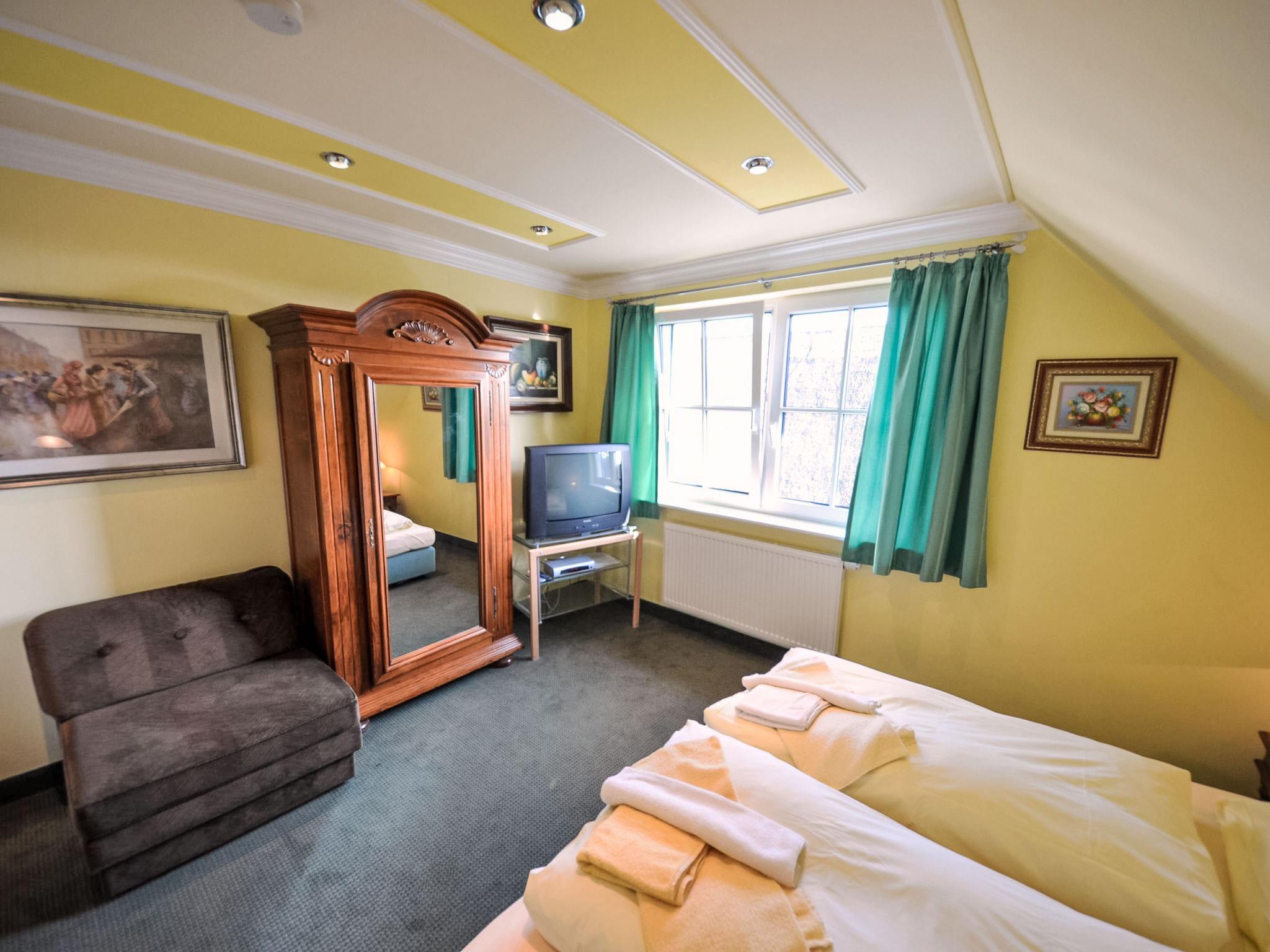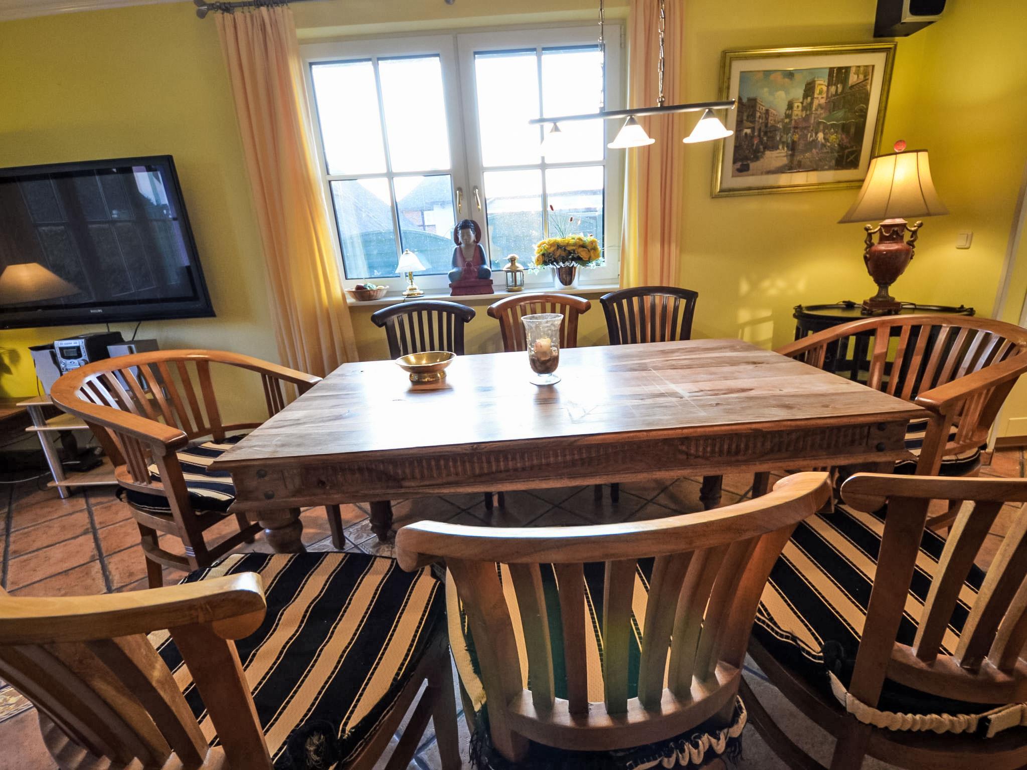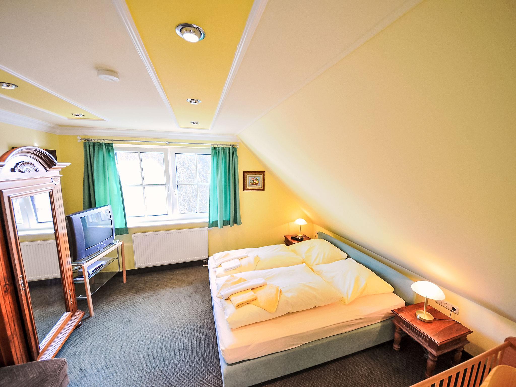 "Seeadler", 6-room semi-detached house 103 m2 on 3 levels, on the ground floor. Living/dining room with satellite TV, video, CD-player and hi-fi system. 1 small double bedroom. Open kitchen (oven, dishwasher, microwave, electric coffee machine). Shower/WC. Upper floor: 2 double bedrooms. Bath/shower/WC. Top floor: 2 small children's rooms with sloping ceilings, each room with 1 bed. Terrace, small garden. Terrace furniture, barbecue. Facilities: washing machine, dryer, children's high chair. Internet (WiFi, free). Parking (2 cars) at the house. Please note: non-smoking house. Maximum 1 pet/ dog allowed. Smoke alarm. The TV screen in the living / dining room is 120 cm tall. Two free parking spaces available. Additional parking spaces can be provided at a price of EUR 4.00 / day at a distance of 300 m, on request and after pre-order.