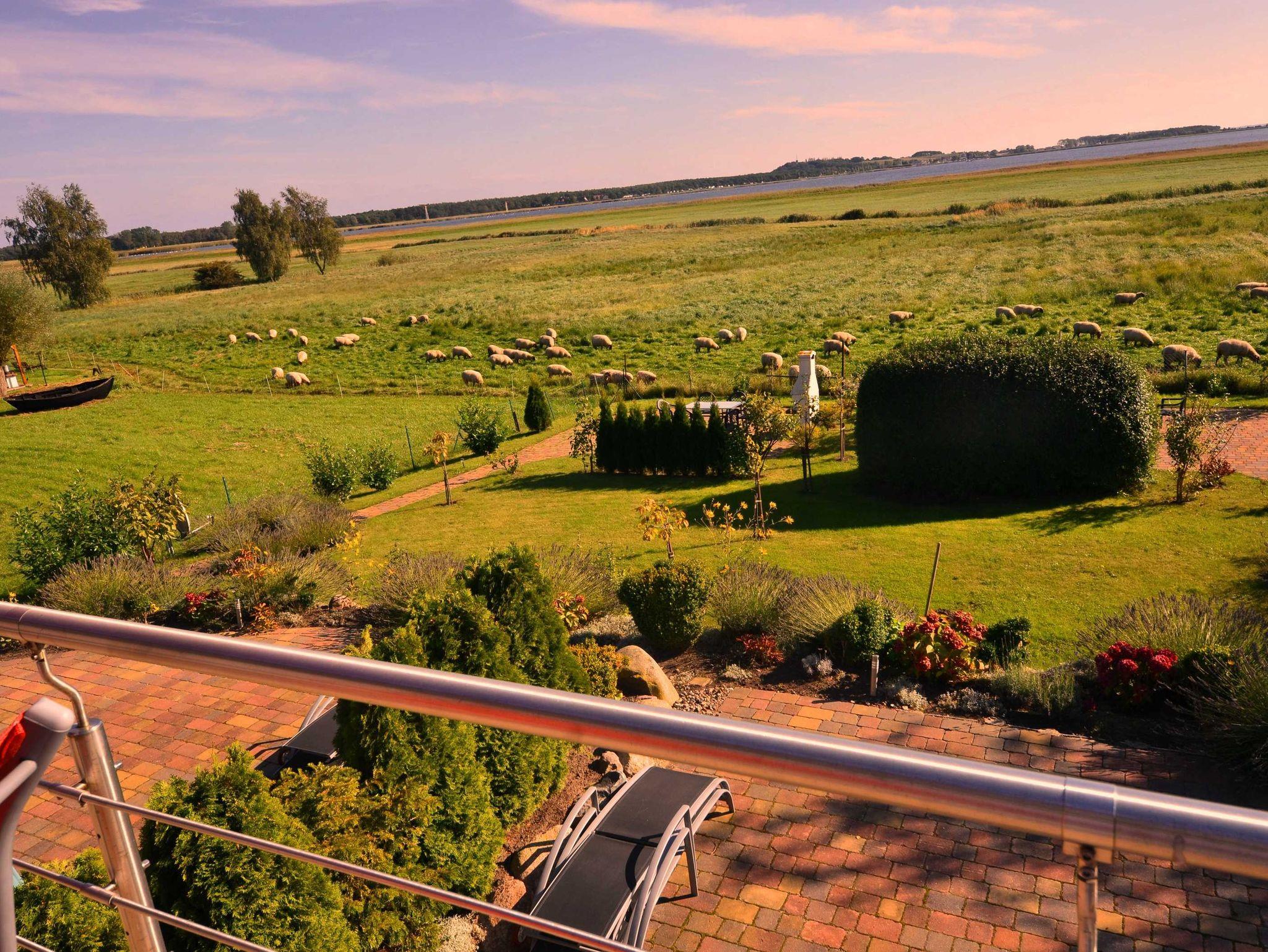Das Haus wurde 2008 errichtet liegt am Hang mit je einer Wohnungen und einem Hausteil in bester Lage, mit fantastischem Ausblick über die Bucht auf den Mini-Hafen von Groß Zicker, die Ostsee und bis nach Thissow.