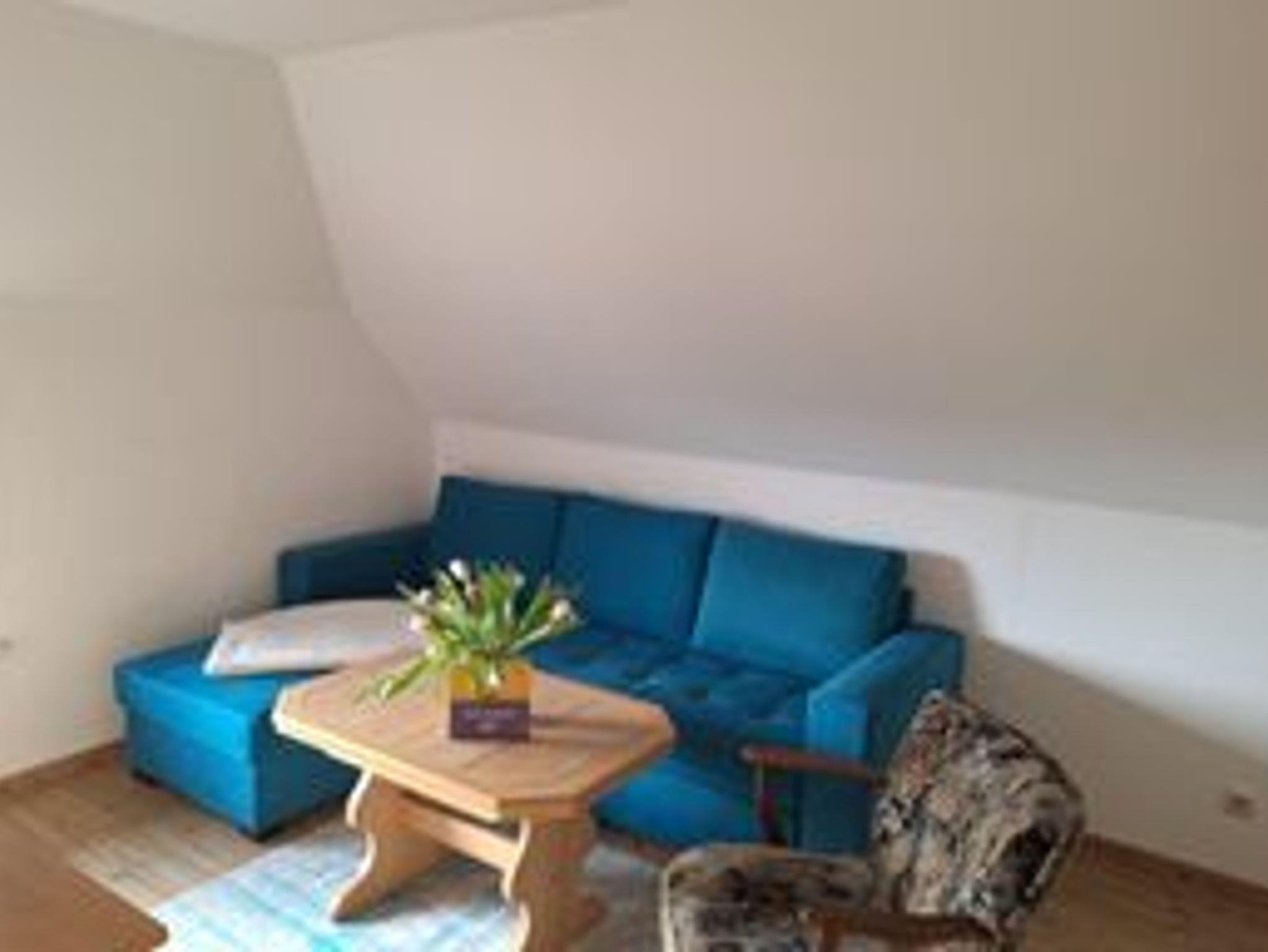 Unsere Ferienwohnung in der oberen Etage im reetgedeckten Haus besteht aus einem Wohnraum mit Sat-TV, einem Schlafraum, einer Küche sowie Bad mit Dusche und WC und einem separaten Eingang. In der Einbauküche sind ein 2- Platten Herd, Spüle, Kühlschrank sowie Kaffeemaschine, Toaster und Wasserkocher. Zu der Wohnung gehört ein Platz mit Sitzgruppe im Garten. Autostellplätze und Grillmöglichkeiten befinden sich auf dem Grundstück.