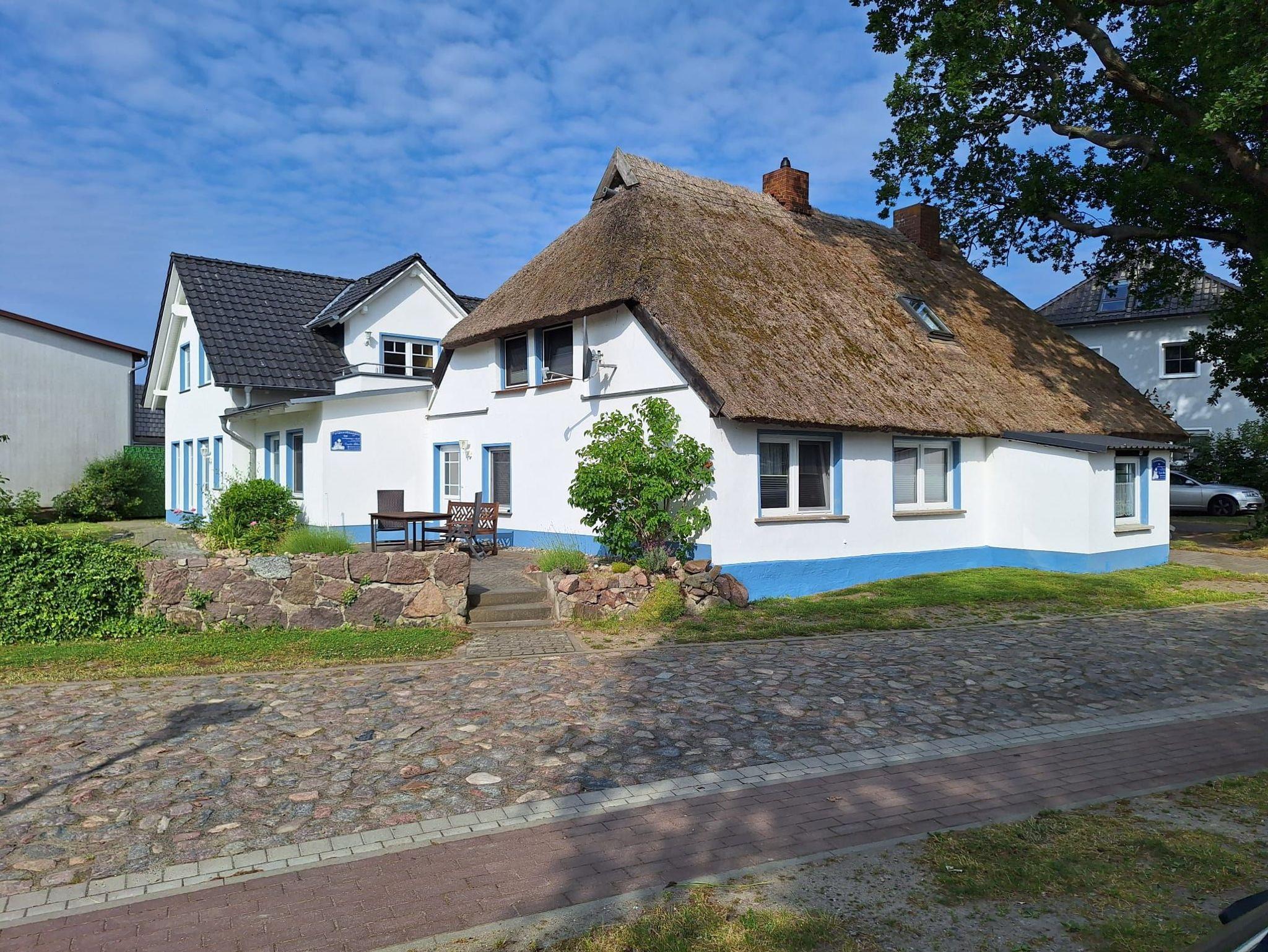 Wir bieten Ihnen in der oberen Etage des reetgedeckten Fischerhauses eine ca. 40m² große Ferienwohnung und ein Apartement (40m²) sowie im neuen Haus eine Ferienwohnung mit Terrasse und eine mit Balkon. (beide ca. 40m² groß ).
