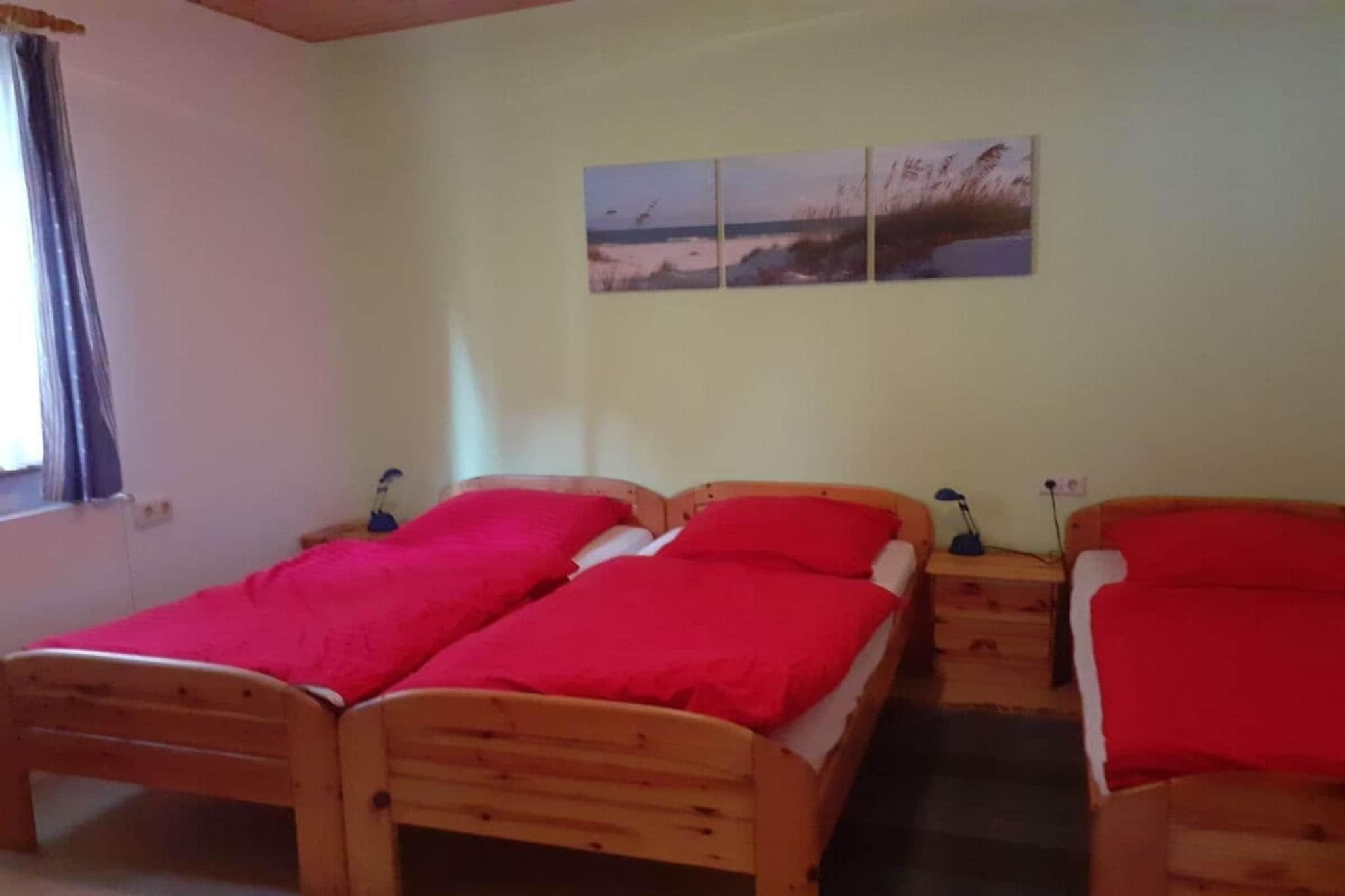 Das Feriendorf Bad Hundertpfund liegt idyllisch, sonnig und ruhig mitten im Wald. Wir verfügen über verschiedene Häuser unterschiedlicher Größe (eines davon behindertengerecht), bestens geeignet für Familie und Gruppen (siehe auch Inserat Nr. 16467). Der Ferienhaus Typ C ist ein großzügig, modern und komfortabel ausgestattetes Ferienhaus für 1-10 Personen, 110qm, 3 Schlafzimmer, voll ausgestattete Küche, Bad mit Dusche/WC, eines auch mit Badewanne, sep. WC, großes gemütliches Wohn-Esszimmer mit Kaminofen, großer Aussichtsbalkon, TV-Sat, Gas-Zentralheizung (Gas und Strom werden nach Verbrauch berechnet), Kinderausstattung, Haustiere auf Anfrage, großer Lagerfeuerplatz, Grill- und Sitzmöglichkeiten auf der Spielwiese, Waschmaschine und Trockner befinden sich im Haupthaus (gegen Gebühr).