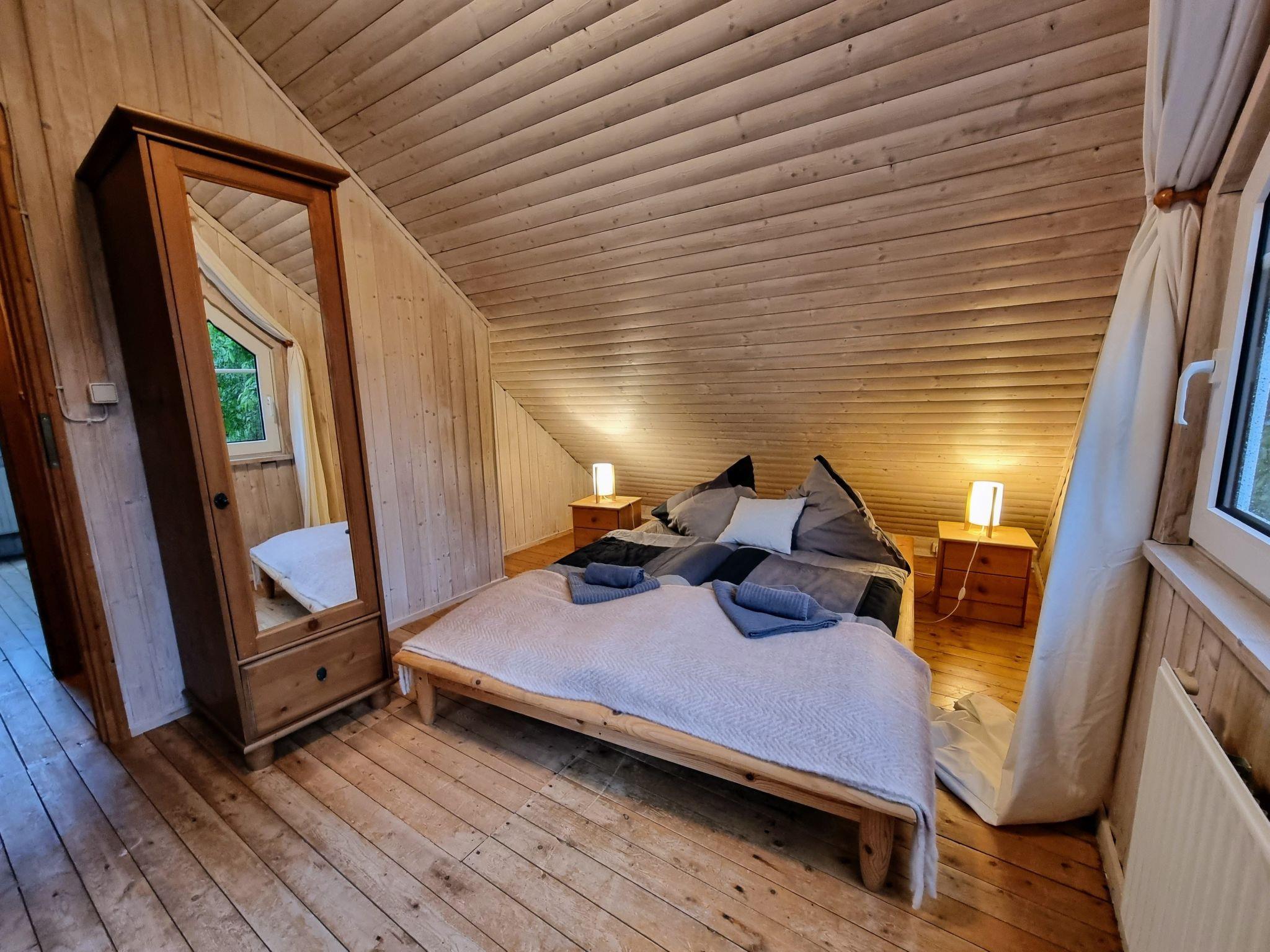 Inside, a cosy atmosphere awaits you, accentuated by the special piece - a restored, shellac hand-polished black Bechstein piano - in the living and dining room. In addition to this highlight, the house has two inviting bedrooms with double beds, which can be reached via a slightly steeper wooden staircase, as well as a practically furnished shower room. The small, open-plan kitchen is equipped with a 2-ring hob, a ceramic hob, a coffee machine and a kettle - everything you need to prepare simple meals.