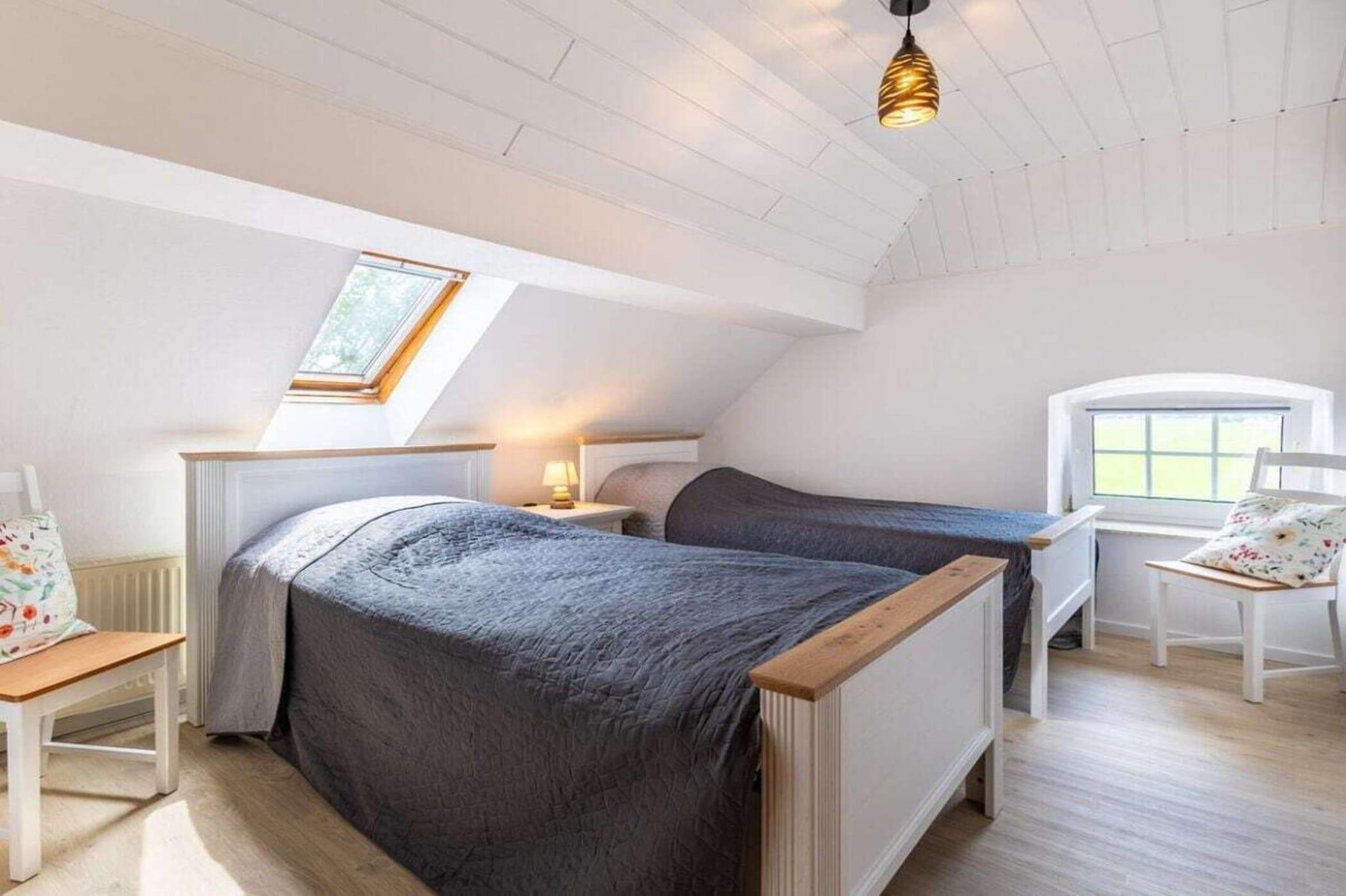 Stueetage: (Stue(, , Fjernsyn, pejs, insektnet), Køkken(, tekøkken, Fjernsyn, spisebord, radio, kogeplade, elkedel, brødrister, kaffemaskine, ovn, grill, opvaskemaskine , køleskab, fryser, insektnet), badeværelse(, toilet, bruser, håndvask, vaskemaskine)) På 1. etage: (soveværelse(, , dobbeltseng, insektnet), soveværelse(, enkeltseng, enkeltseng, insektnet), badeværelse(, toilet, badekar, håndvask)) Internetadgang, terrasse(, grill, havemøbler), parkering