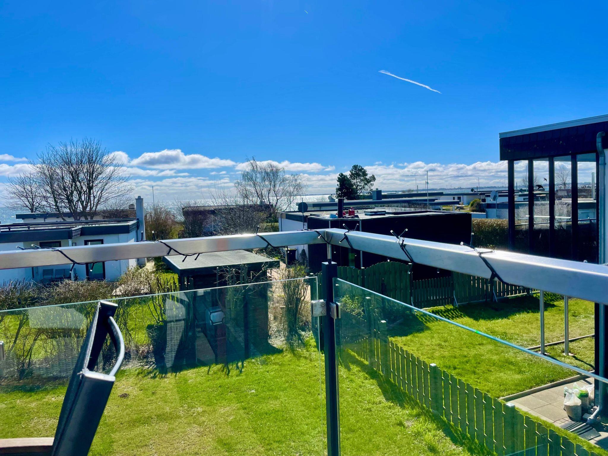 All living areas are located on the 1st floor of the house and offer an enchanting view of the picturesque Baltic Sea panorama. The house is accessed via a spacious external staircase from the garden. Storage and utility rooms are located on the ground floor. The carport has space for 2 cars and offers charging facilities for electric vehicles for a fee. The island of Fehmarn is about 10 minutes away.