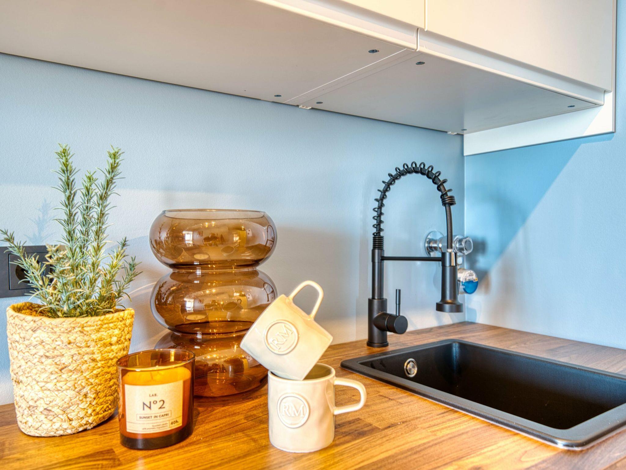 Der Wohnbereich ist mit Möbeln der Marke Riviera Maison ausgestattet bekannt für stilvolles Design und hohe Qualität. Durch den maritimen Einrichtungsstil, moderne Bodenbeläge und ausgewählte Deko entsteht ein harmonisches Wohlfühlambiente.