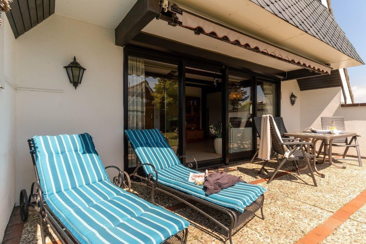 Auf der Terrasse laden 2 Sonnenliegen zum Relaxen ein.