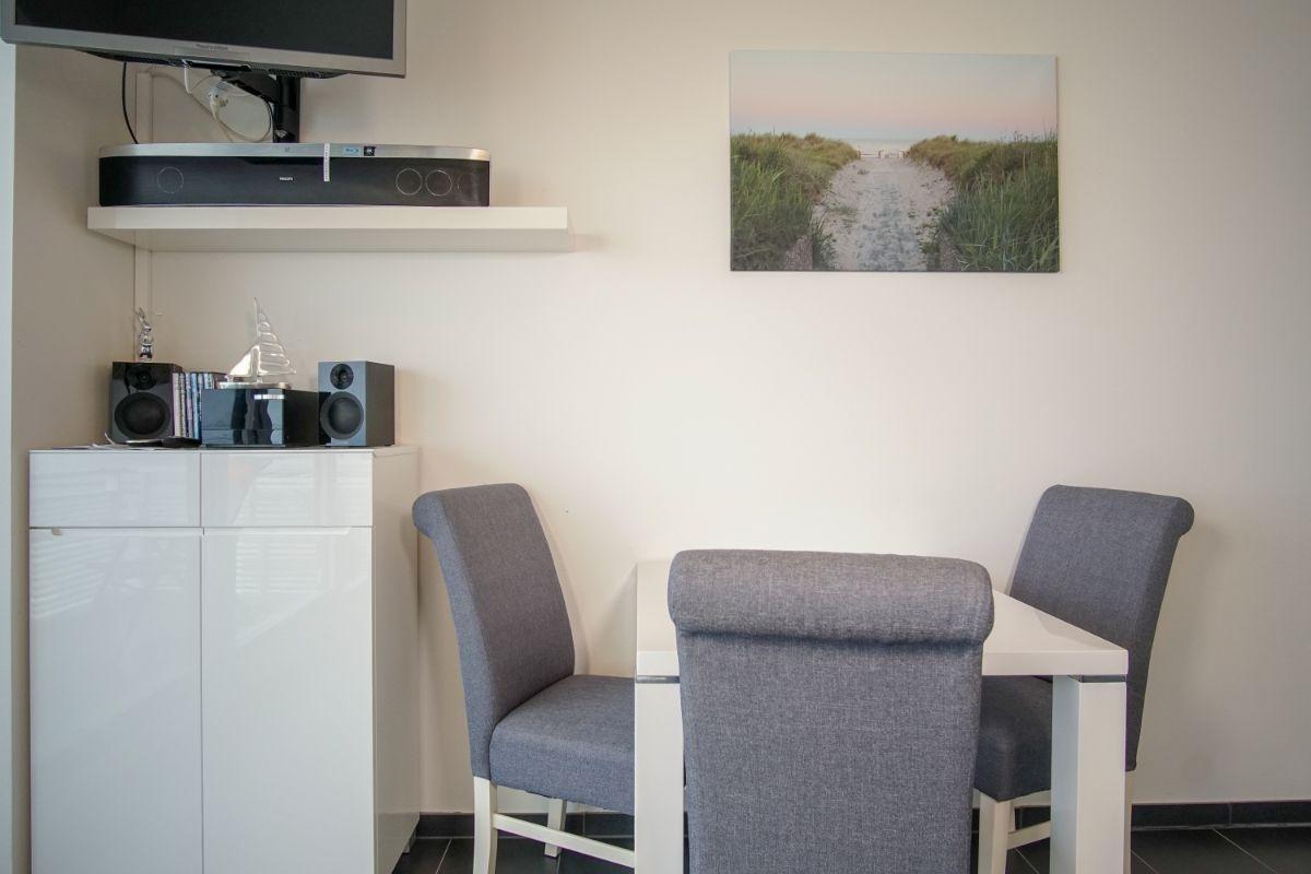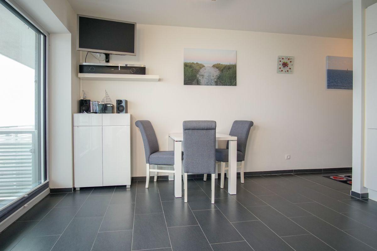Urlauben Sie auf großzügigen 45m² (2. Etage) mit Balkon und tollem Blick zum Meer. Das große Wohn-Esszimmer ist mit einer gemütlichen Sofaecke und Flatscreen-TV ausgestattet. Im Essbereich finden bequem vier Personen Platz zum Schlemmen.