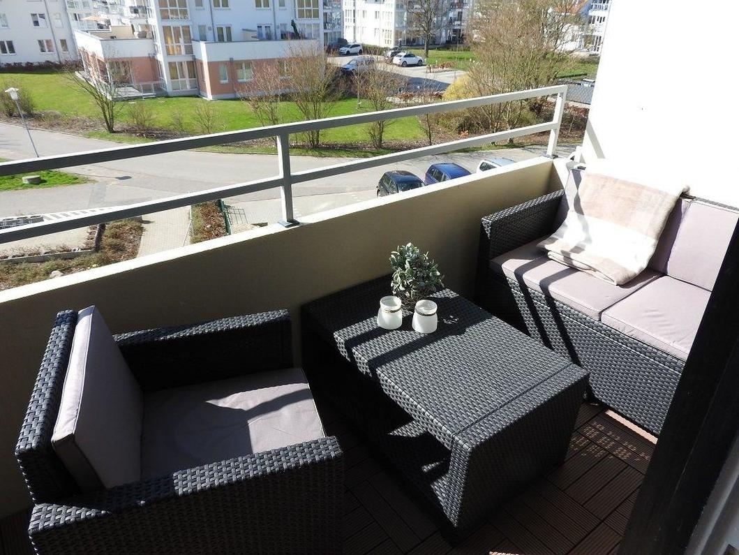 Vom Wohnzimmer aus gelangen Sie auf den Süd-Westbalkon.