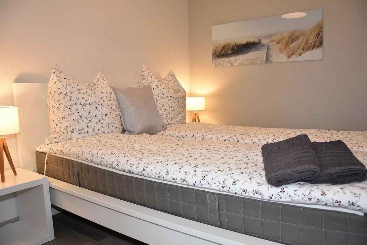 Die modernisierte 47m²-Wohnung in der 2. Etage im Haus 1 der Anlage "Vier Jahreszeiten" am Südstrand verfügt über einen großzügigen Wohn-Schlafbereich mit einem komfortablen Doppelbett im hinteren Bereich, einer gemütlichen Sofaecke mit Flatscreen-TV und der Essecke für vier Personen.