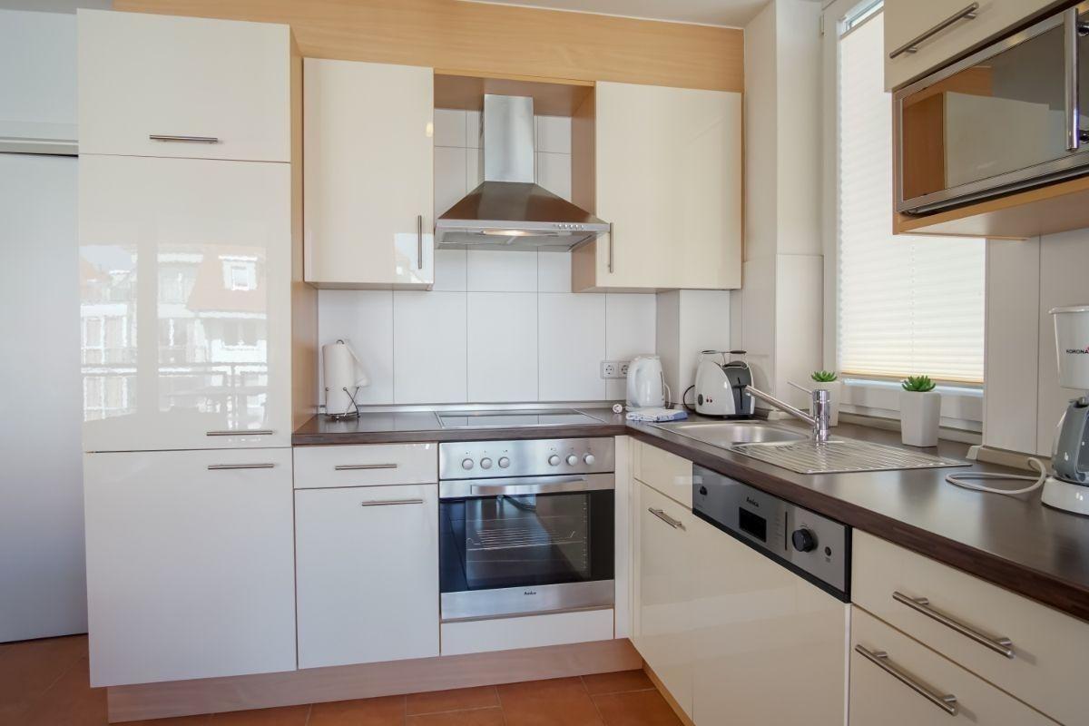 Die 57m²-Wohnung befindet sich in der 2. Etage in der Anlage "Strandpark". Der lichtdurchflutete Wohnbereich ist mit einer gemütlichen Sofaecke, TV, Spielen, einem Kaminofen u.v.m. ausgestattet. Der offene Küchenbereich ist, für den Urlaubsbedarf, voll ausgestattet. Eine Kaffeemaschine gehört ebenso dazu, wie der Wasserkocher und ein Toaster. Geschirr und Besteck sind ausreichend vorhanden. Außerdem stehen Ihnen noch ein Backofen, Geschirrspüler und eine Mikrowelle zur Verfügung. Im Elternschafzimmer finden Sie ein komfortables Doppelbett (2*90*200cm) und das Kinderzimmer verfügt über ein Etagenbett (auch für Teenager geeignet).